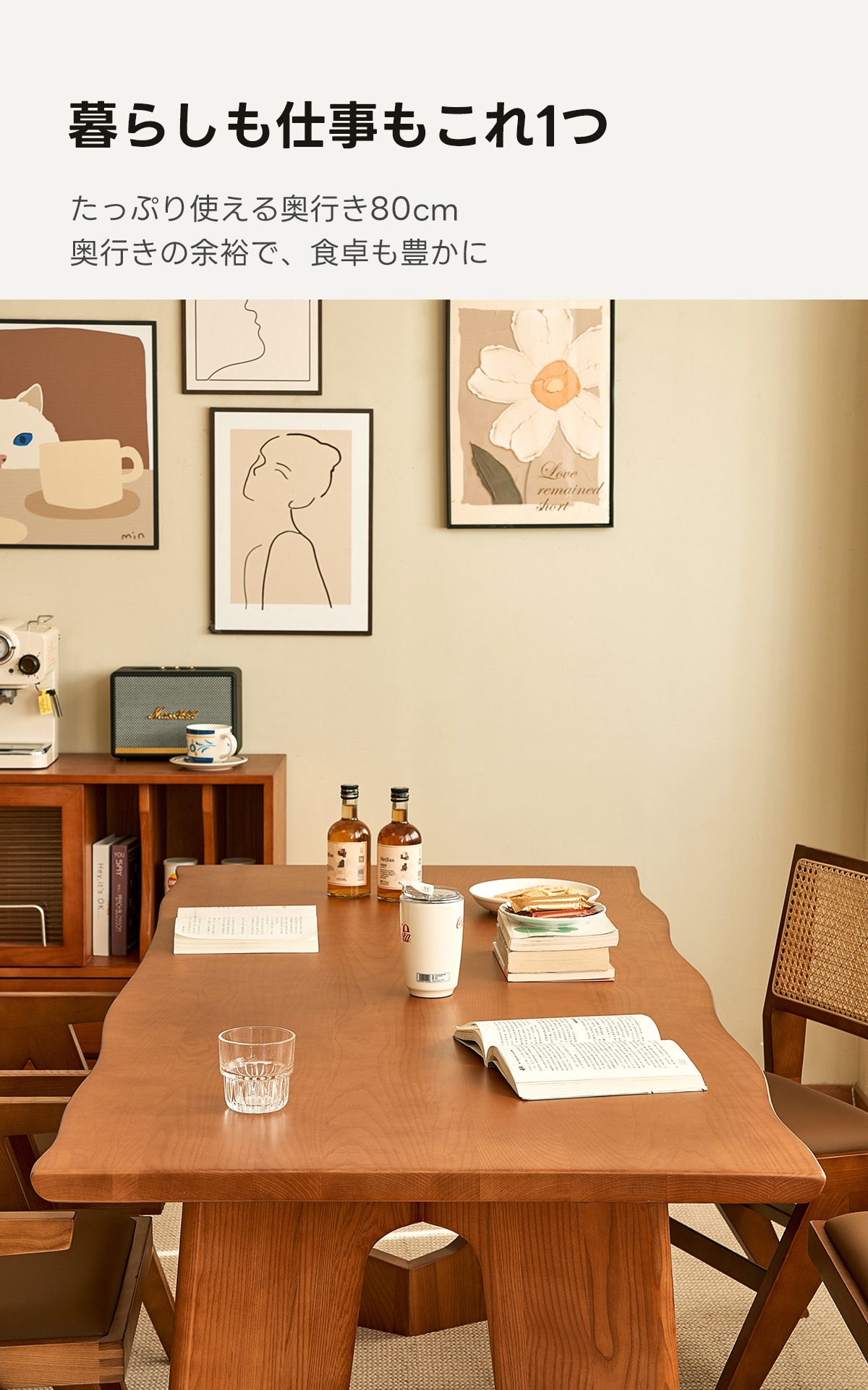 - 【広々とした天板で多用途に対応】幅160cmまたは180cm、奥行き80cmの広々とした天板は、食事だけでなく、仕事や趣味の時間にも活用できます。足元が広く、椅子をすっぽりと収めることができ、スペースを無駄にしません。