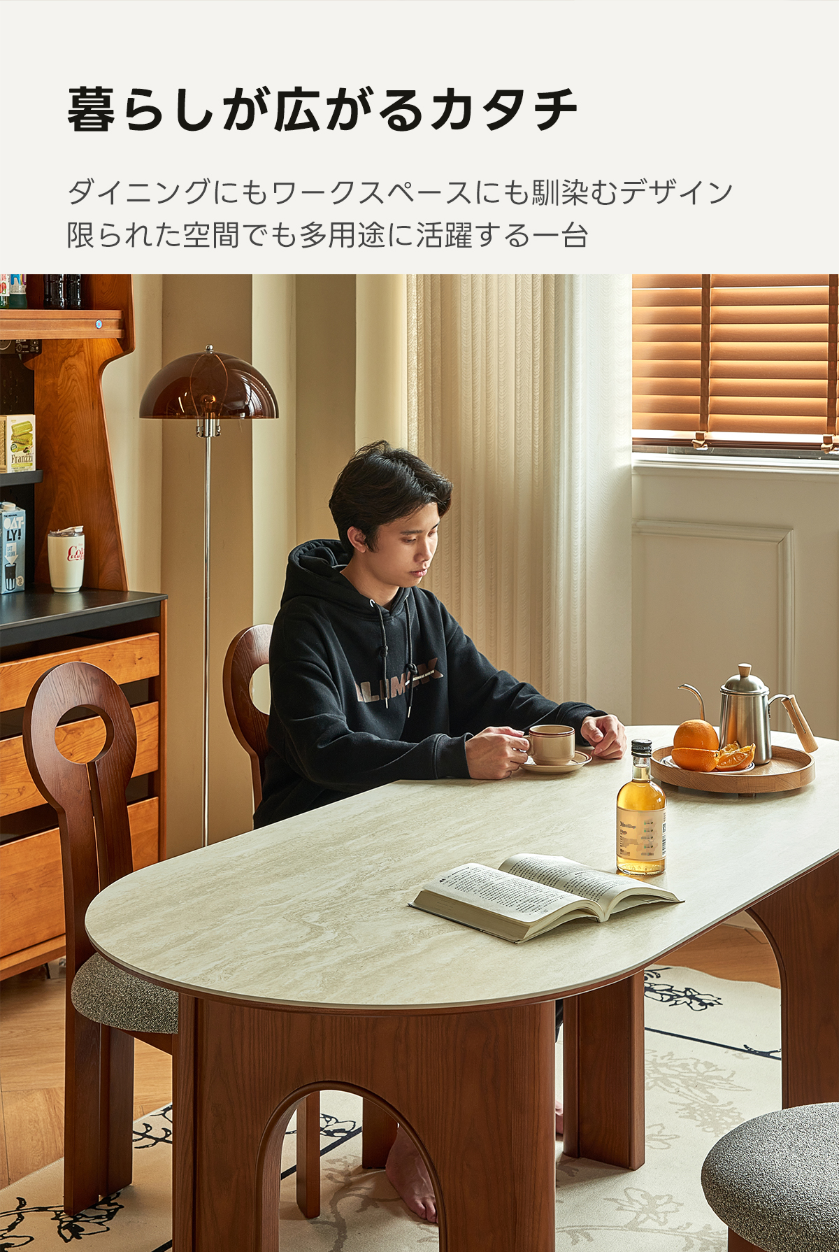 - 【多機能性と高級感を兼ね備えたダイニングテーブル】アーチレッグダイニングテーブルは、北欧風デザインと高級感を兼ね備えた一品です。セラミック製の天板は厚さ6mmで、耐久性と美しさを両立。大理石のような質感が空間に上質な雰囲気を演出します。