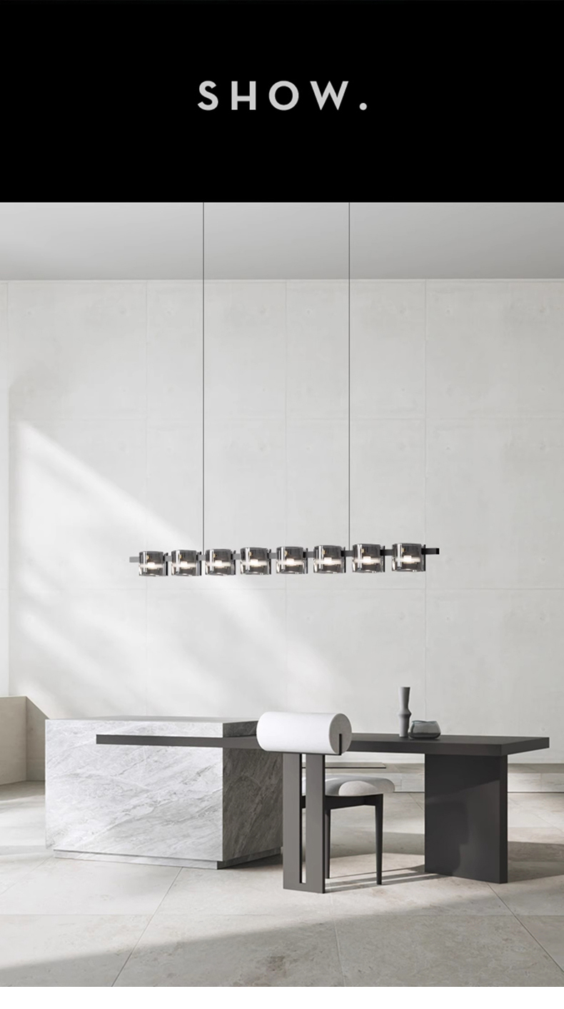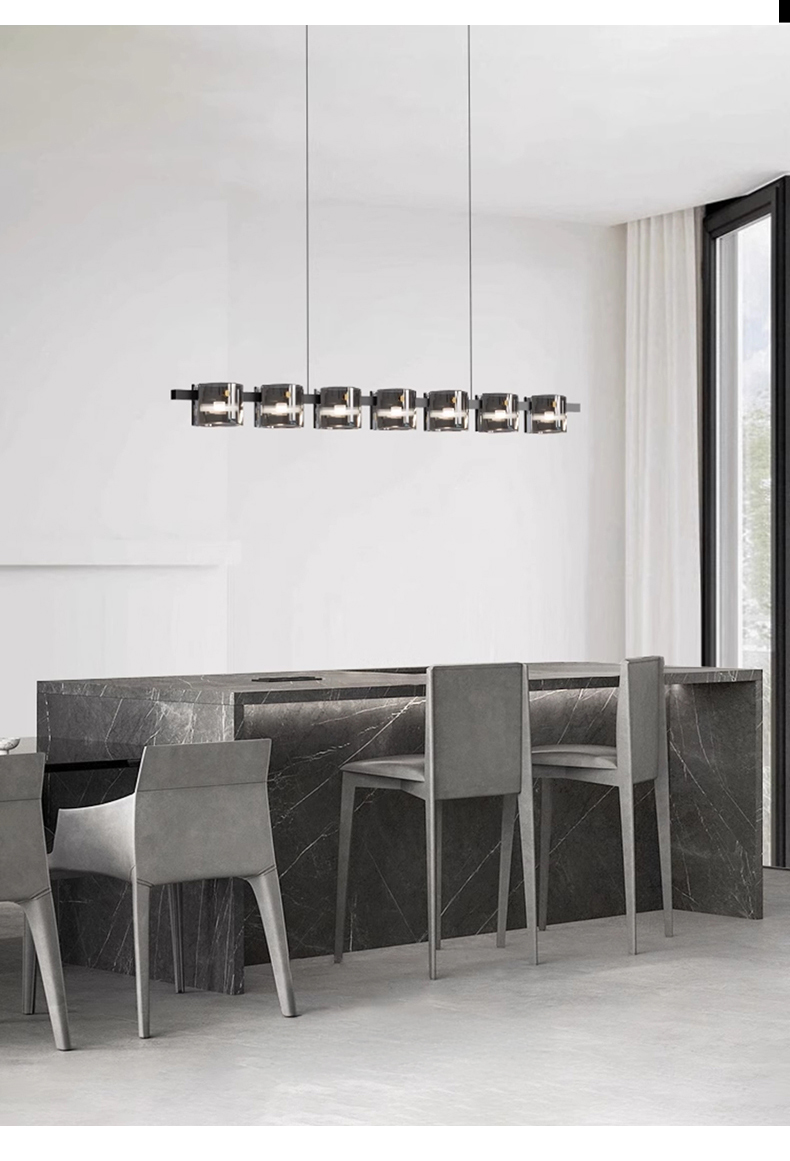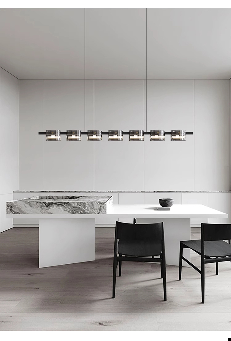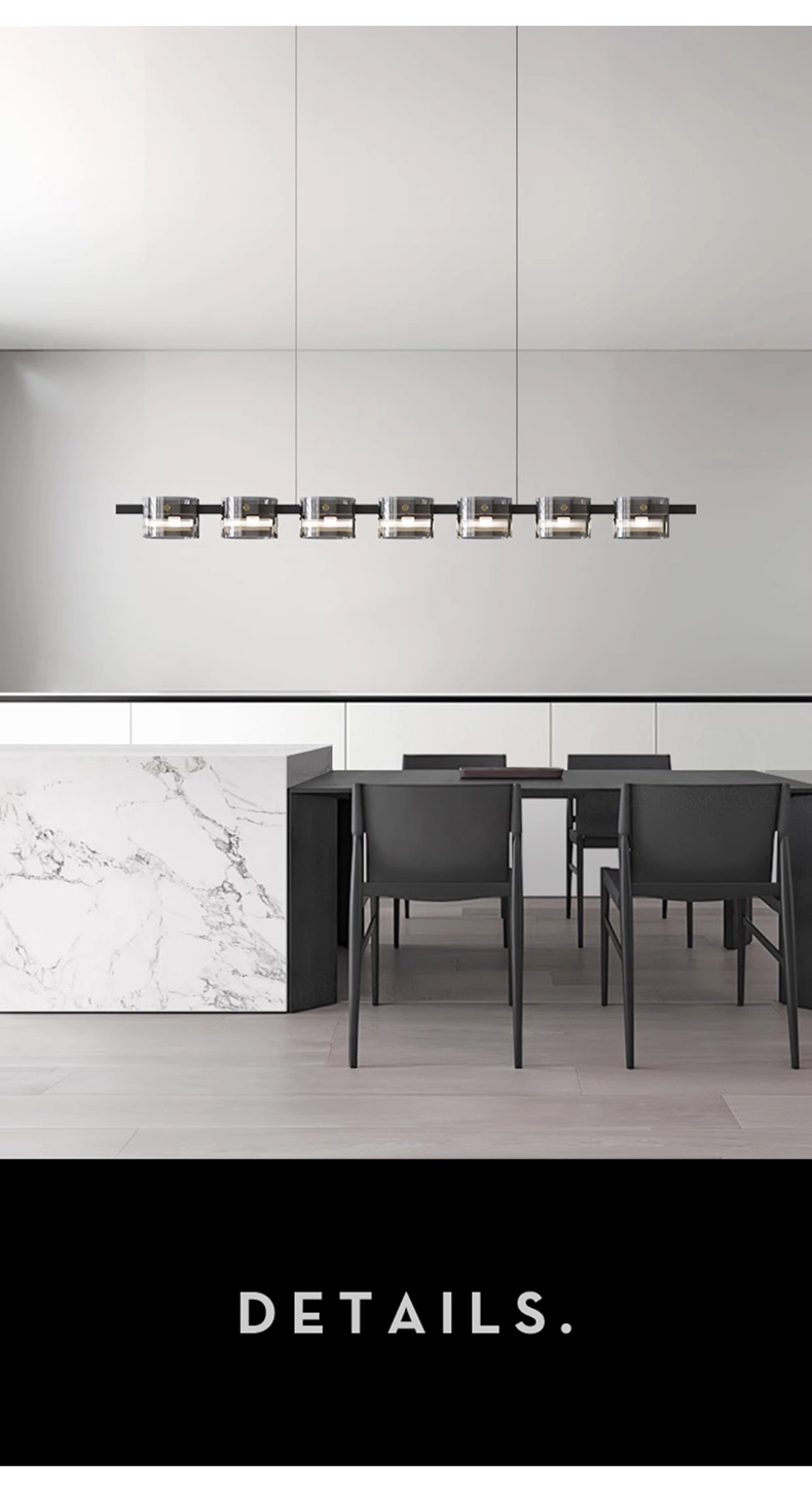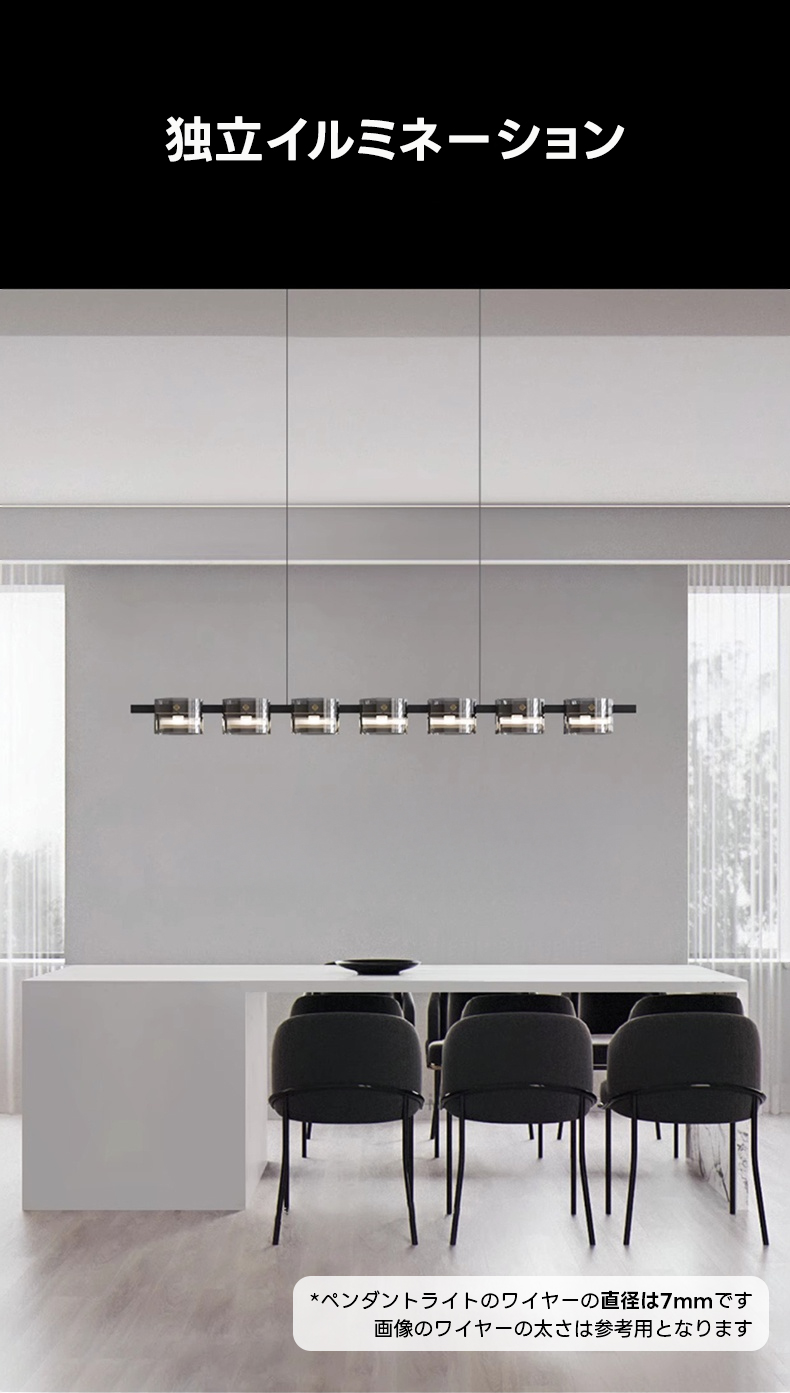 - 【モダンデザインの核心機能】アーバンストリップペンダントライトは、モダンで洗練されたデザインが特徴です。ブラックフレームと透明なガラスシェードが高級感を演出し、ダイニングルームにぴったりの照明器具です。