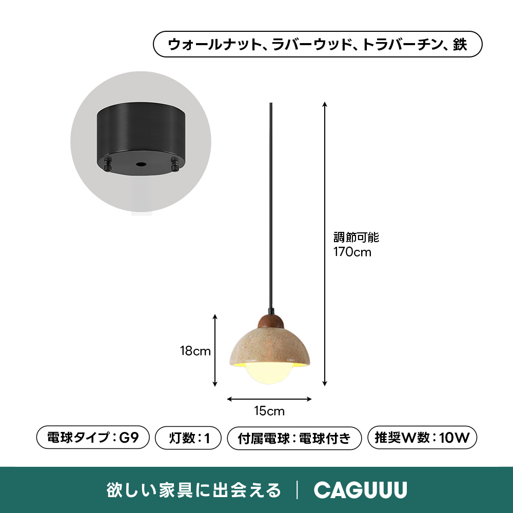 - 【高品質なデザインと素材】ウォールナットとラバーウッドのソケットカバーが、木目の質感と手触りで高級感を演出します。シェードの直径は15cm、高さは18cmとコンパクトで、コードは最大170cmまで調整可能です。