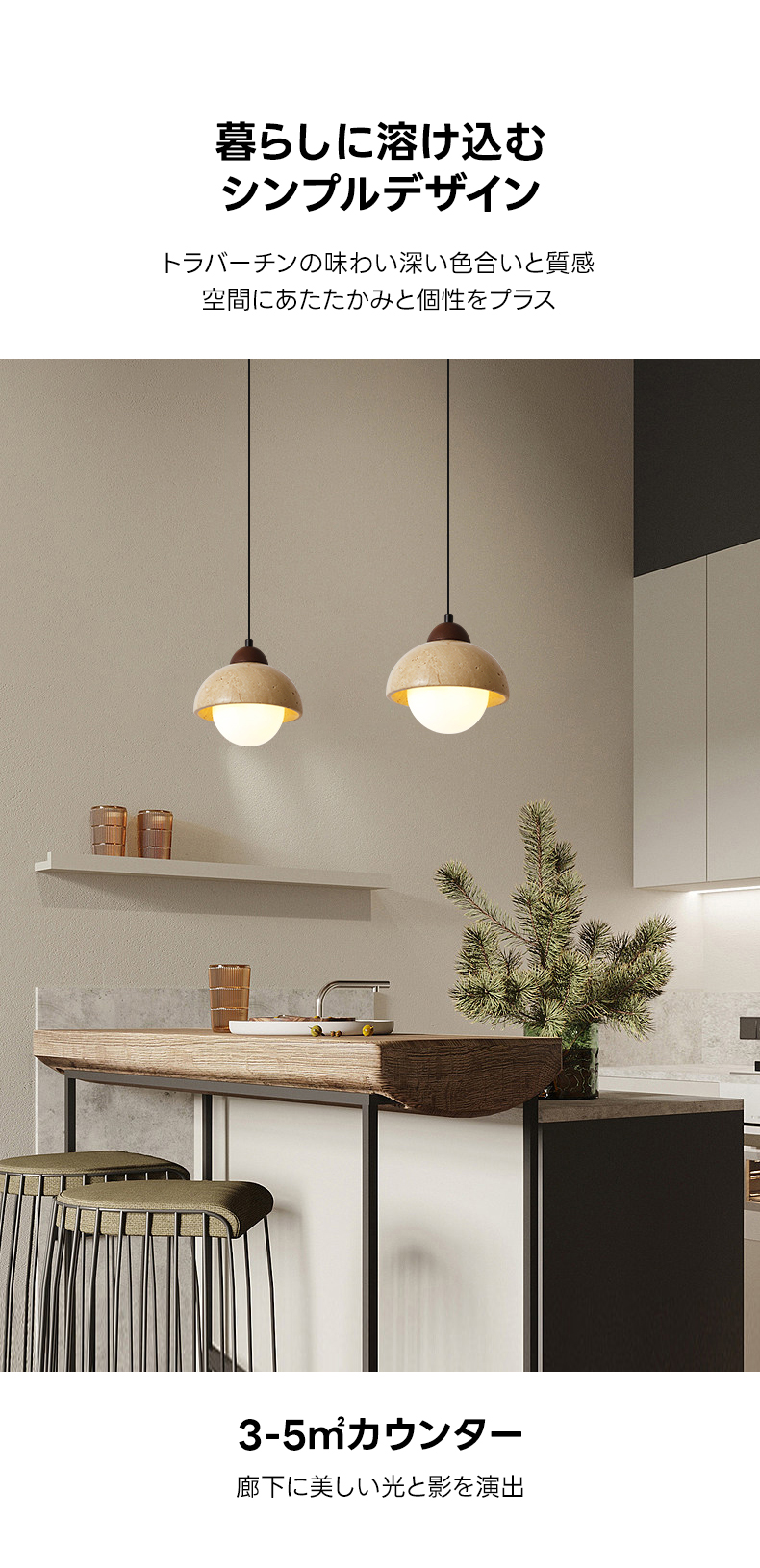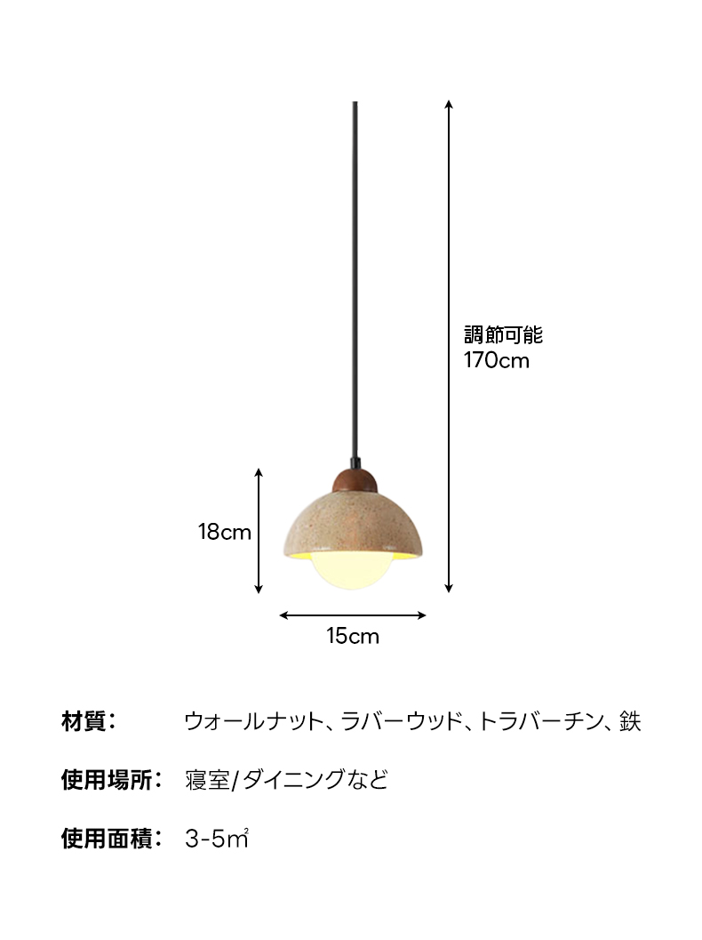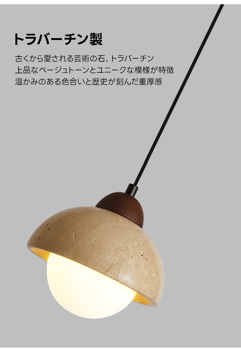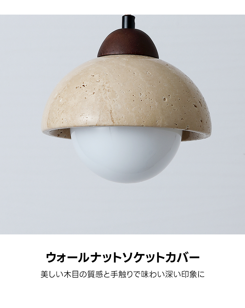 - 【自然素材の美しさと温かみ】トラバーチン製のシェードが特徴で、自然の美しさと温かみを感じさせるペンダントライトです。ウォールナットのソケットカバーが高級感を演出し、どんなインテリアにも自然に溶け込みます。