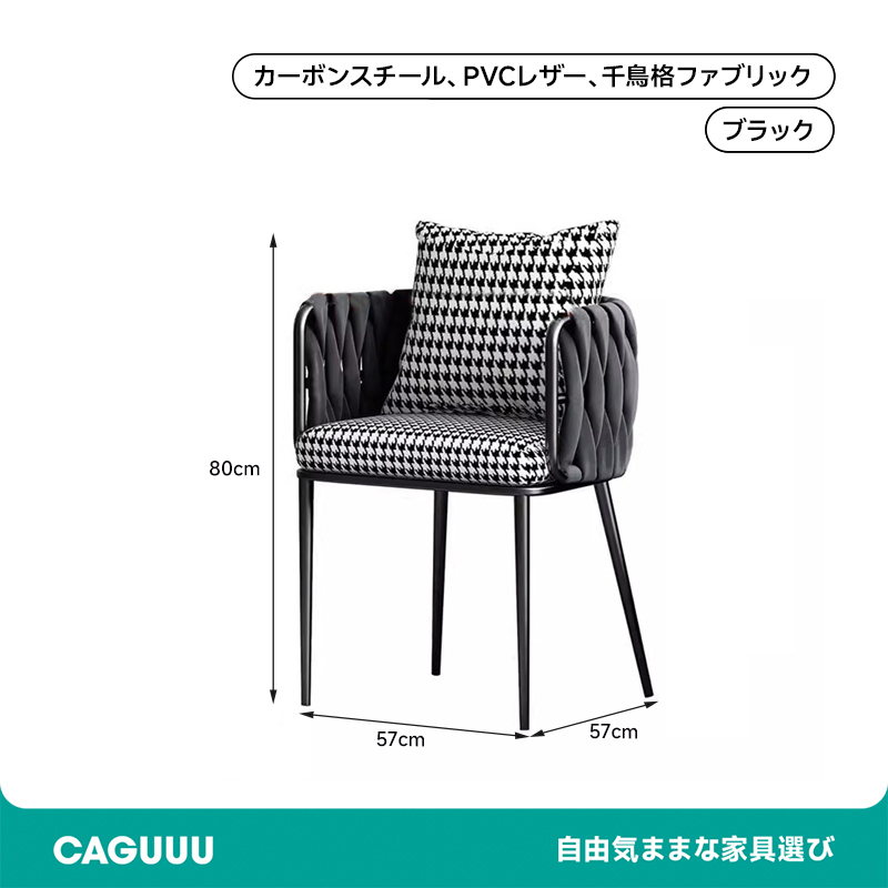 - 【洗練されたモダンデザイン】このダイニングチェアは、千鳥格子柄のクッションが特徴で、どんなスタイルのダイニングにもマッチします。ブラックを基調としたラグジュアリーな外観が、空間を一層引き立てます。