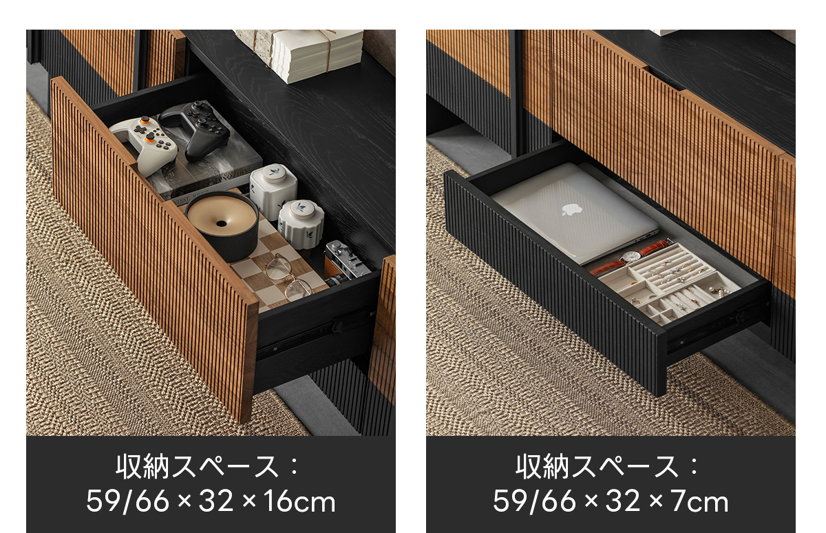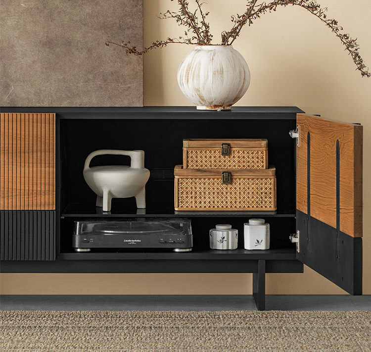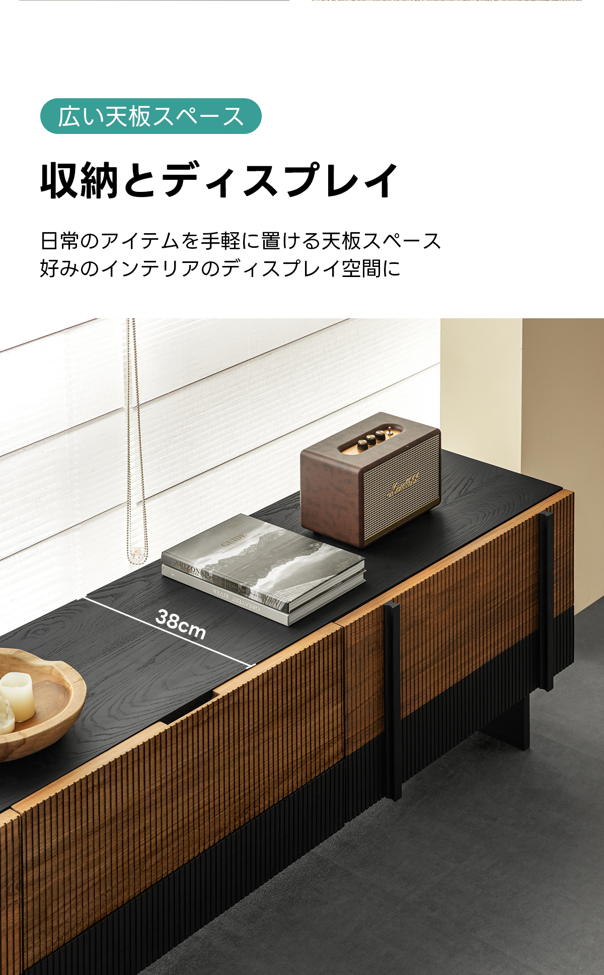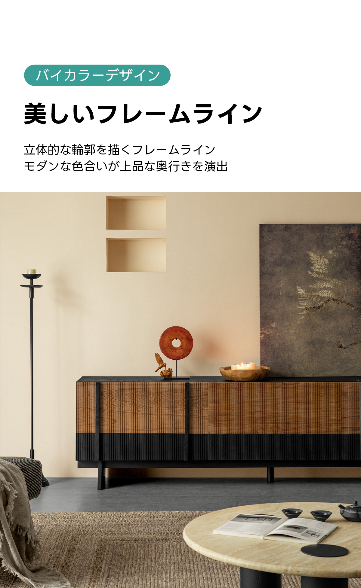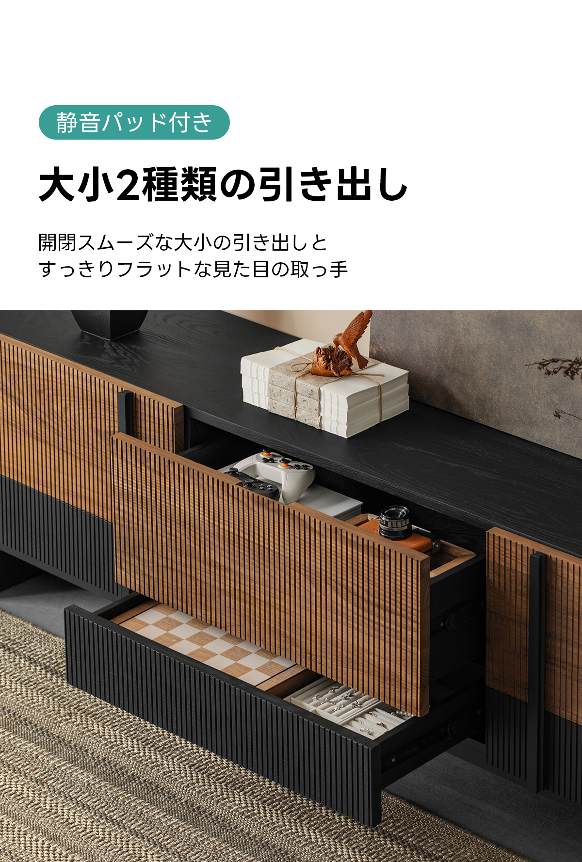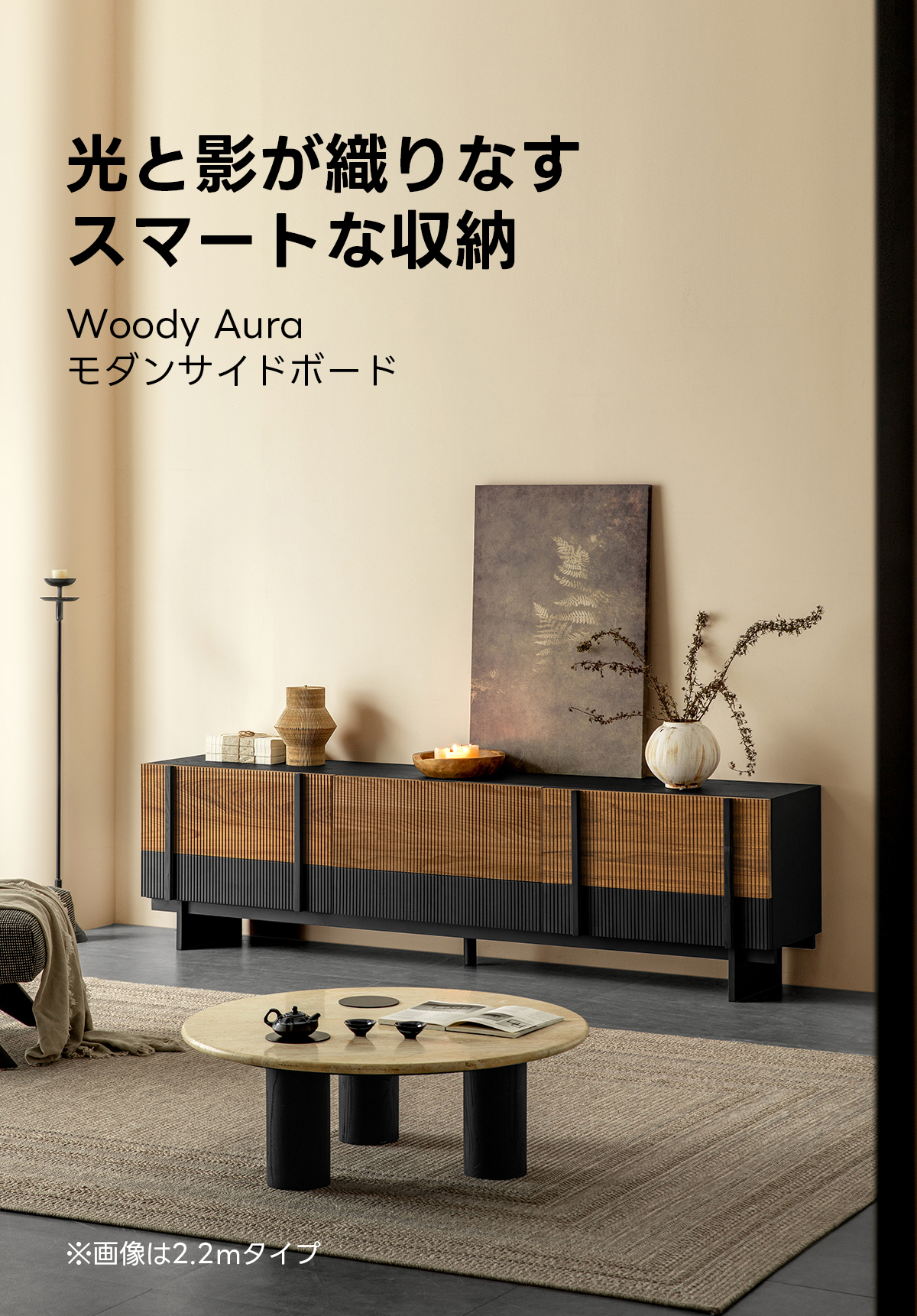 - 【豊富な収納スペースと静音設計】Woody Aura モダンサイドボードは、自由に調節できる棚板と大小2種類の引き出しが特徴です。静音パッド付きでスムーズな開閉が可能。日用品をすっきり整理整頓でき、リビングや寝室での使用に最適です。