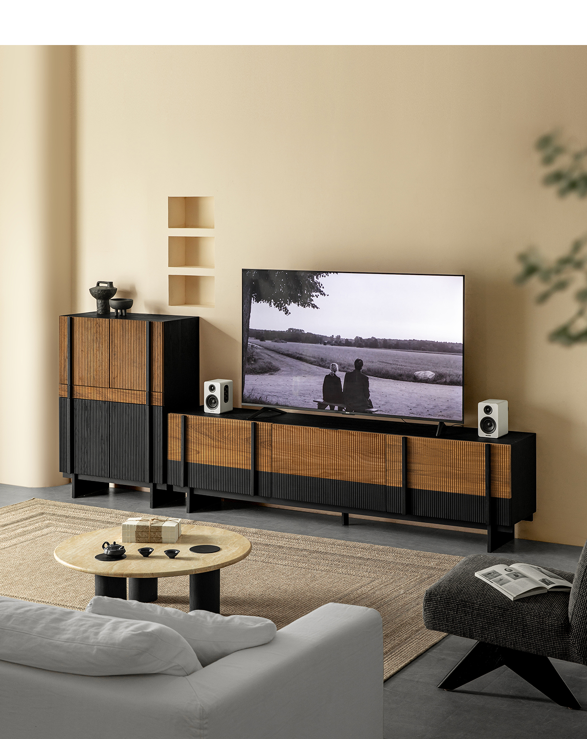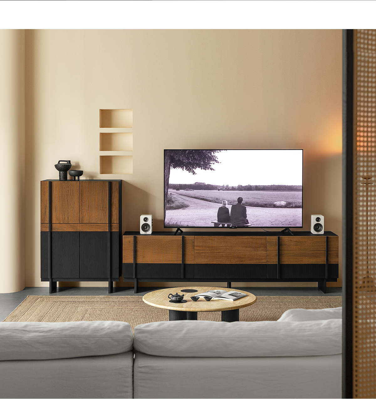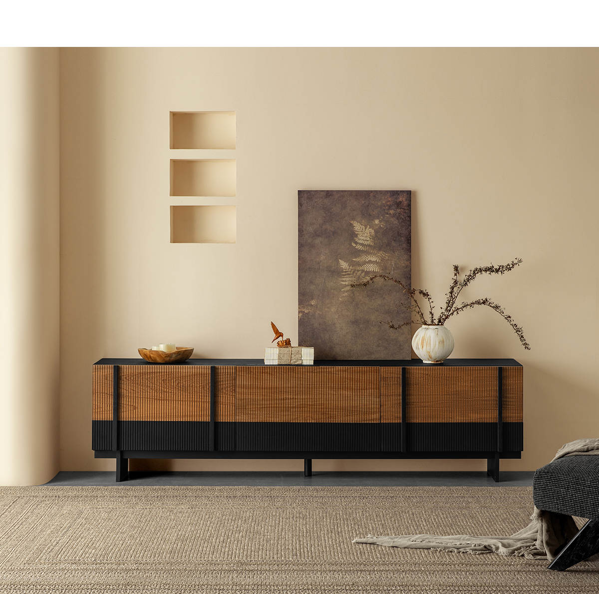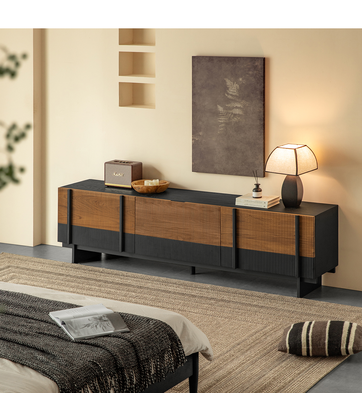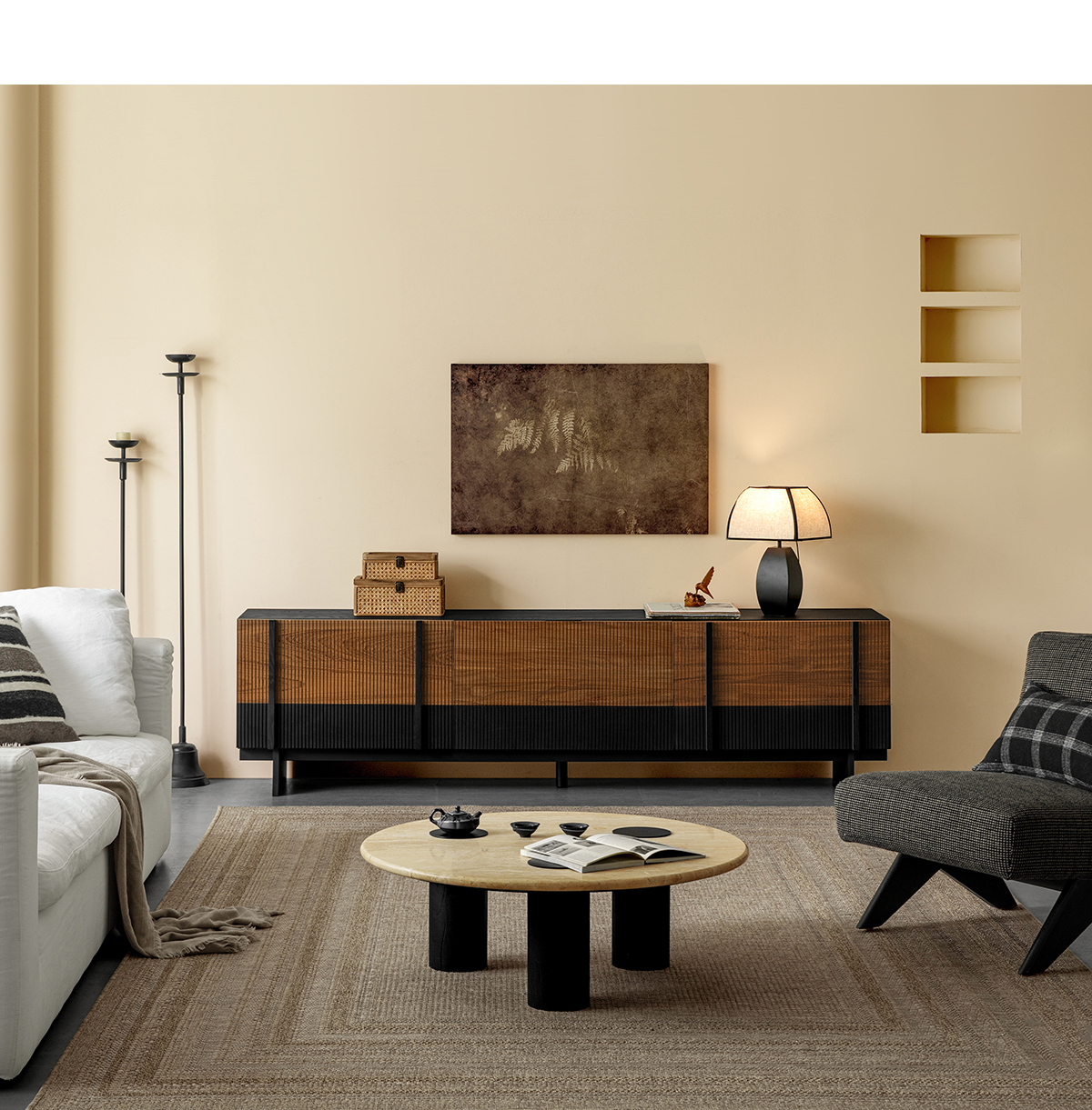 - 【豊富な収納スペースと静音設計】Woody Aura モダンサイドボードは、自由に調節できる棚板と大小2種類の引き出しが特徴です。静音パッド付きでスムーズな開閉が可能。日用品をすっきり整理整頓でき、リビングや寝室での使用に最適です。