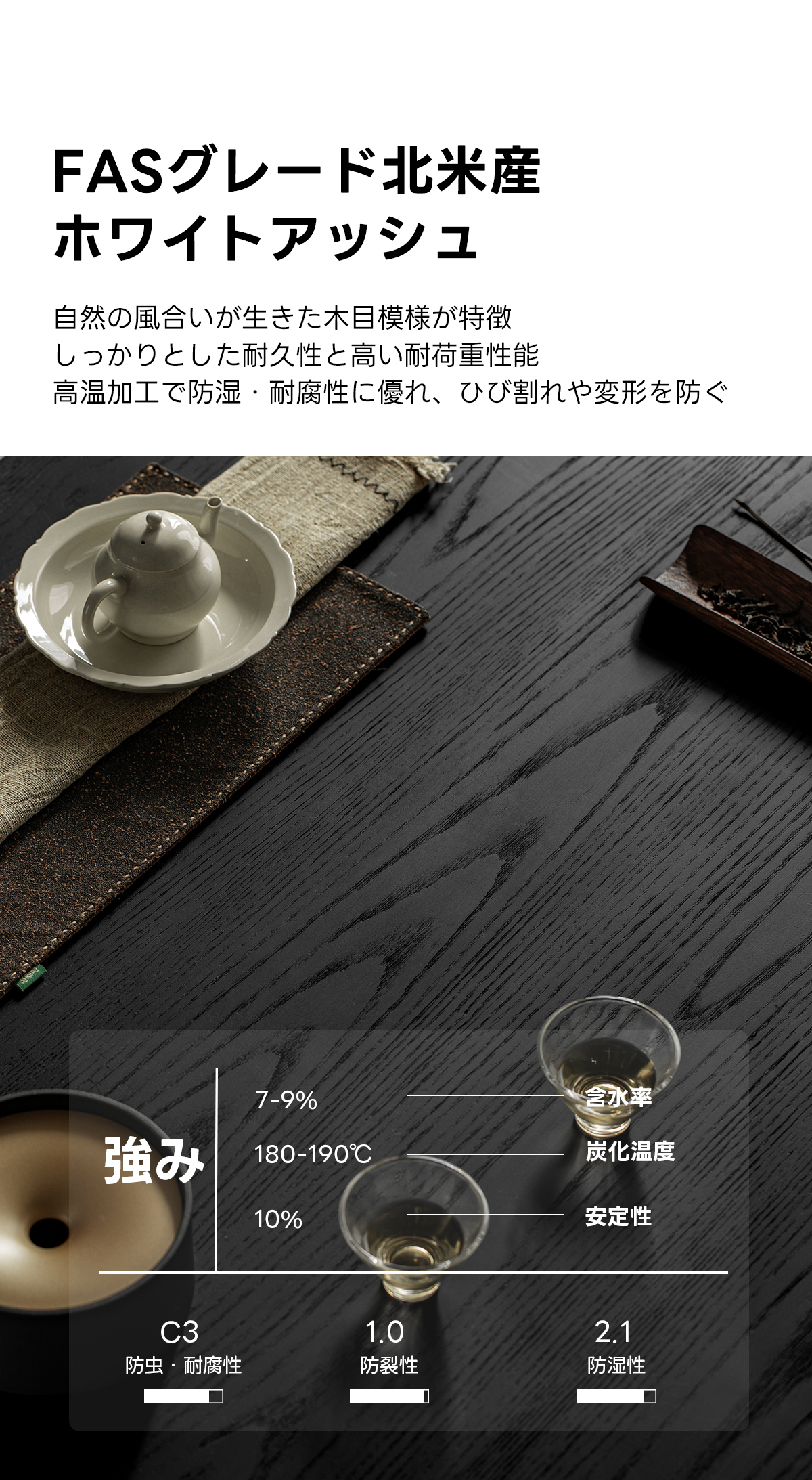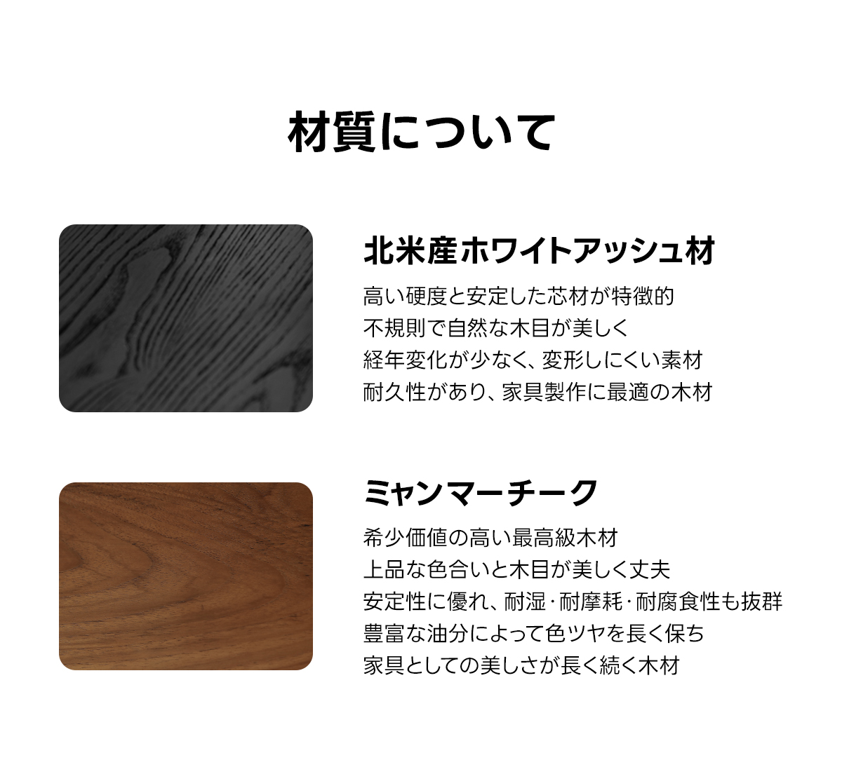 - 【高品質素材と美しい木目】FASグレードのホワイトアッシュ材とミャンマー産チーク材を使用し、耐久性と美しい木目が魅力です。自然な木目と高級感が際立ち、長く愛用できる品質を誇ります。
