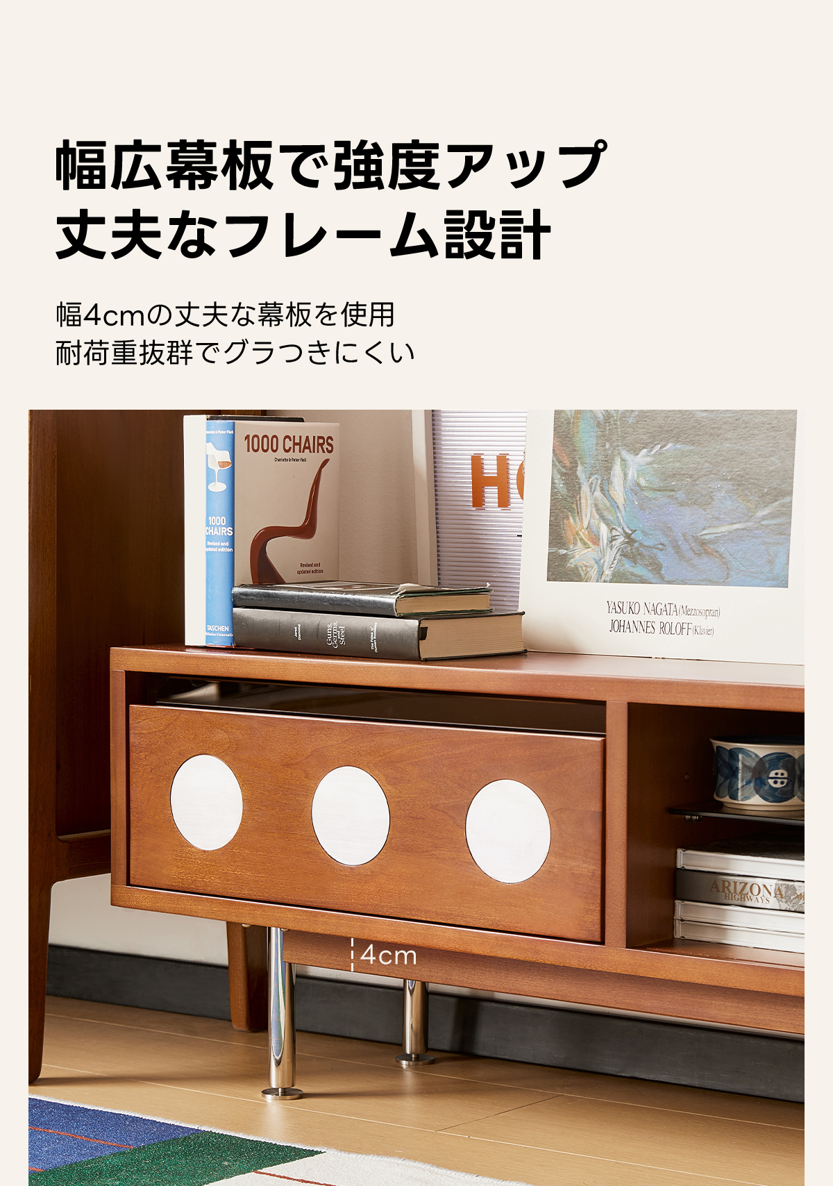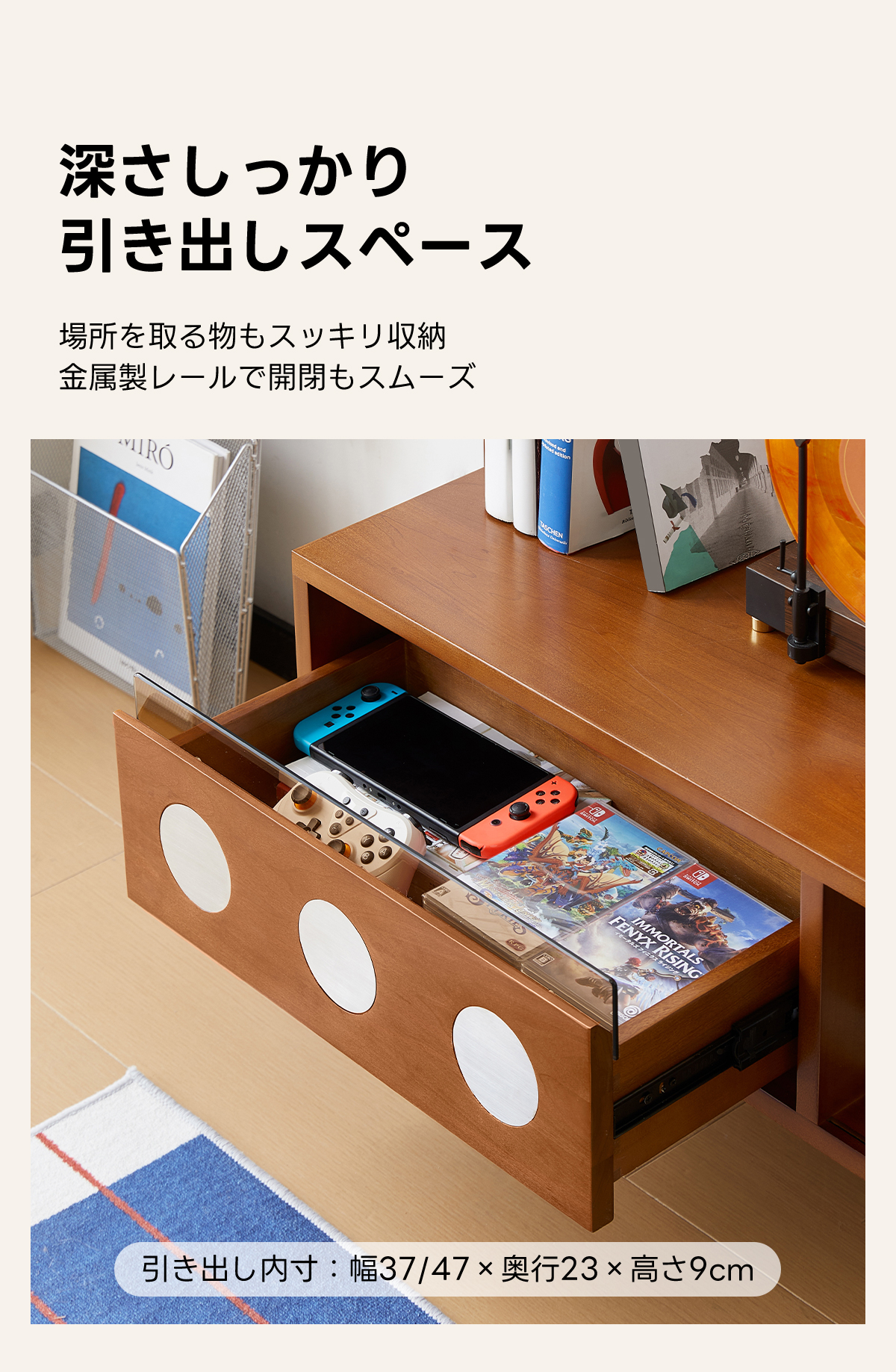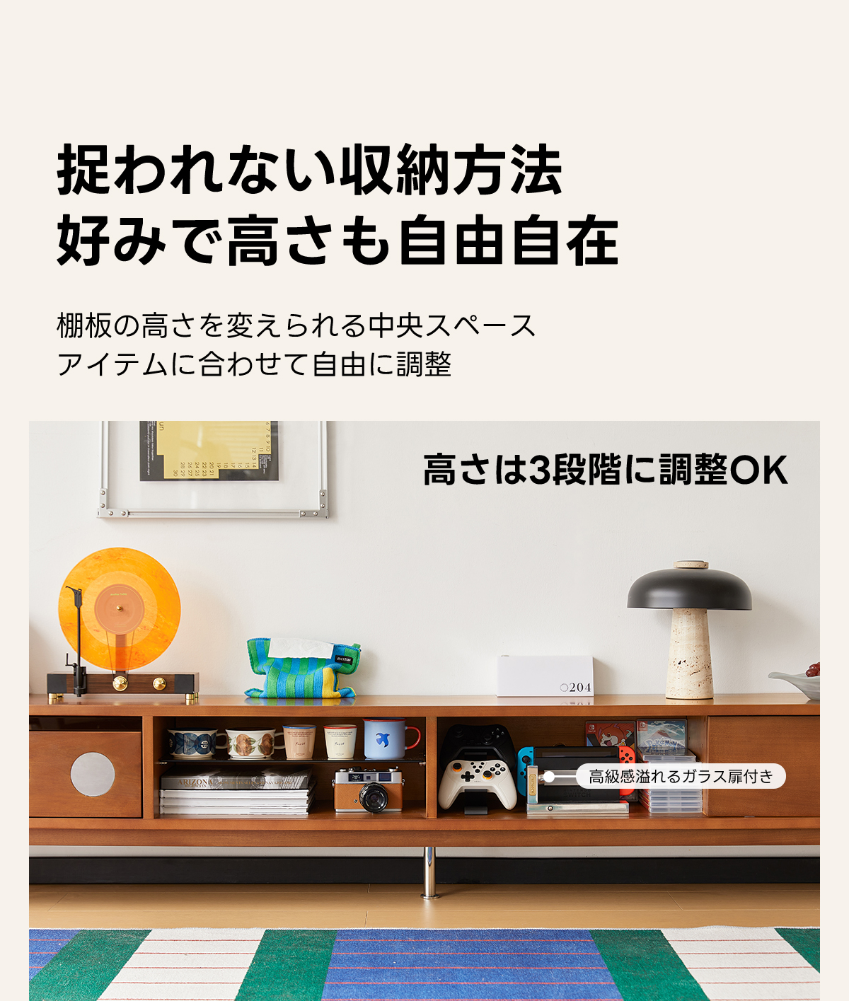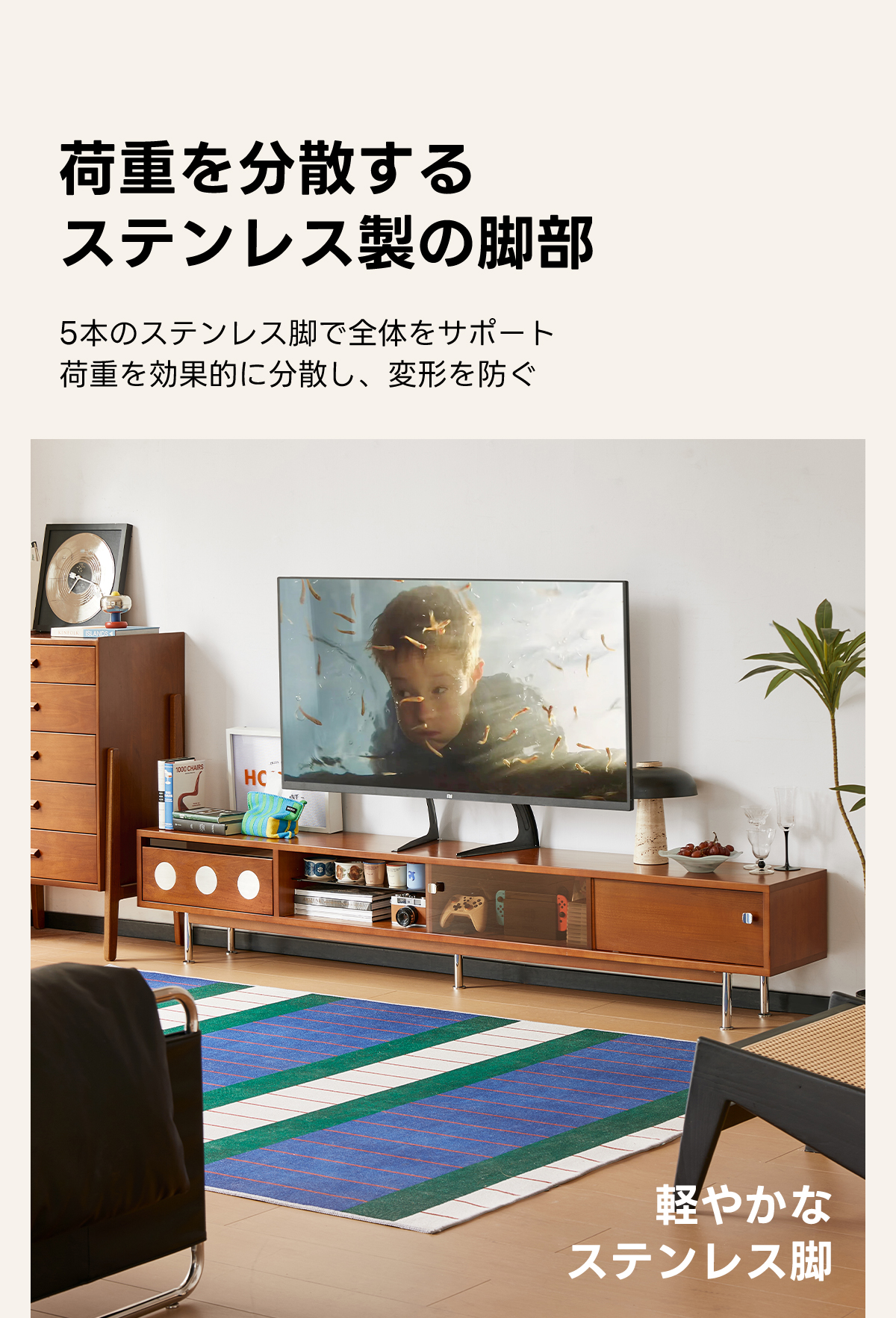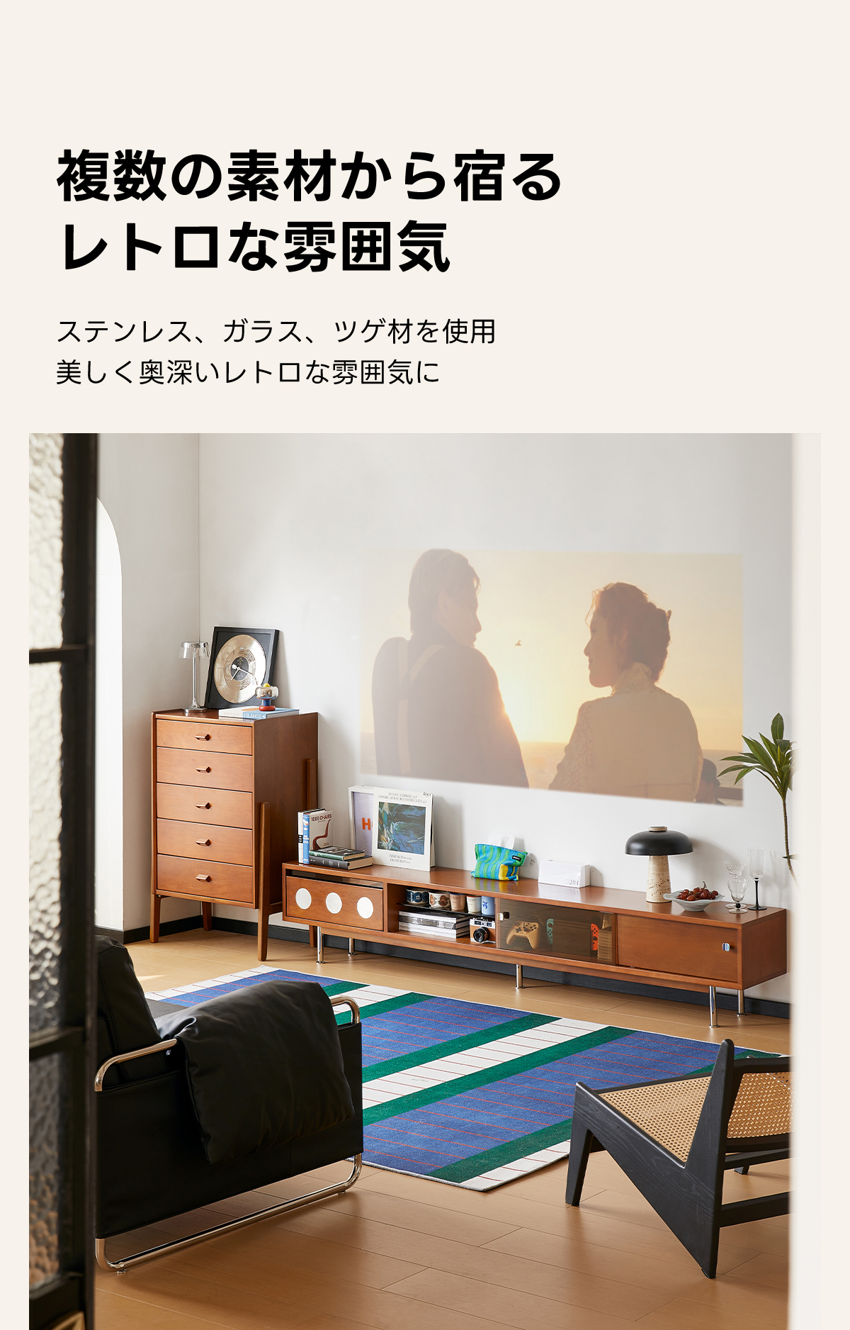 - 【多機能収納とレトロデザイン】このテレビボードは、引き出しやオープンスペース、ガラス扉付きの収納スペースを備え、リモコンやゲーム機、雑誌などをすっきり整理できます。ステンレスとガラスを組み合わせたレトロなデザインがリビングに独特の雰囲気をもたらします。