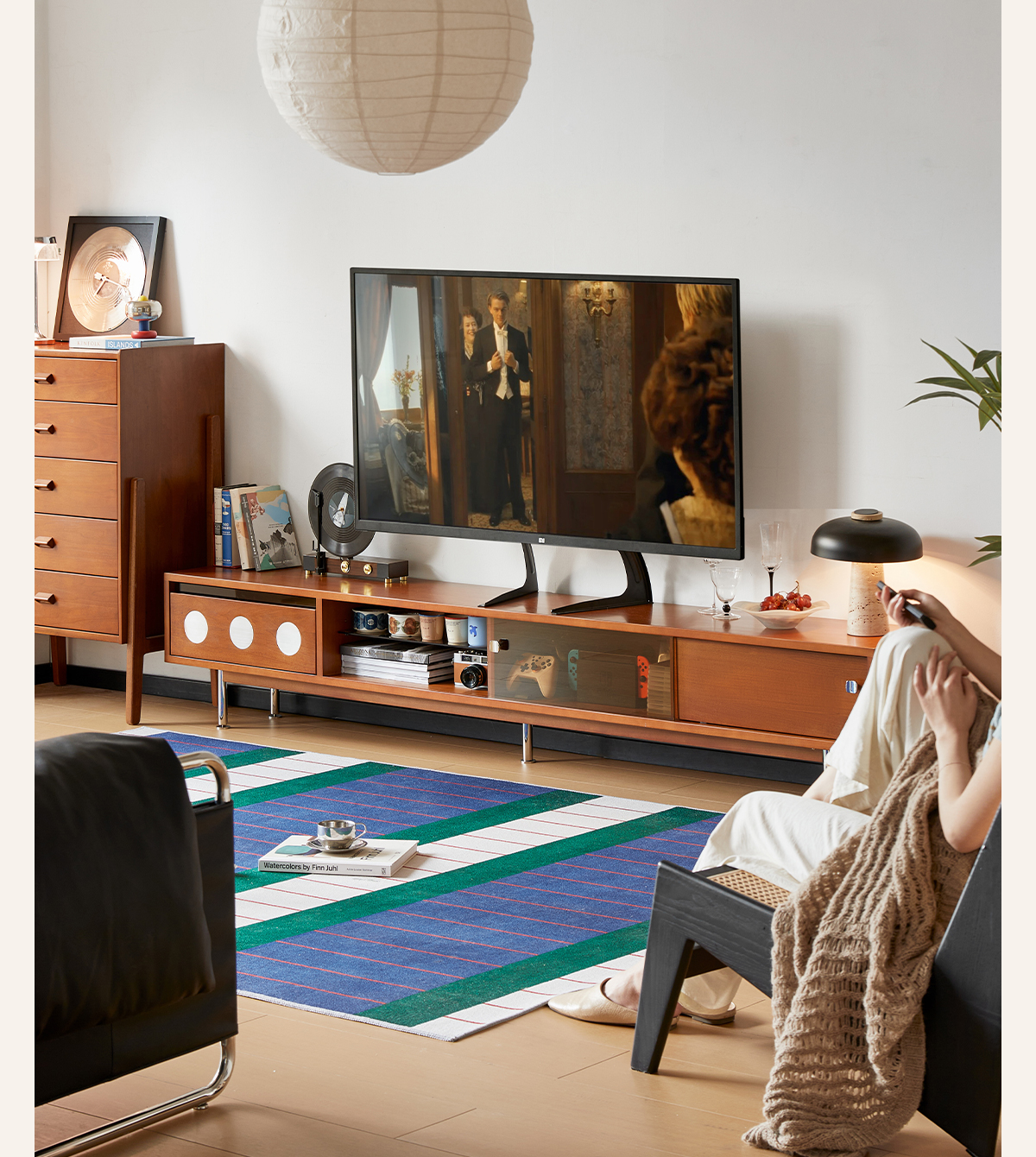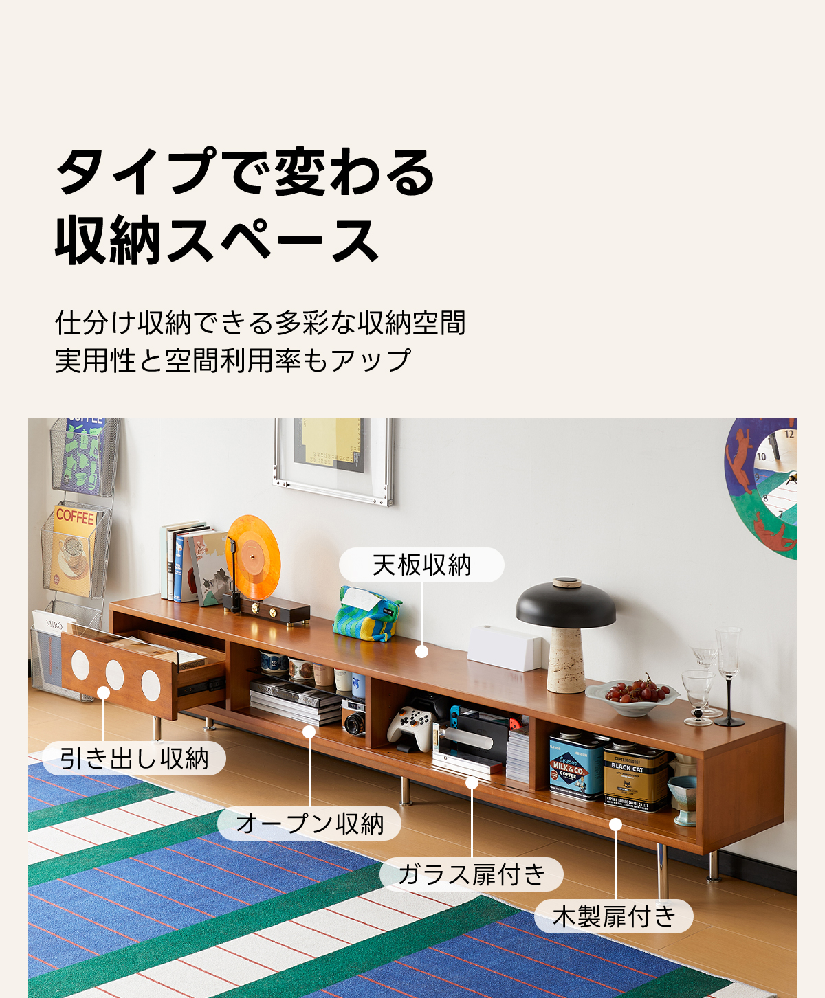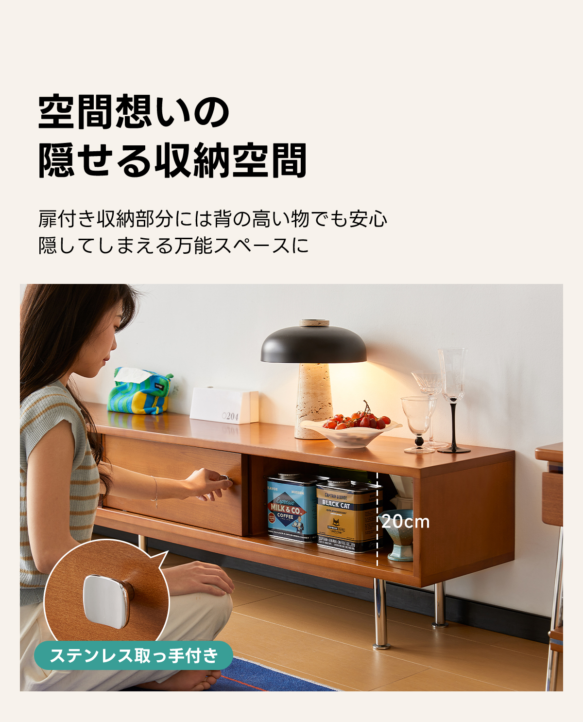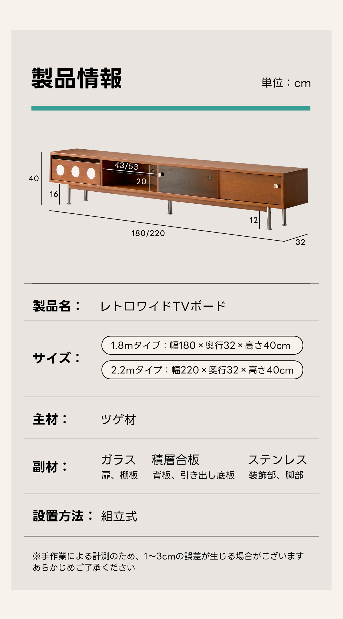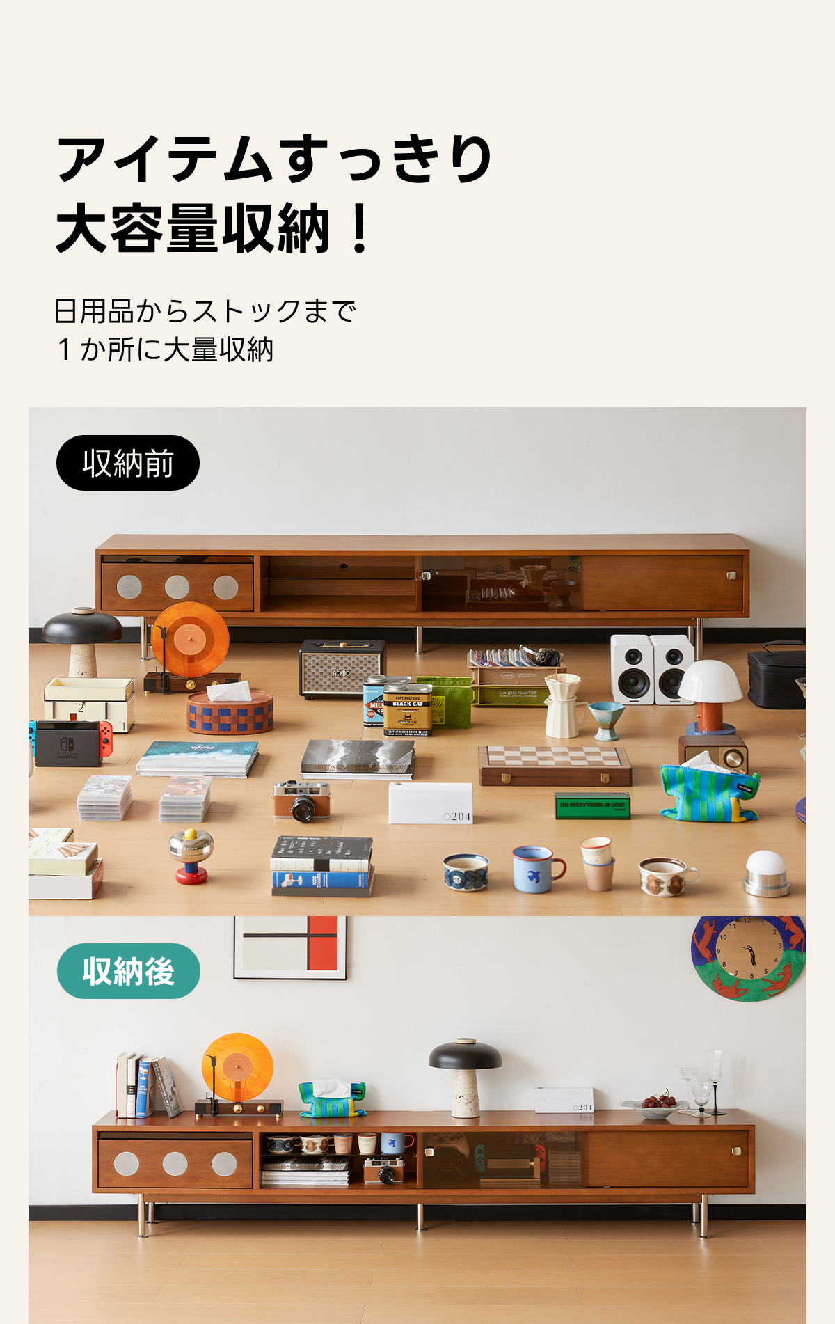 - 【多機能収納とレトロデザイン】このテレビボードは、引き出しやオープンスペース、ガラス扉付きの収納スペースを備え、リモコンやゲーム機、雑誌などをすっきり整理できます。ステンレスとガラスを組み合わせたレトロなデザインがリビングに独特の雰囲気をもたらします。