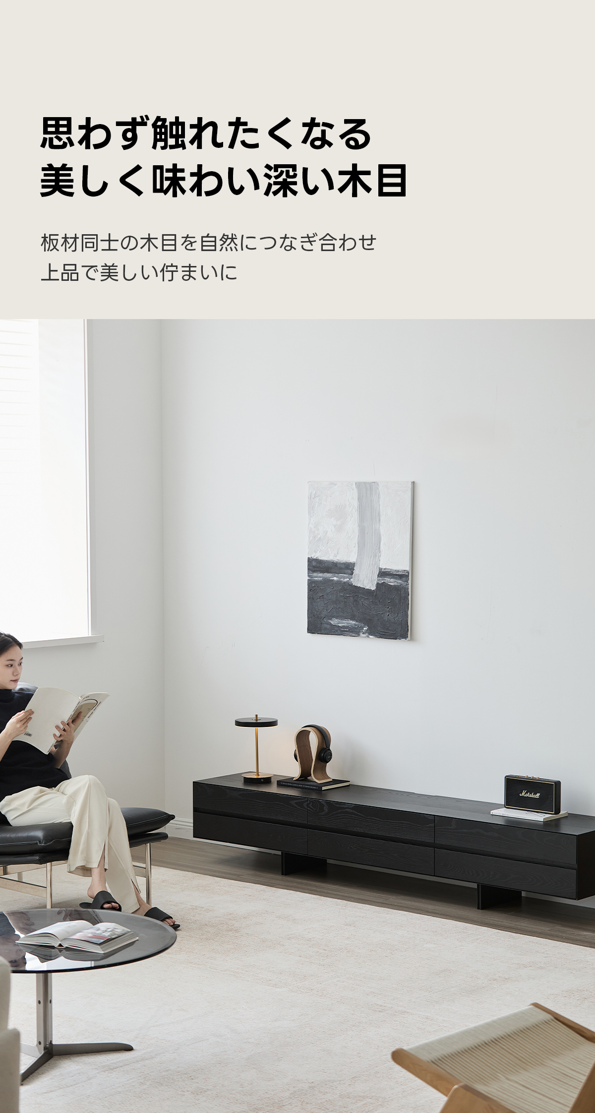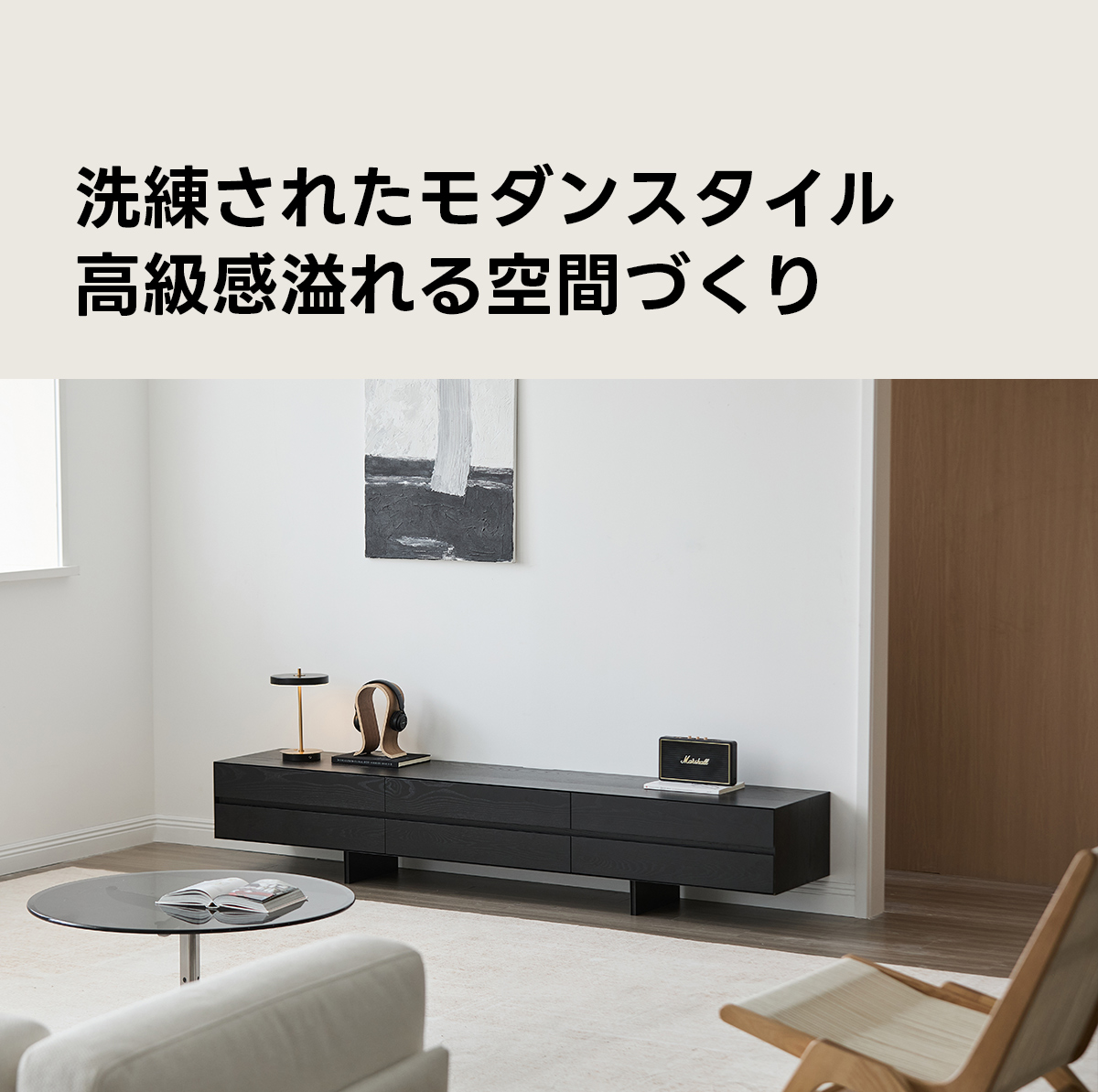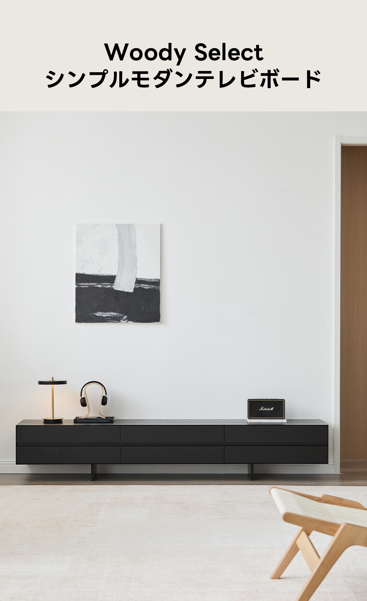 - 【洗練されたモダンデザイン】Woody Select シンプルモダンテレビボードは、どんなインテリアにもマッチする無駄のないデザインが特徴です。ブラックの色合いと天然木の美しさが、リビングルームに上質な雰囲気を演出します。