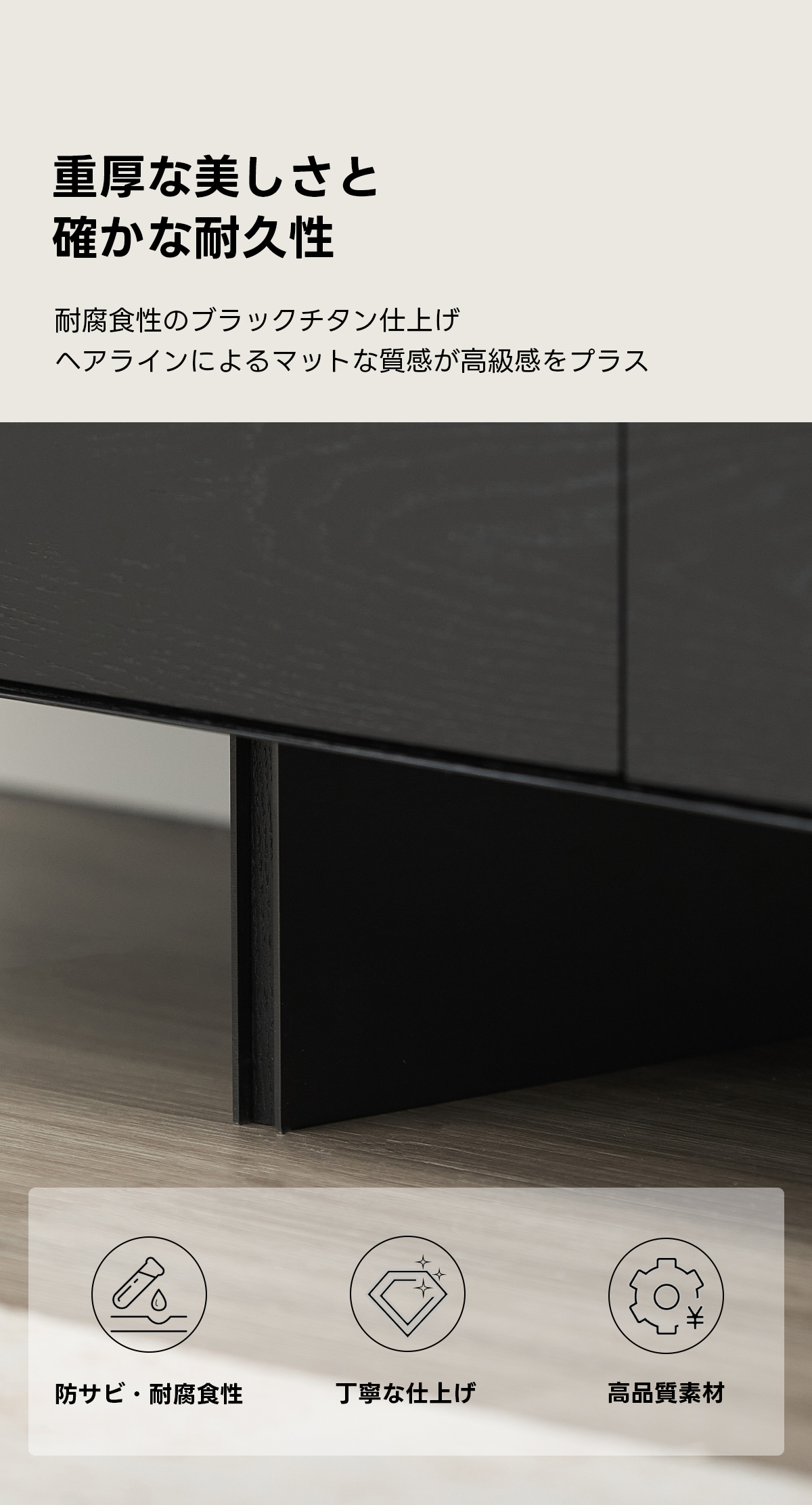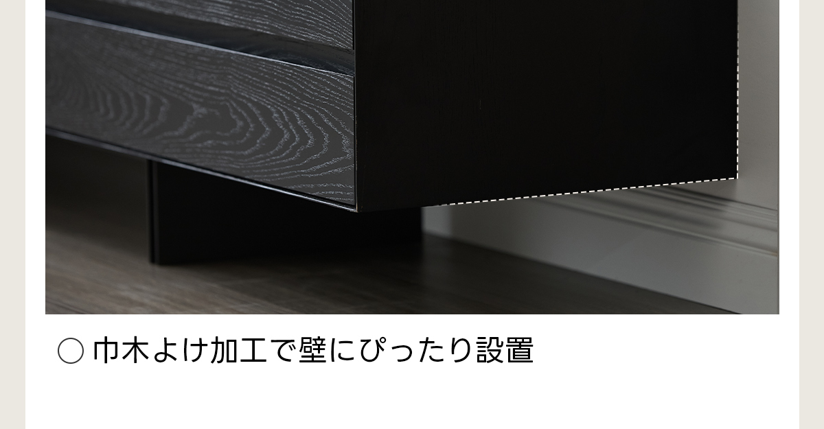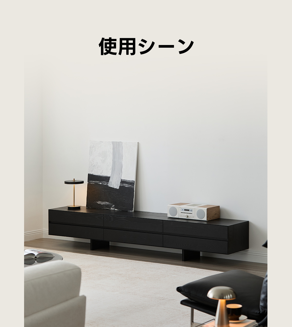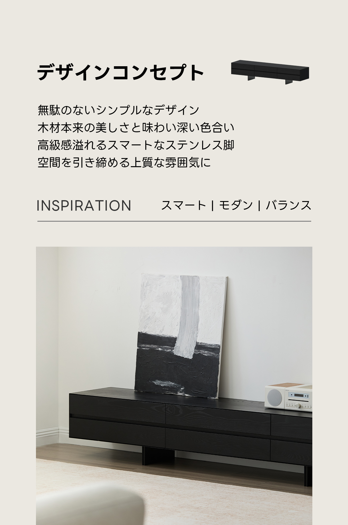 - 【洗練されたモダンデザイン】Woody Select シンプルモダンテレビボードは、どんなインテリアにもマッチする無駄のないデザインが特徴です。ブラックの色合いと天然木の美しさが、リビングルームに上質な雰囲気を演出します。