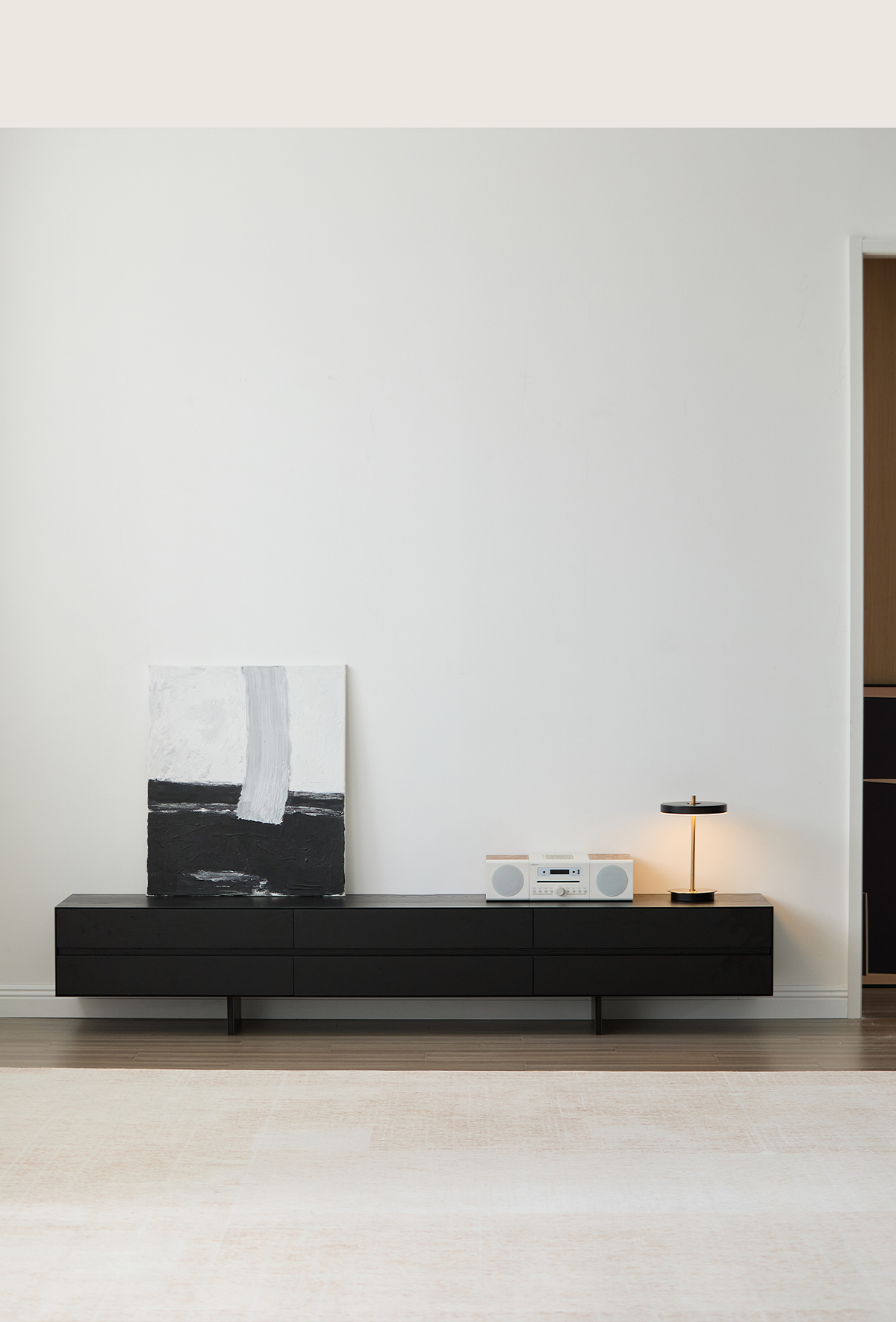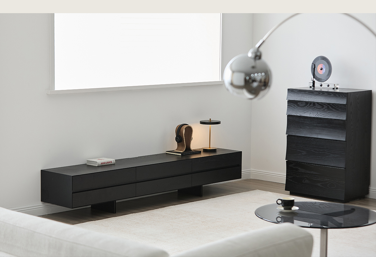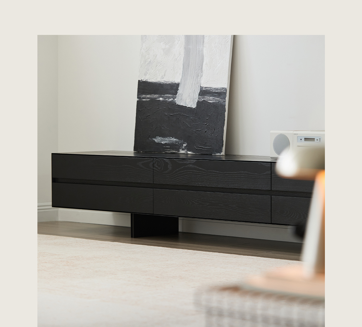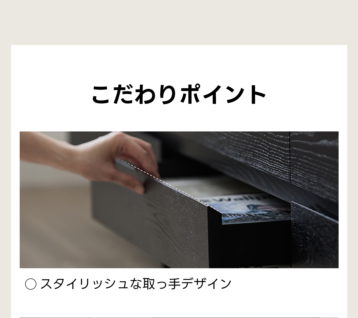 - 【洗練されたモダンデザイン】Woody Select シンプルモダンテレビボードは、どんなインテリアにもマッチする無駄のないデザインが特徴です。ブラックの色合いと天然木の美しさが、リビングルームに上質な雰囲気を演出します。