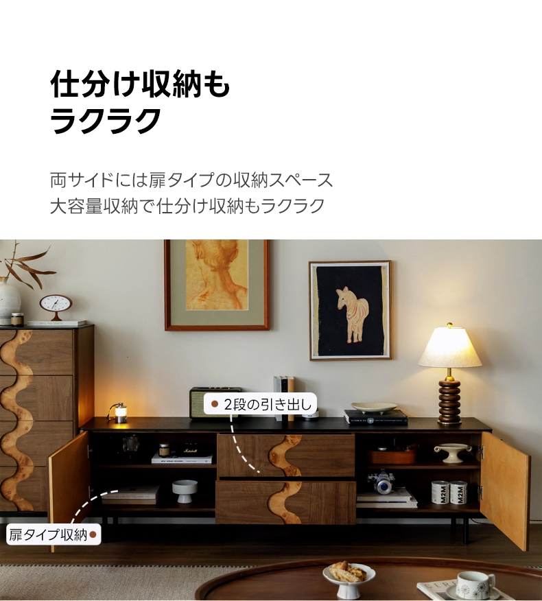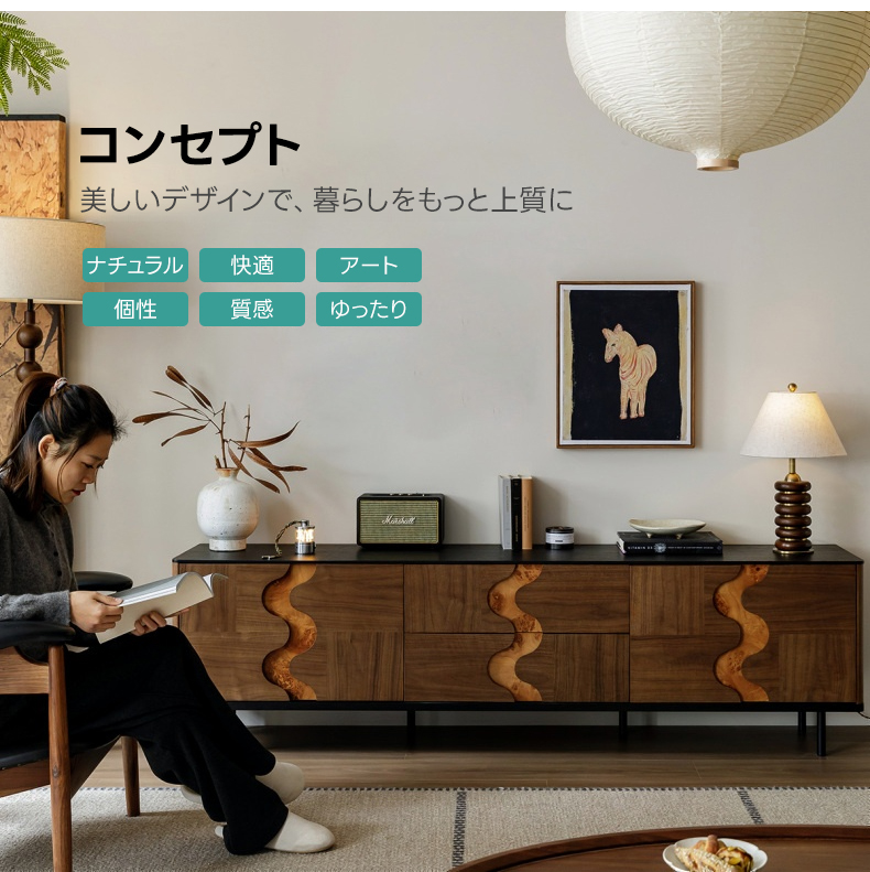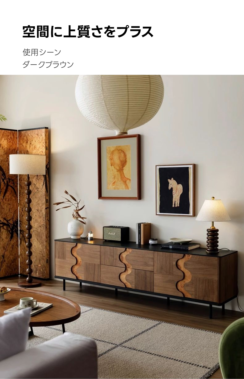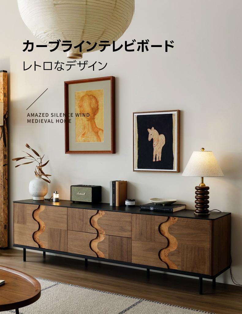 - 【ヴィンテージデザインと機能性の融合】カーブラインテレビボードは、ヴィンテージ感あふれるデザインと実用性を兼ね備えています。合成板を使用し、耐久性と美しさを両立。リビングや寝室にぴったりの一品です。