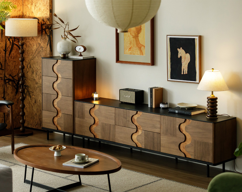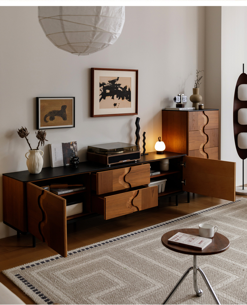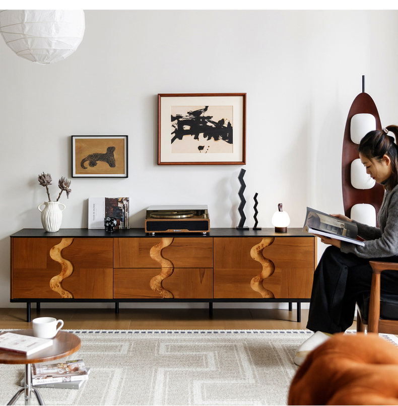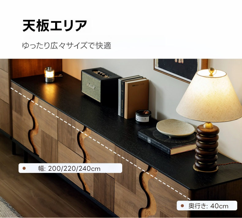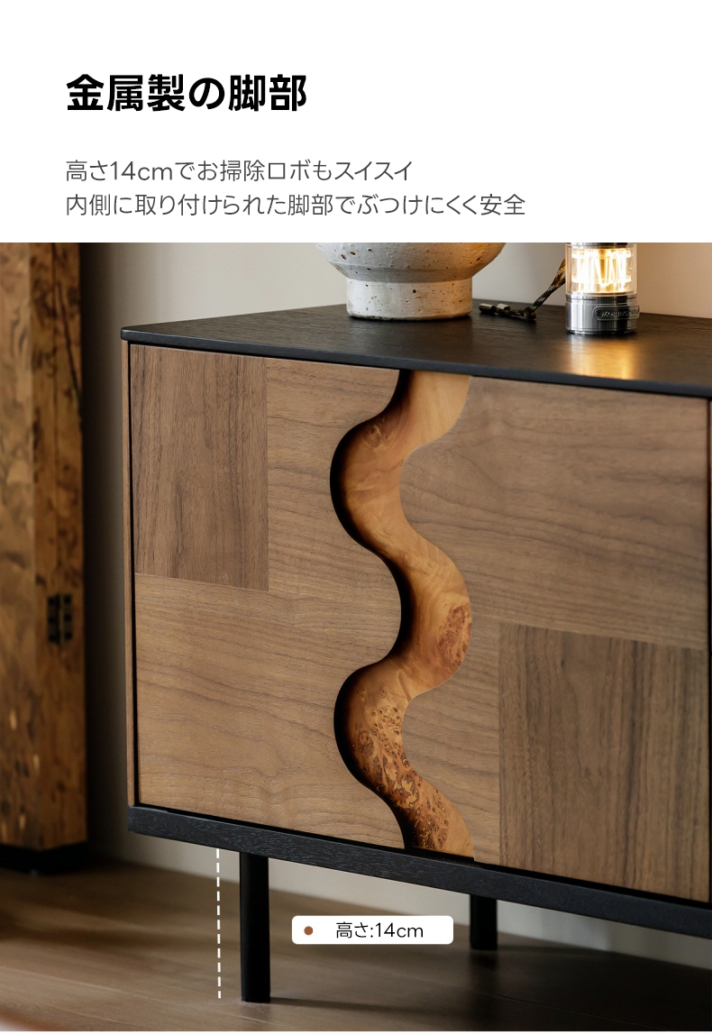 - 【ヴィンテージデザインと機能性の融合】カーブラインテレビボードは、ヴィンテージ感あふれるデザインと実用性を兼ね備えています。合成板を使用し、耐久性と美しさを両立。リビングや寝室にぴったりの一品です。