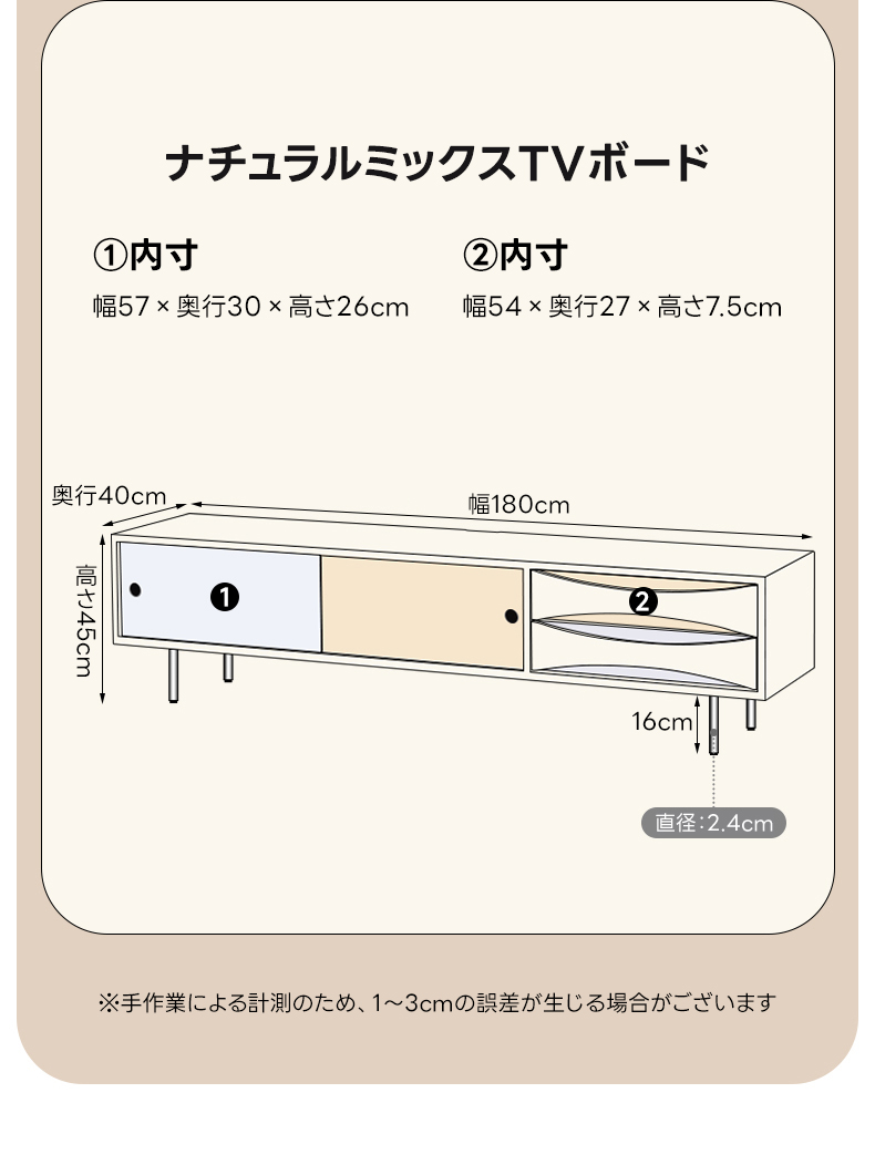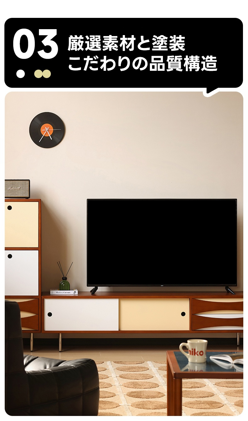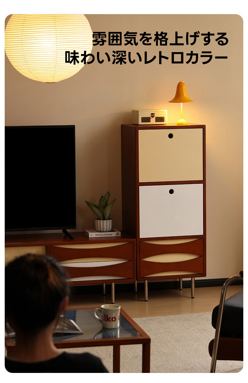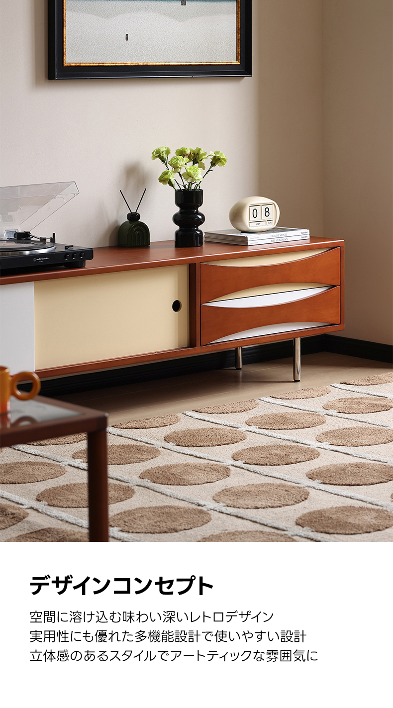 - 【ヴィンテージスタイルと高級感】ナチュラルミックスTVボードは、ヴィンテージスタイルのデザインと高級ツゲ材を使用したテレビ台です。リビングルームにぴったりの一品で、レトロな雰囲気を演出します。