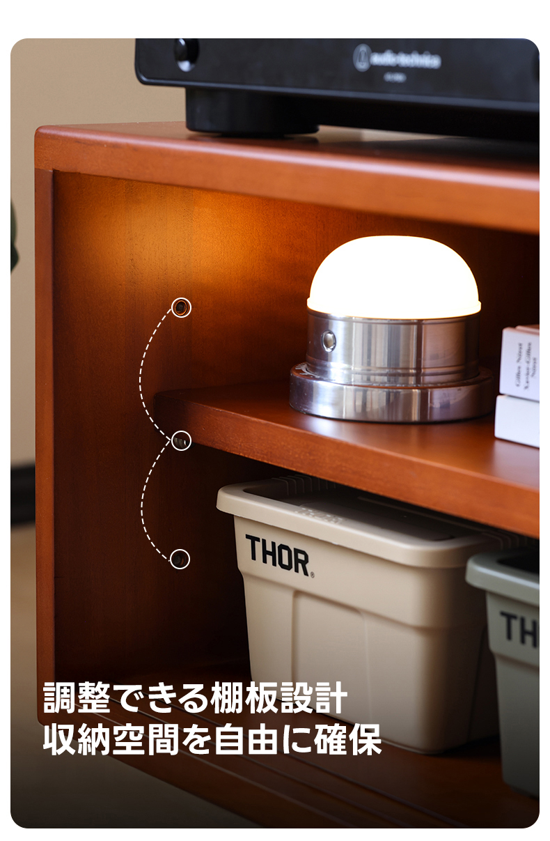- 【多機能で省スペース】大容量の収納スペースを備え、スライドドアで省スペースを実現します。調整可能な棚板設計により、収納空間を自由にアレンジ可能です。