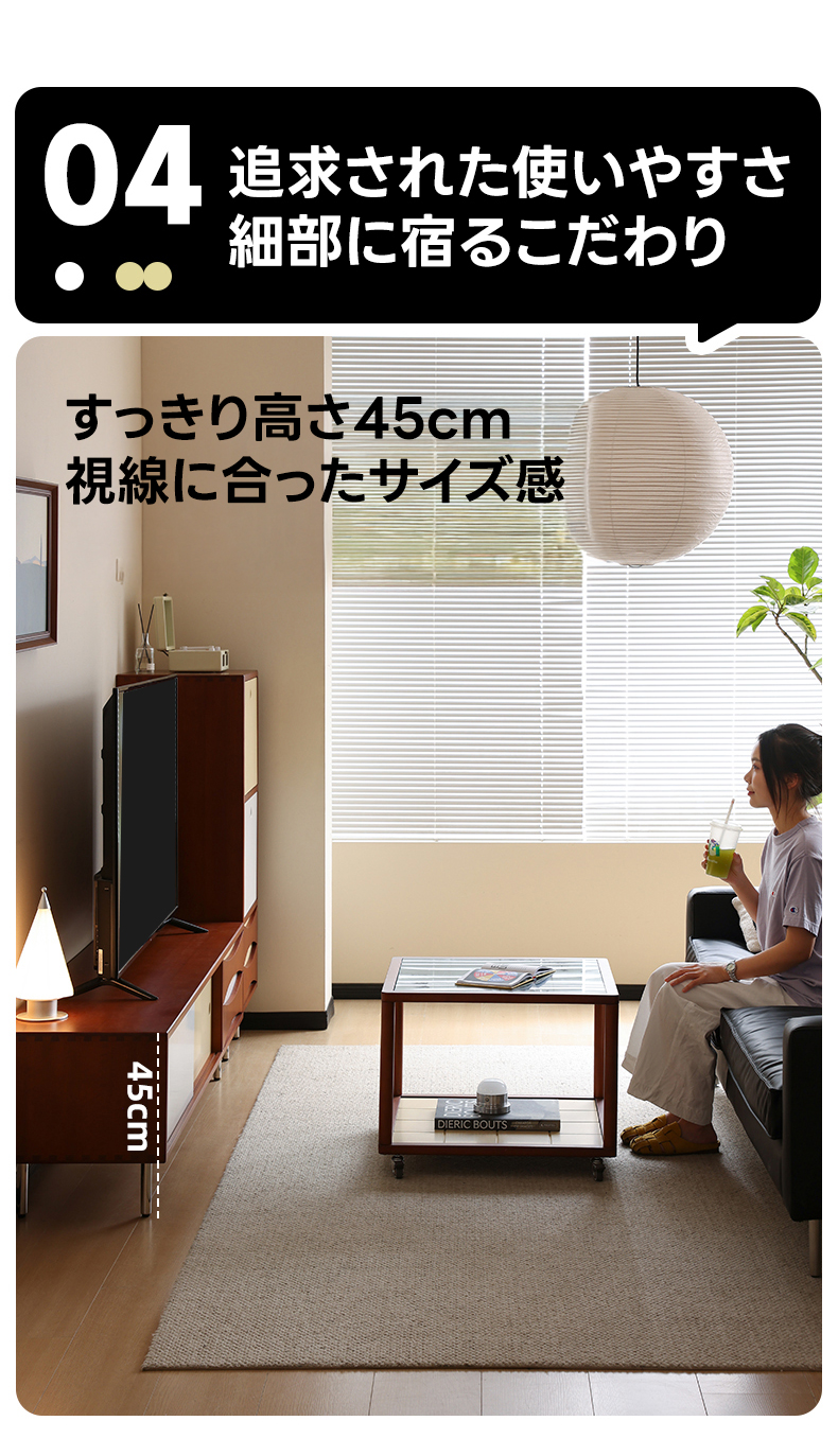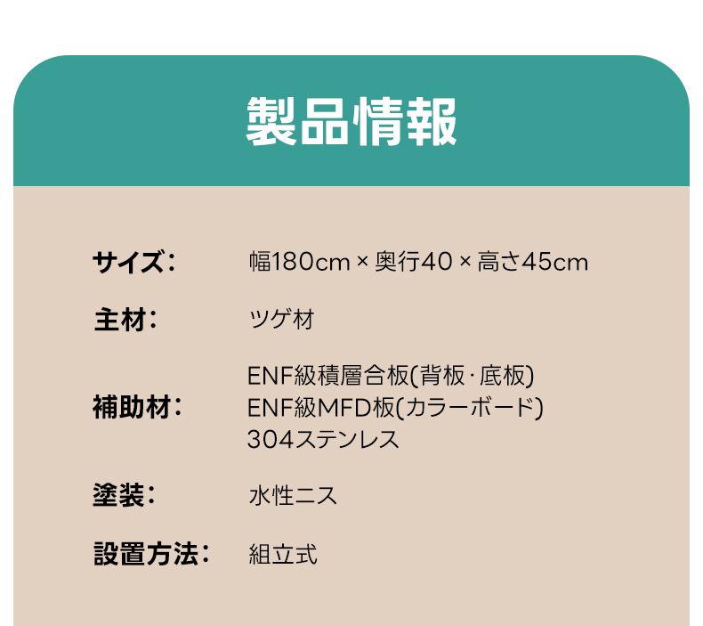 - 【快適な使用体験】幅180cm、奥行40cm、高さ45cmのコンパクト設計で、どんなリビングにもフィットします。組立式で、簡単に設置可能です。