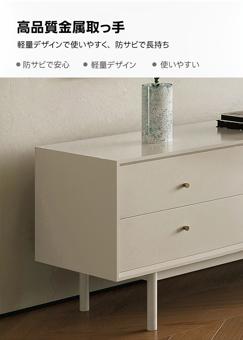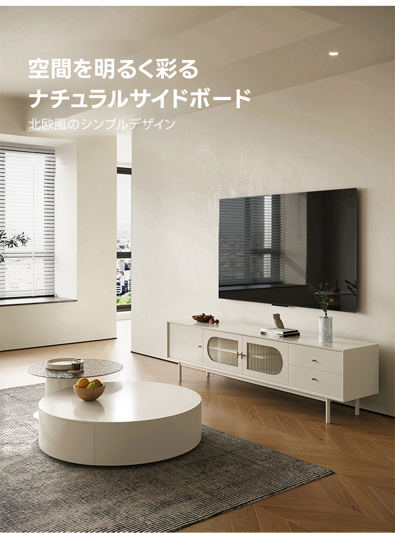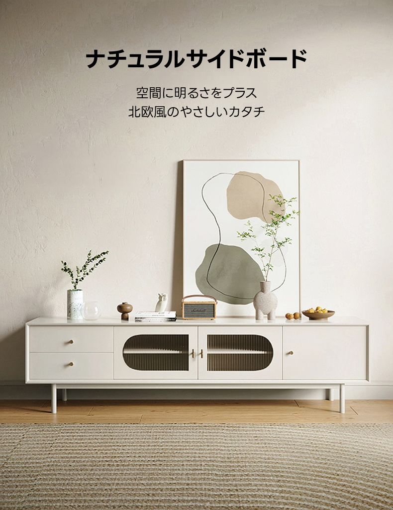 - 【優雅な北欧風デザイン】:ナチュラルサイドボードは、シンプルで洗練された北欧風デザインが特徴です。リビングルームにぴったりで、空間をラグジュアリーに演出します。ホワイトカラーがどんなインテリアにも調和し、上品な印象を与えます。