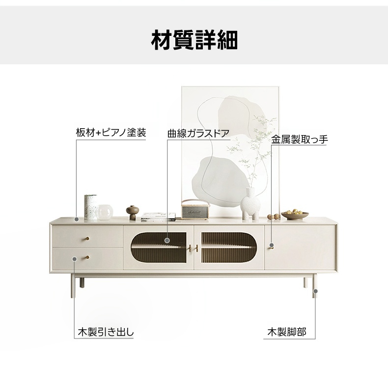 - 【多用途な収納スペース】:幅180cmの大容量収納スペースを提供し、リビングルームの整理整頓に最適です。カップルやファミリー向けに設計されており、日常生活をより快適にします。木製引き出しと金属製取っ手で、使いやすさも抜群です。