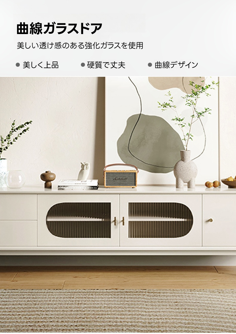 - 【簡単な組立と設置】:このサイドボードは組立が簡単で、すぐにお部屋に設置できます。強化ガラスを使用したドアは耐久性が高く、長期間にわたって安心してお使いいただけます。リビングルームを明るく彩ります。