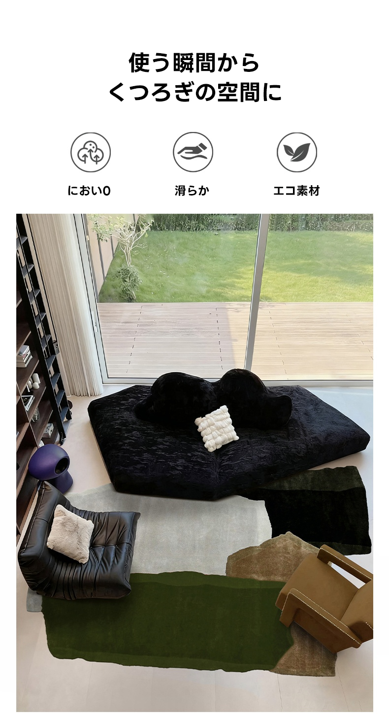 - 【快適な使用体験】床暖房にも対応しており、寒い季節でも快適にお使いいただけます。ひっかきに強い表面素材で、ペットと暮らす家庭でも安心して使用できます。お手入れも簡単で、掃除機やロボット掃除機で手軽に清掃可能です。