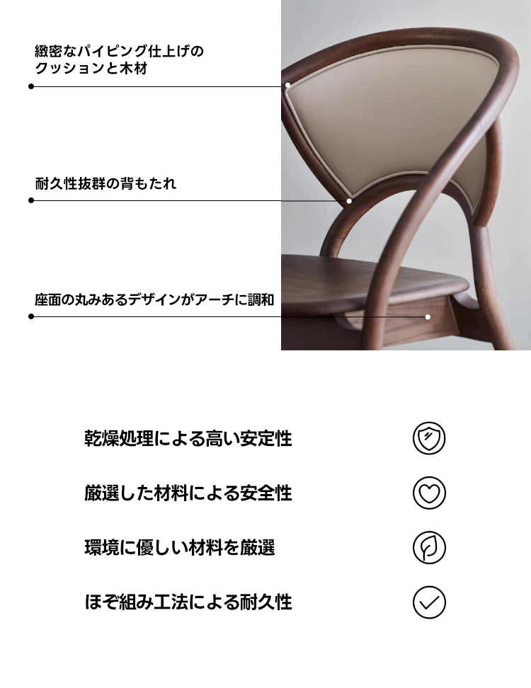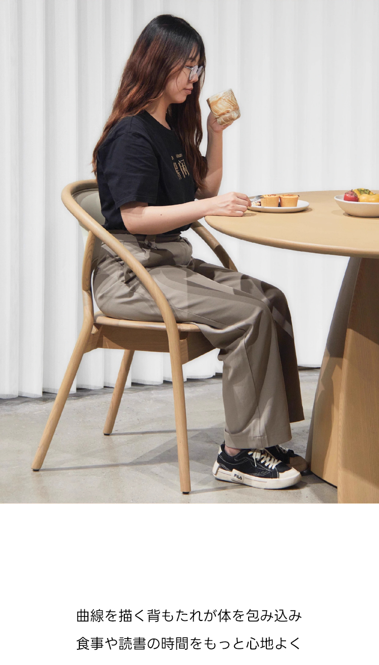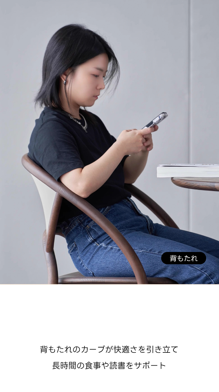 - 【快適な座り心地】背もたれのカーブが体をしっかりサポートし、長時間の食事や読書でも快適です。標準的なサイズで、どんな体型の方にもフィットします。