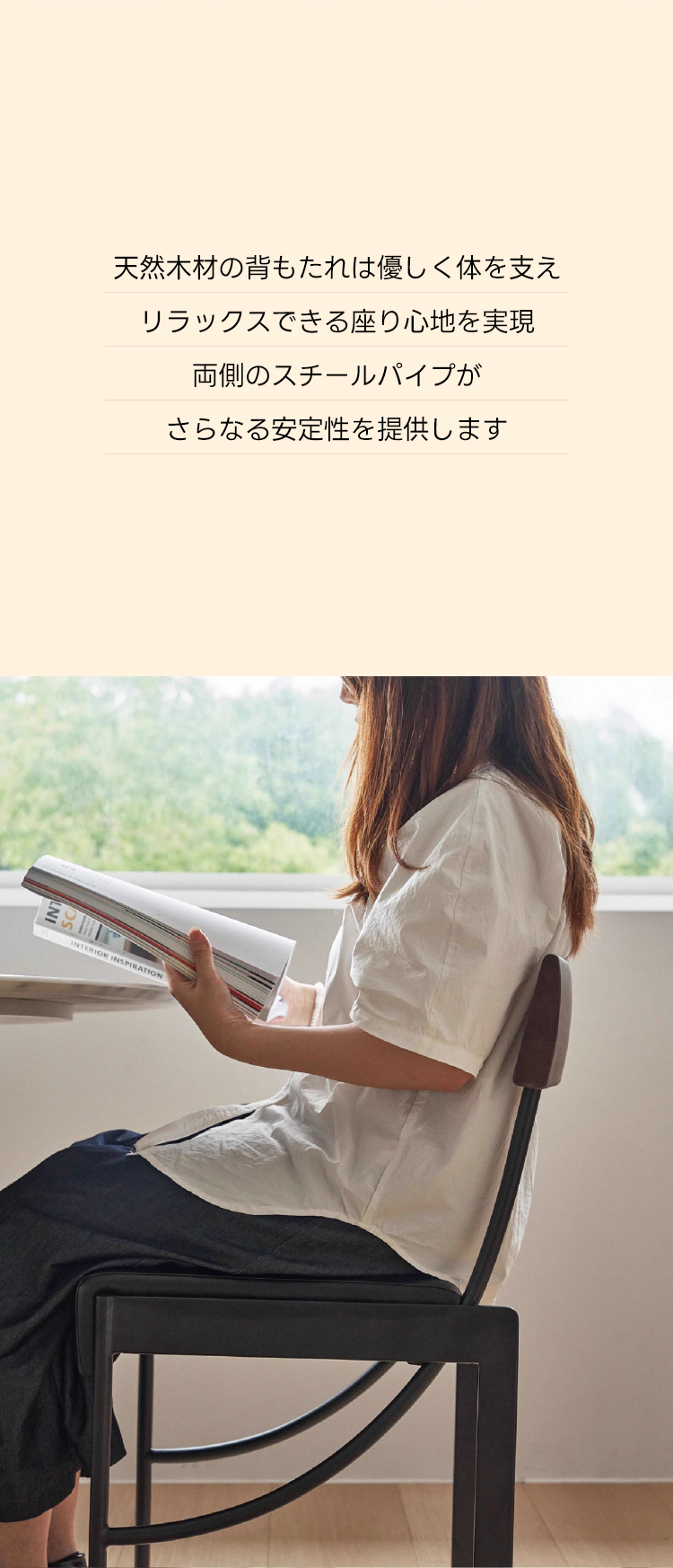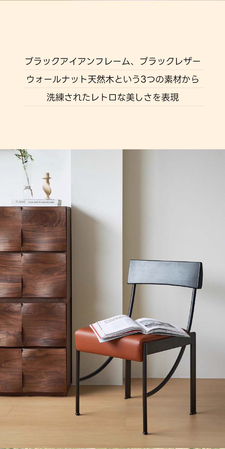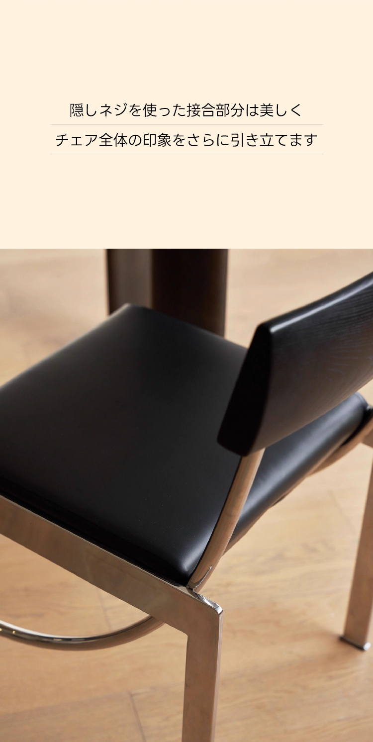 - 【高品質な素材とデザイン】:ステンレスとブラックアイアンのフレームに加え、ウォールナットやホワイトアッシュの天然木材を使用。PUレザーのクッションが温かみと快適さを兼ね備え、長時間の使用でも疲れにくい設計です。