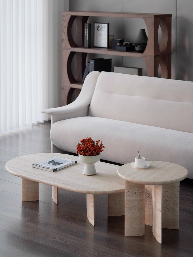 - 【高品質な素材と仕上げ】天然トラバーチンとホワイトアッシュを使用し、高級感ある質感を実現。滑らかな手触りと頑丈な作りで、長く使える耐久性があります。角丸加工により安全性も考慮されています。
