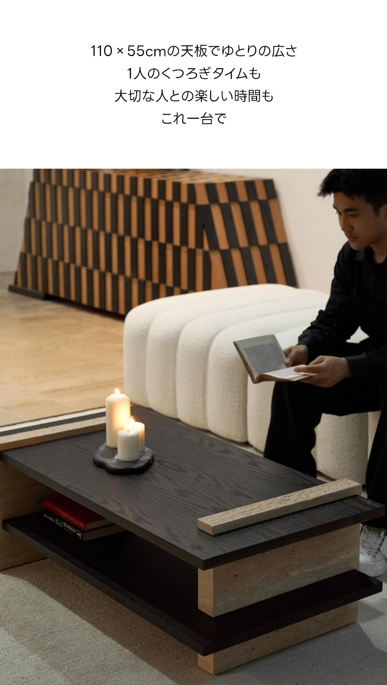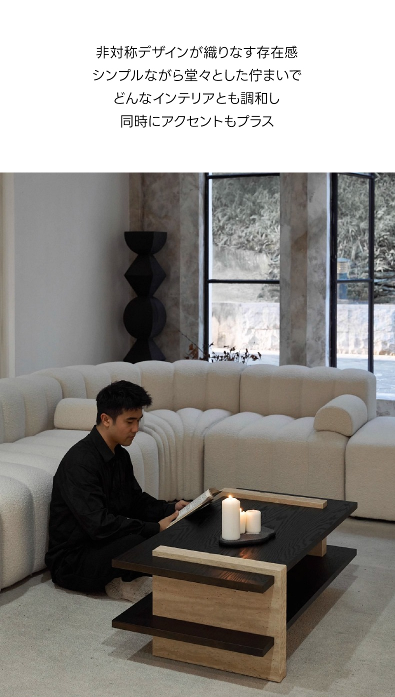 - 【洗練されたデザインと高級感】:和テイストソファテーブルは、モダンなデザインと高級感を兼ね備えたラグジュアリーな座卓です。合成板とトラバーチンを使用し、耐久性と美しい模様が特徴です。リビングに温かみを加え、どんなインテリアにも調和します。