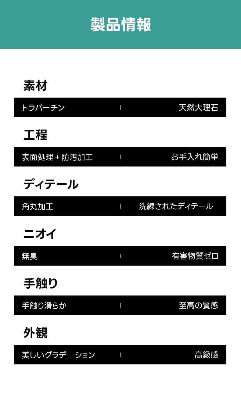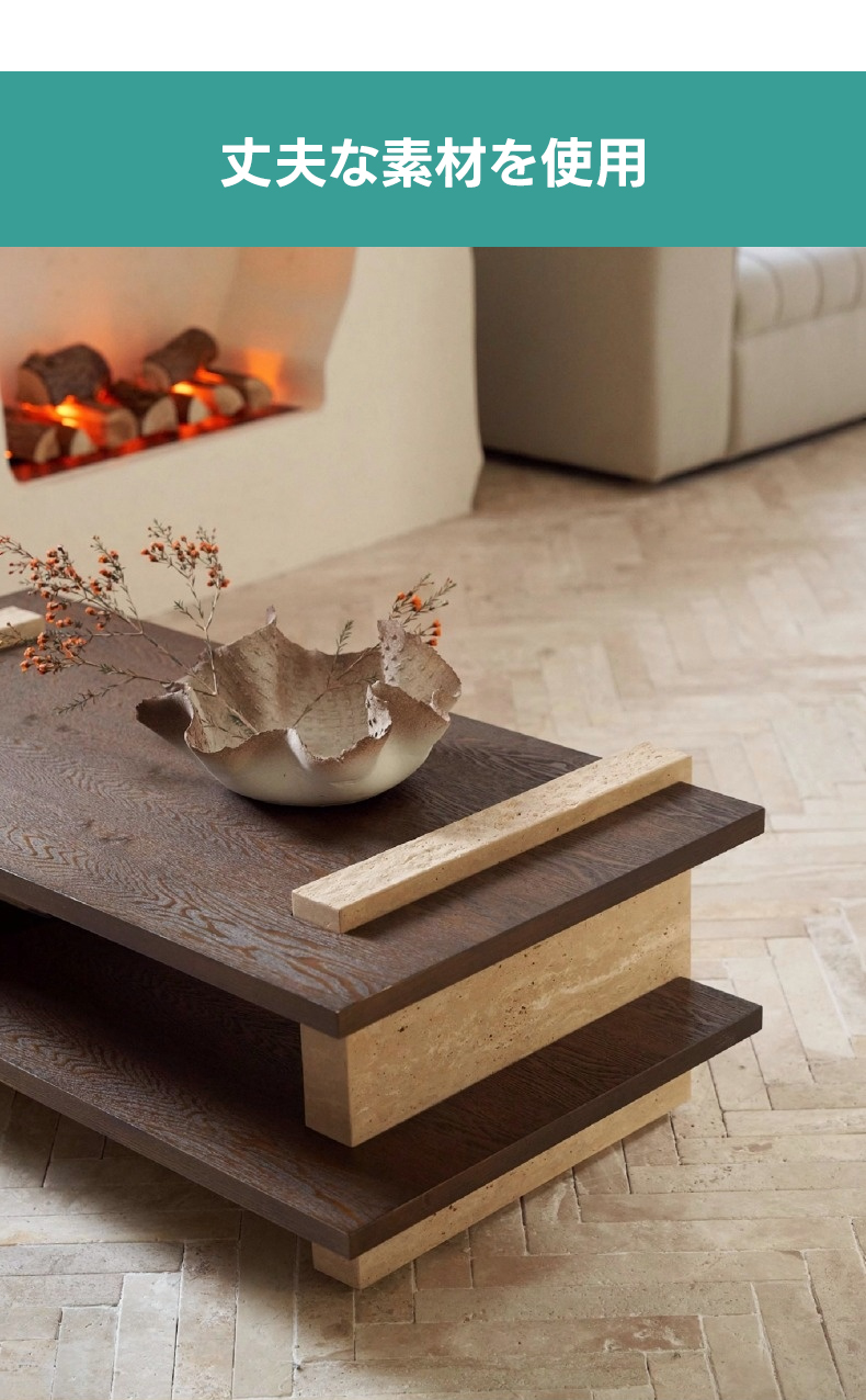 - 【高品質な素材と安全性】:脚部には自然のトラバーチンを採用し、美しい模様と滑らかな手触りが特徴です。環境に優しいE0級の合板を使用しており、安全性も考慮されています。組立品でありながら、高品質な素材で長くお使いいただけます。