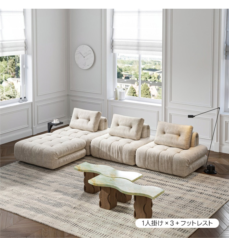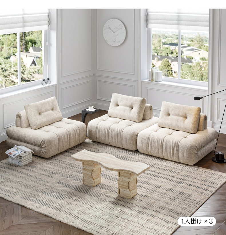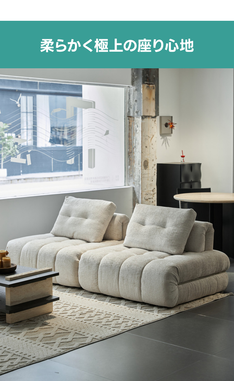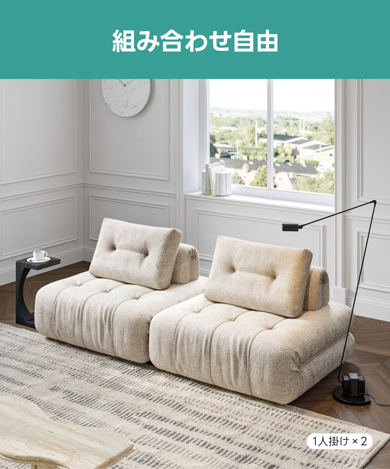 - 【多様なシーンで活躍】カップルやファミリー向けに設計されたこのソファは、リビングルームでのリラックスタイムに最適です。モジュール式のデザインにより、1人掛けや3人掛けなど自由な組み合わせが可能で、スペースに合わせた配置ができます。