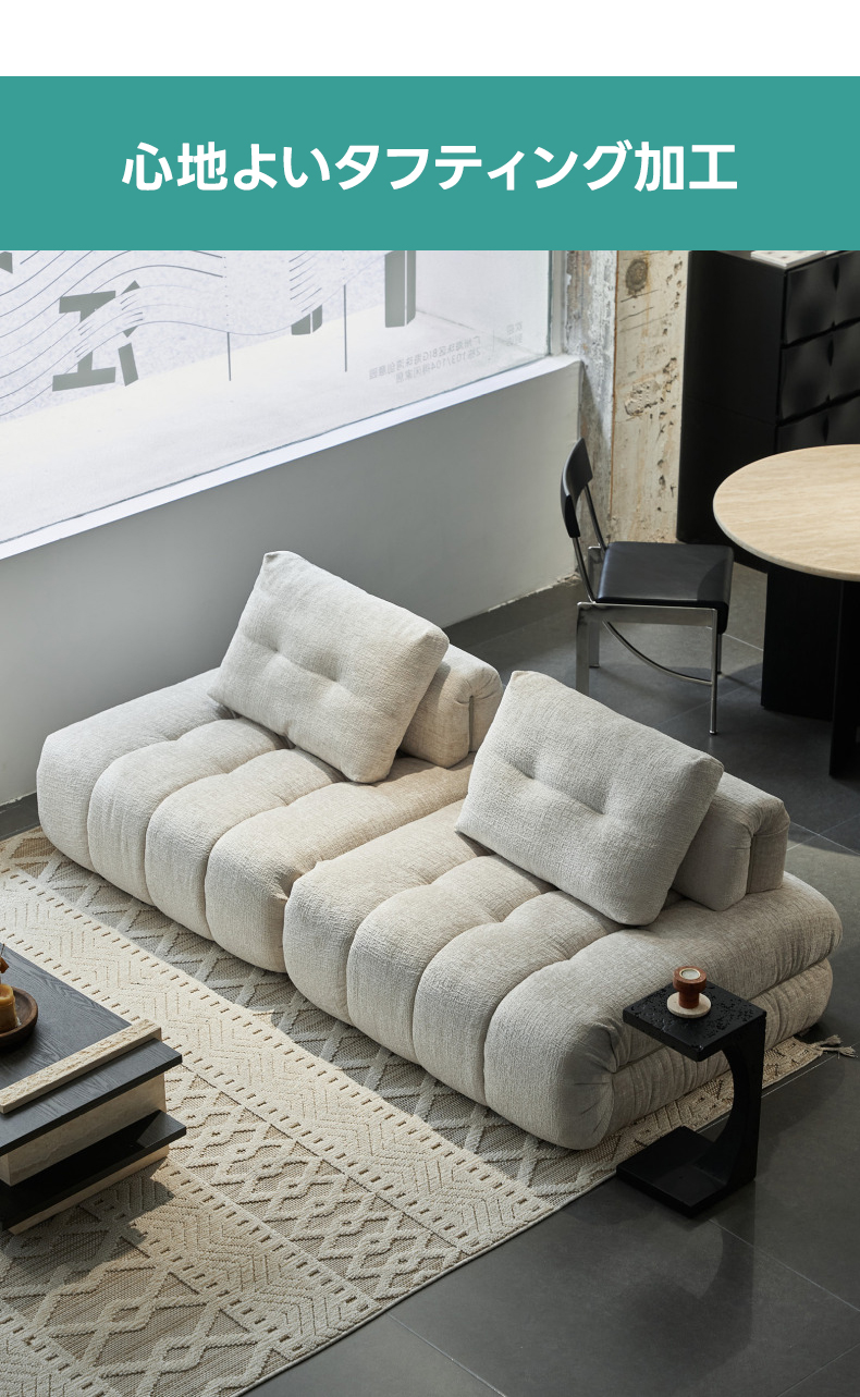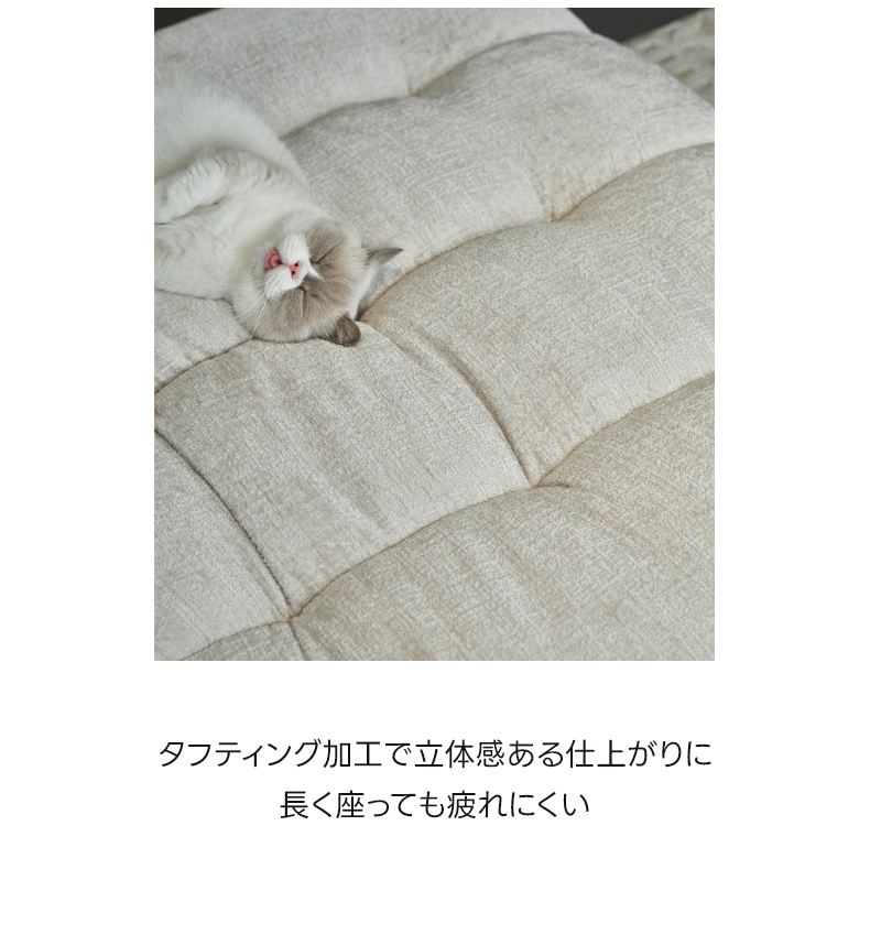 - 【快適な座り心地】ウレタンとPP綿、グースダウンを組み合わせた柔らかなクッションが、体をしっかりサポートします。タフティング加工により、立体感ある仕上がりで長時間座っても疲れにくい設計です。