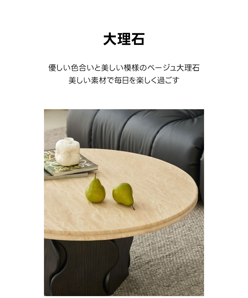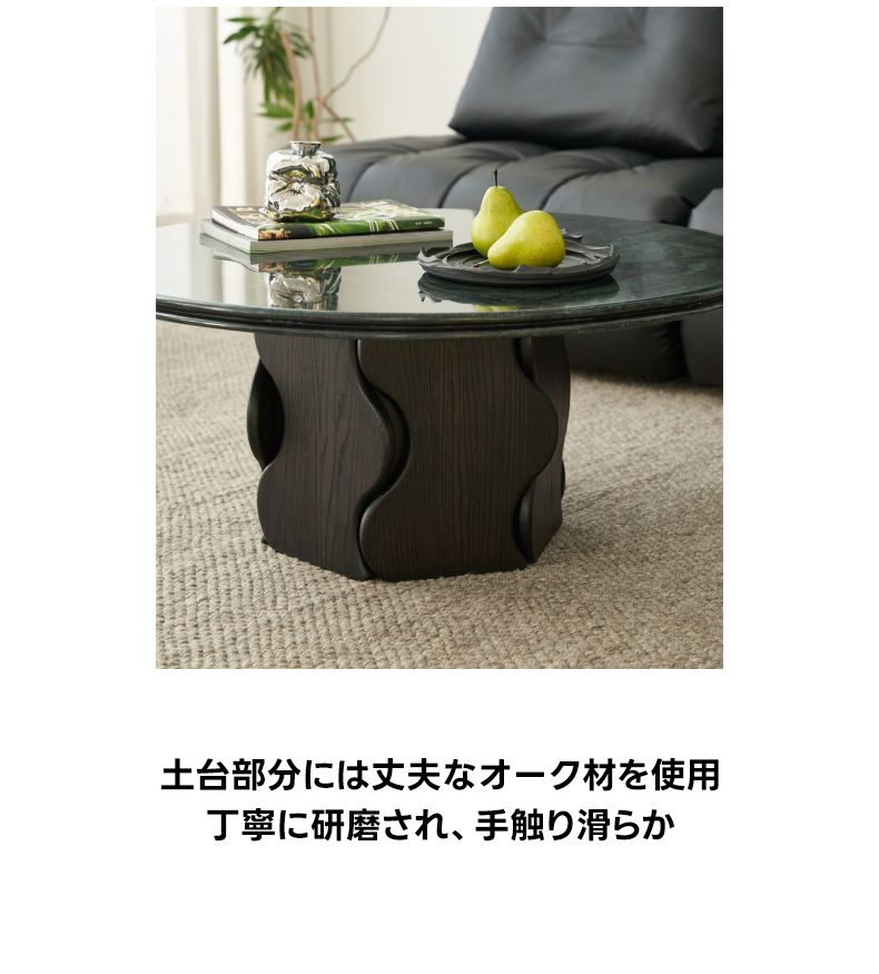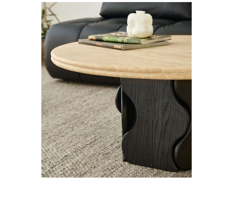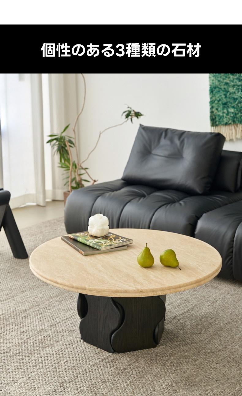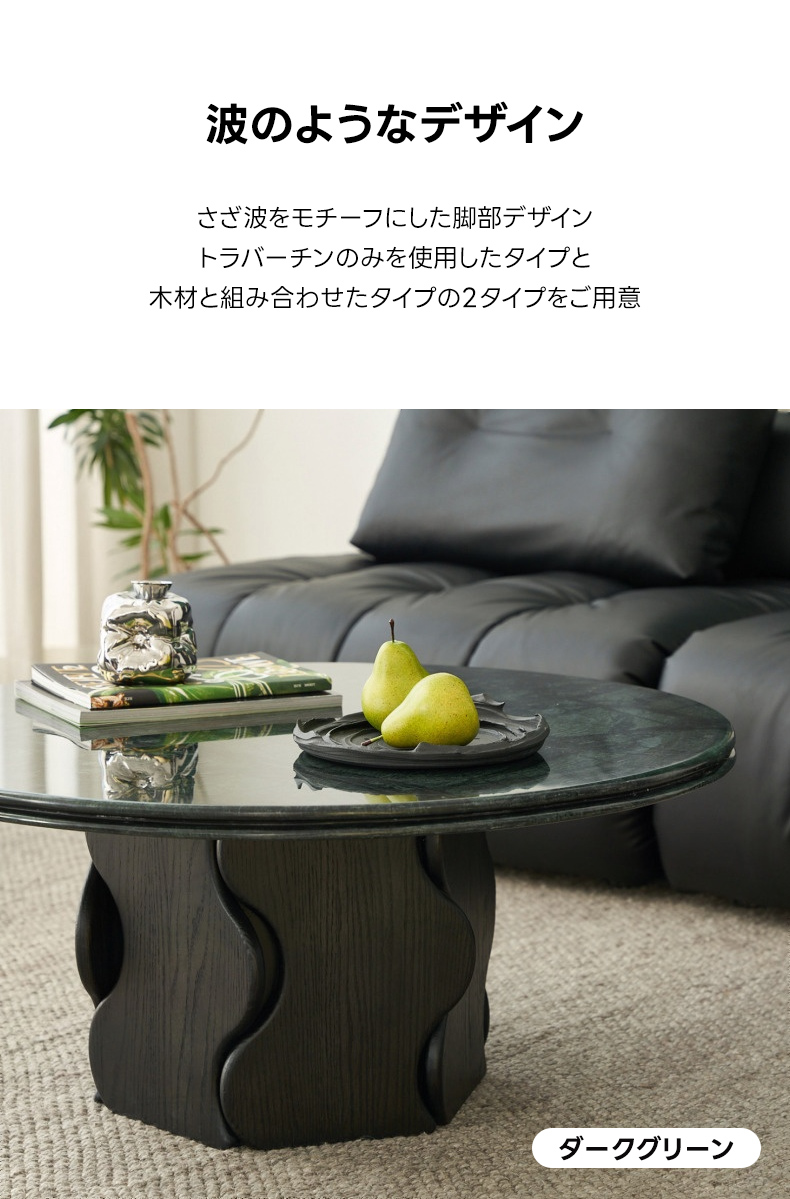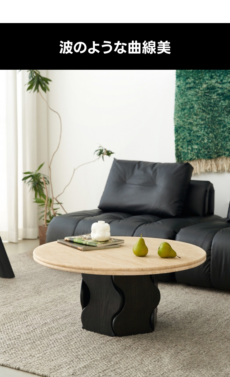 - 【耐久性と美しさの両立】:トルコ産のトラバーチンやオーク材を使用し、耐久性と美しさを両立。波のような曲線美を取り入れた脚部デザインが特徴で、視覚的に柔らかさと動きを感じさせます。