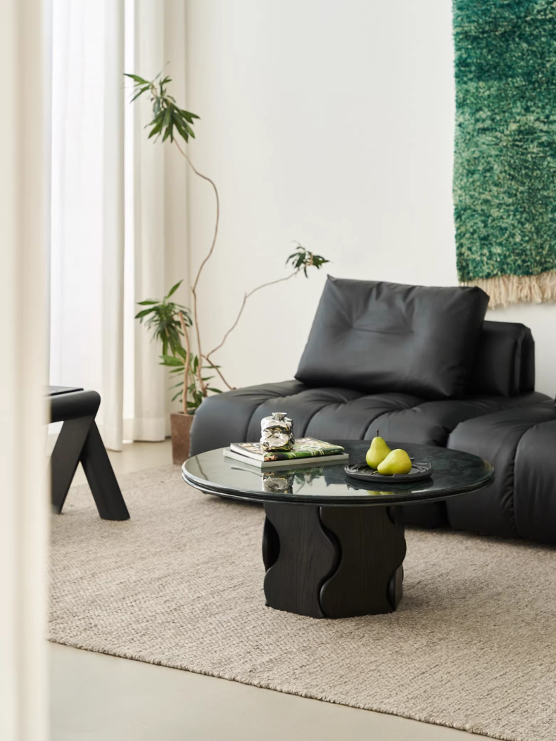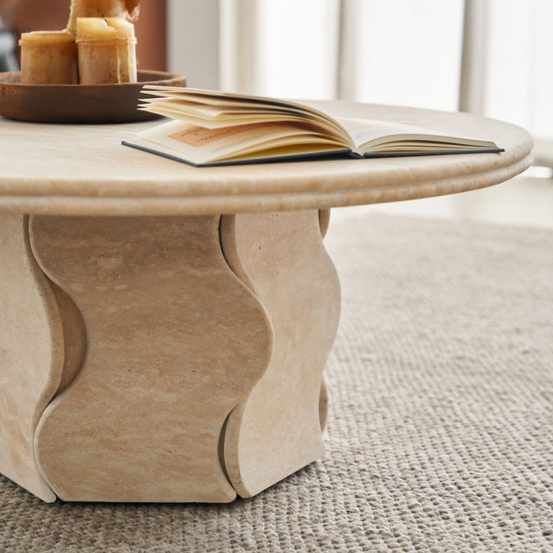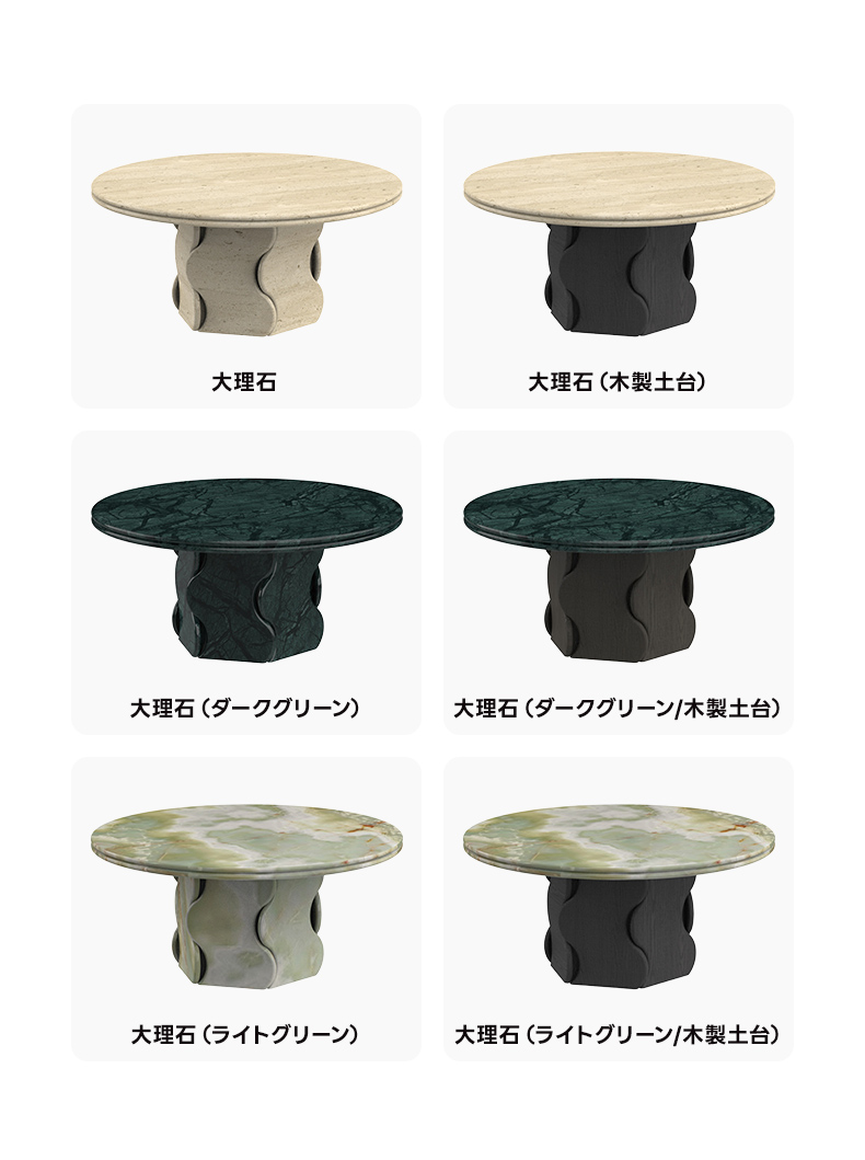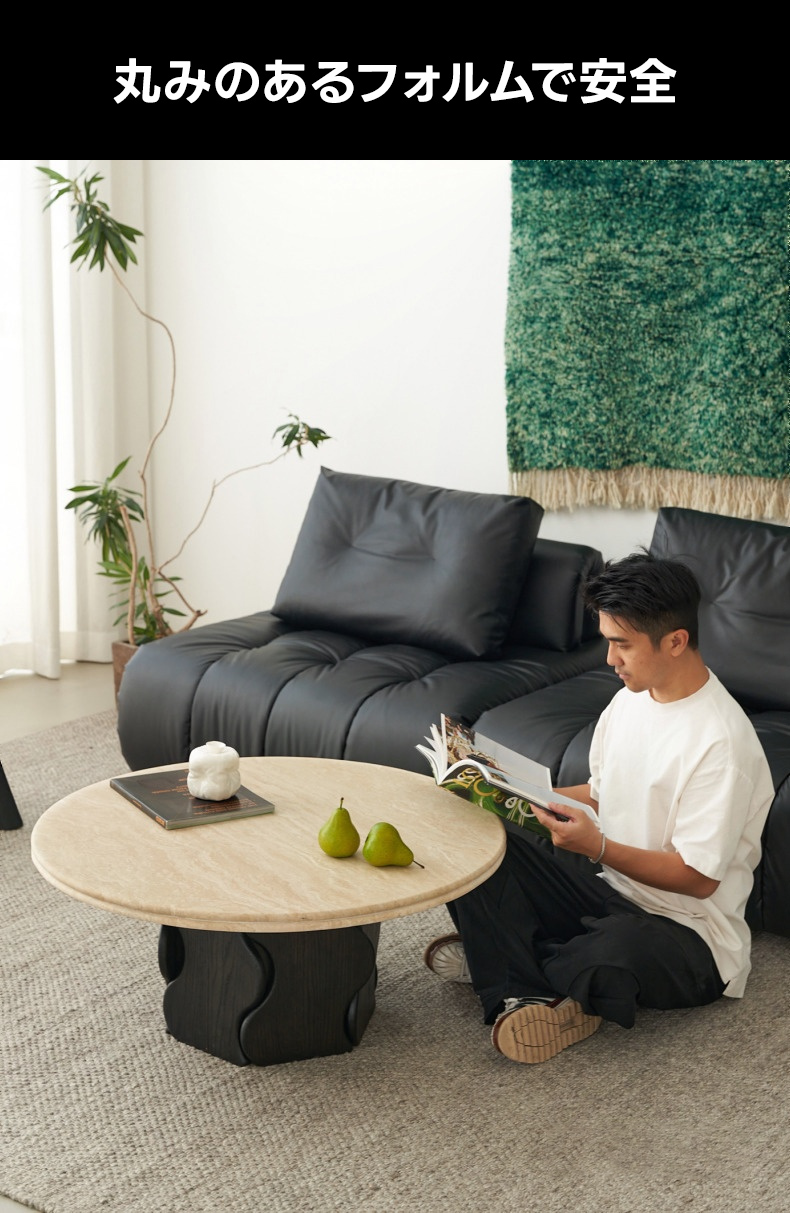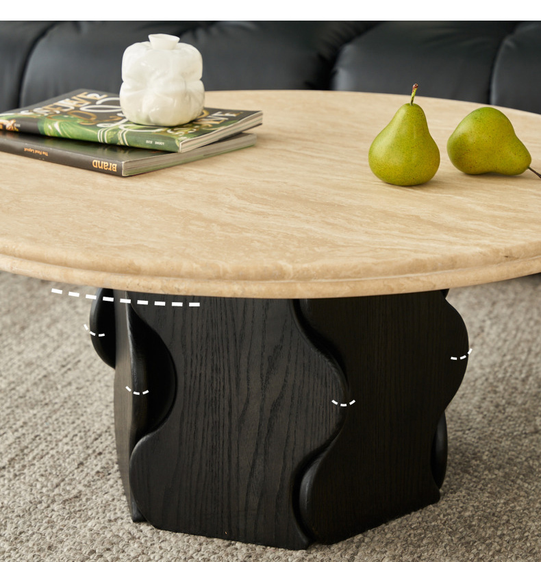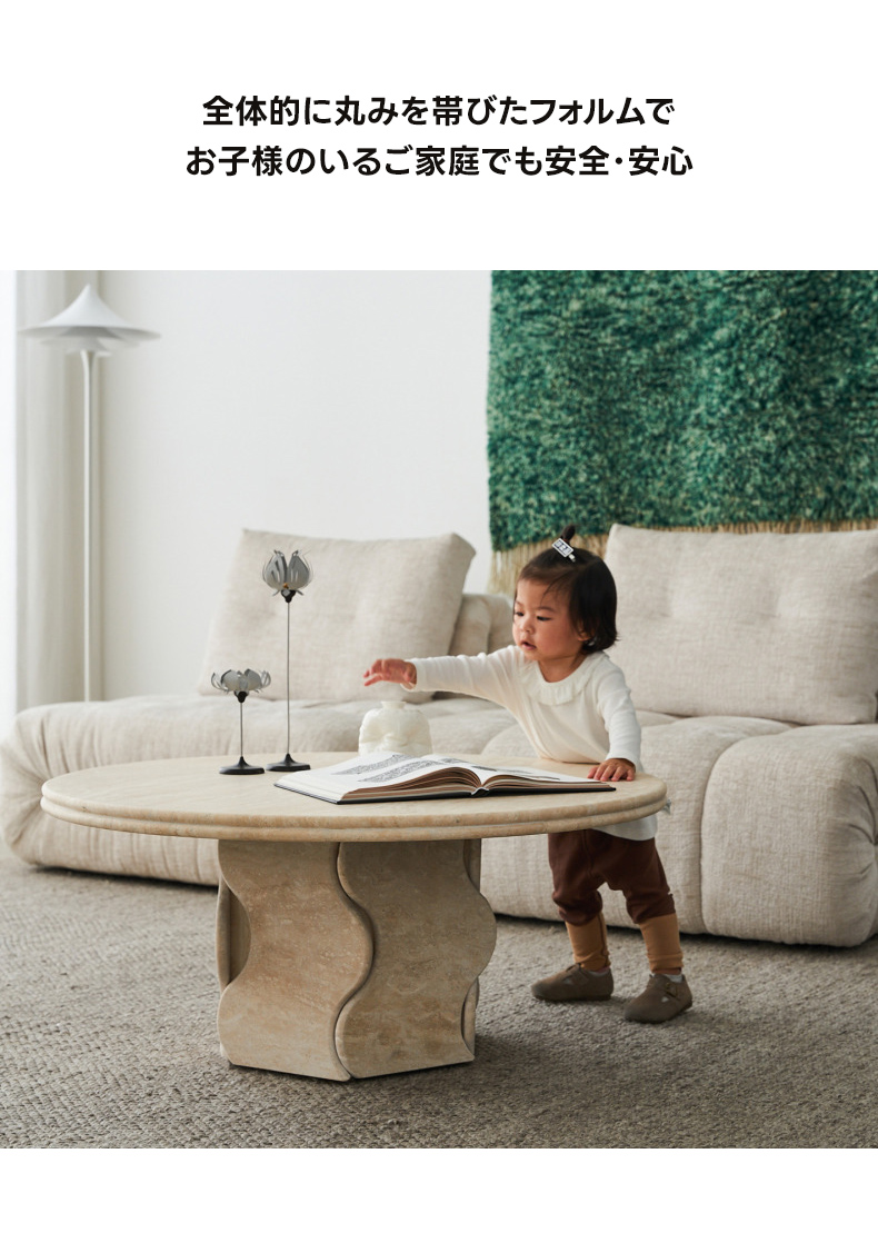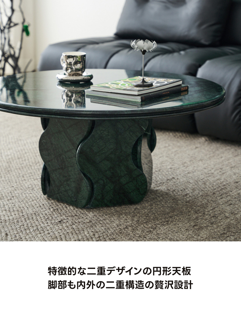 - 【耐久性と美しさの両立】:トルコ産のトラバーチンやオーク材を使用し、耐久性と美しさを両立。波のような曲線美を取り入れた脚部デザインが特徴で、視覚的に柔らかさと動きを感じさせます。