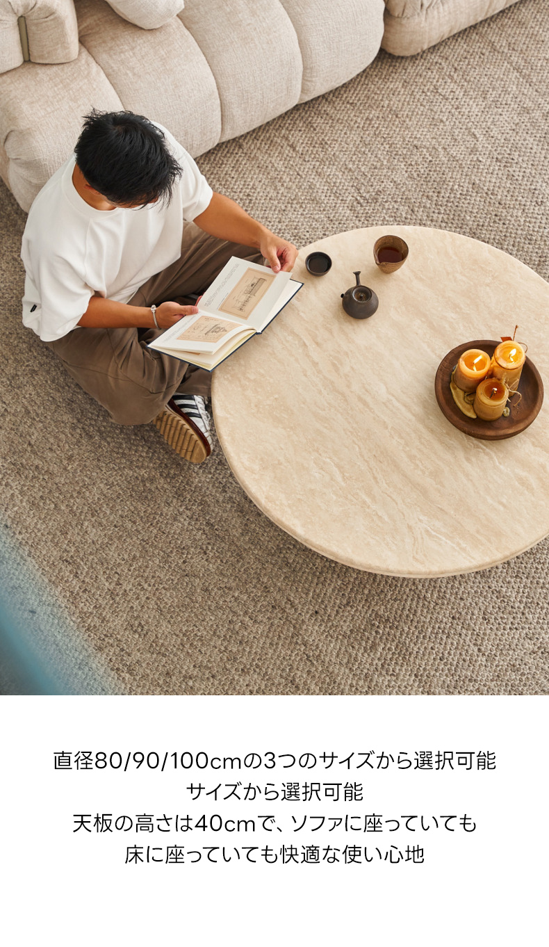 - 【多用途で便利な使用】:リビングテーブルや座卓として使用できるこのテーブルは、カップルやファミリーの生活シーンに対応。直径80cm、90cm、100cmの3つのサイズから選べ、どのような空間にもフィットします。