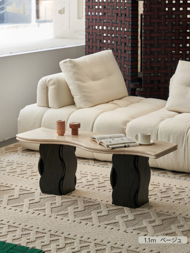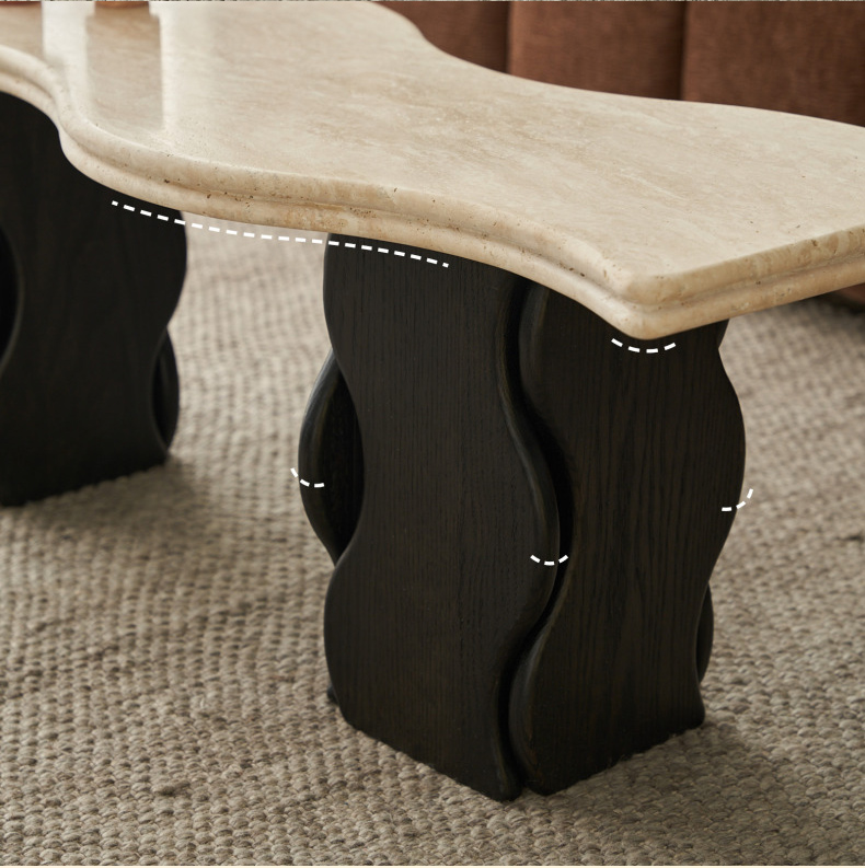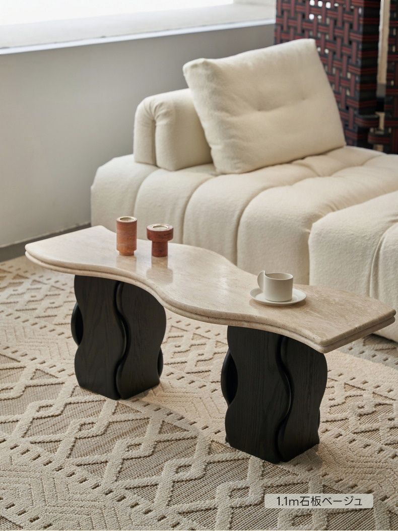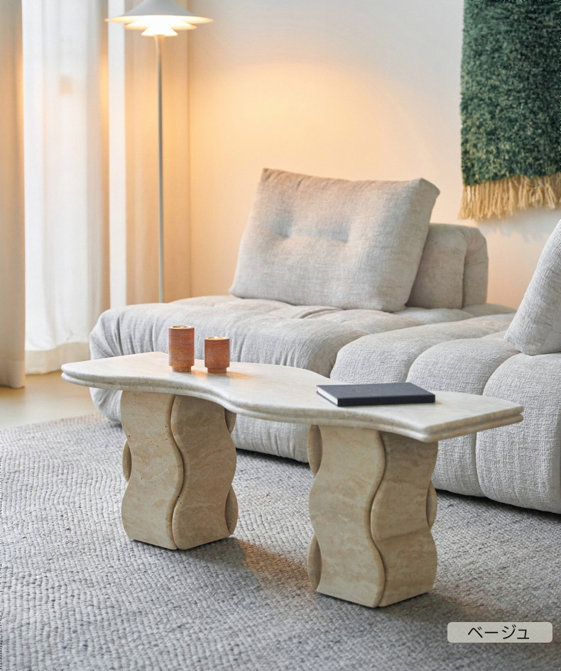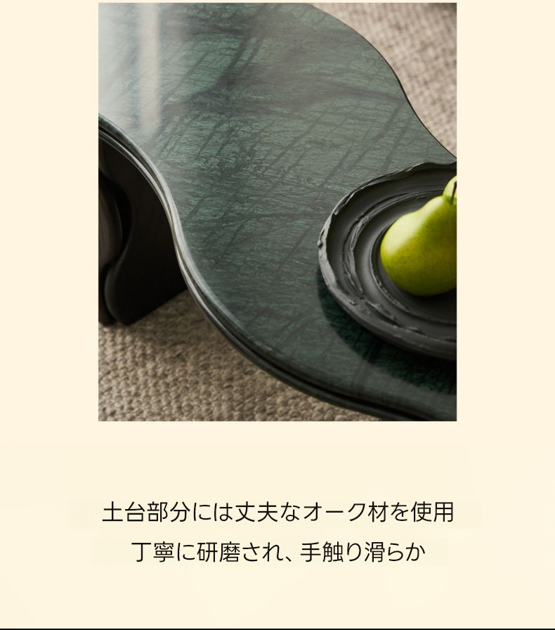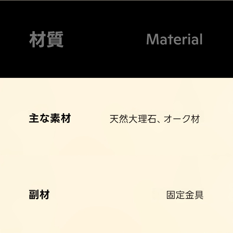 - 【高品質な素材とデザイン】天然大理石とオーク材を使用し、耐久性と美しさを兼ね備えています。脚部と天板には波型のデザインを採用し、立体感を演出。お手入れも簡単で、長くご愛用いただけます。