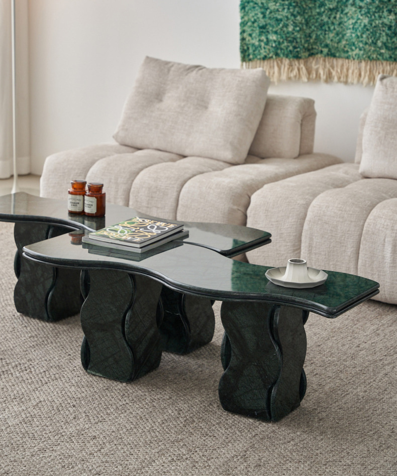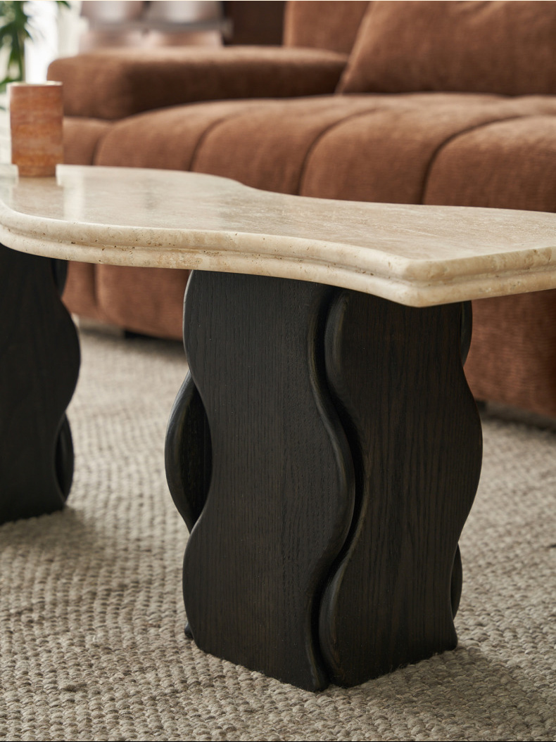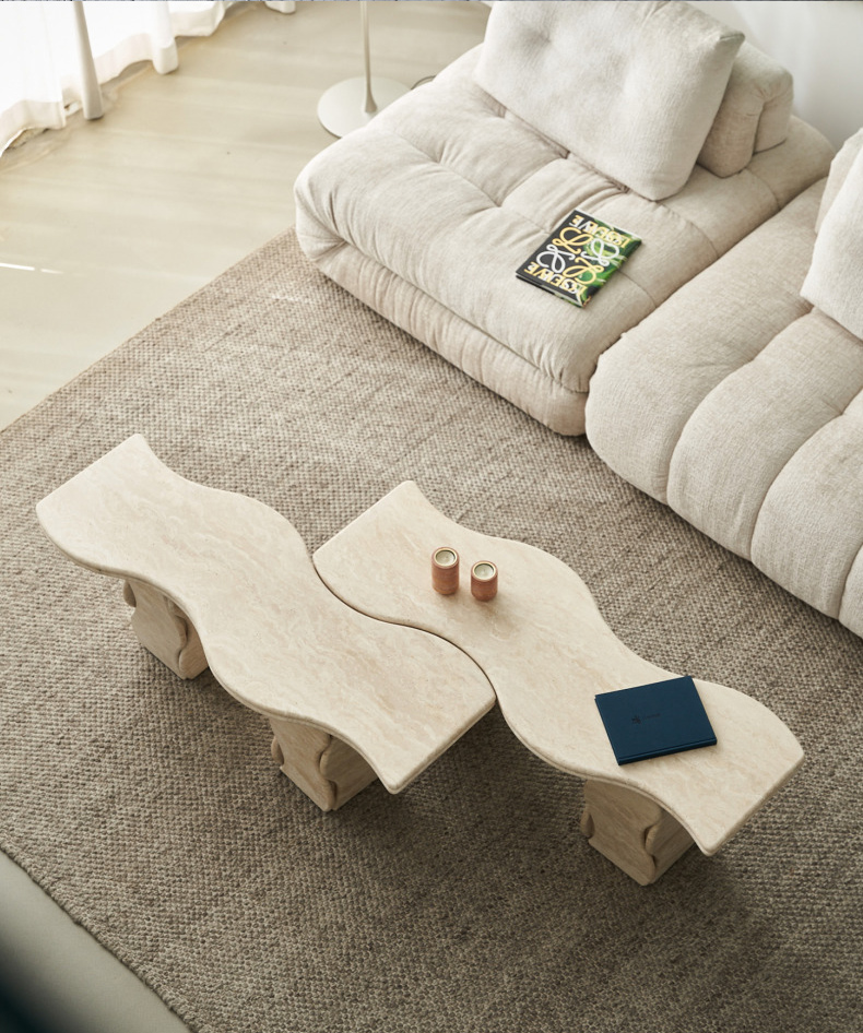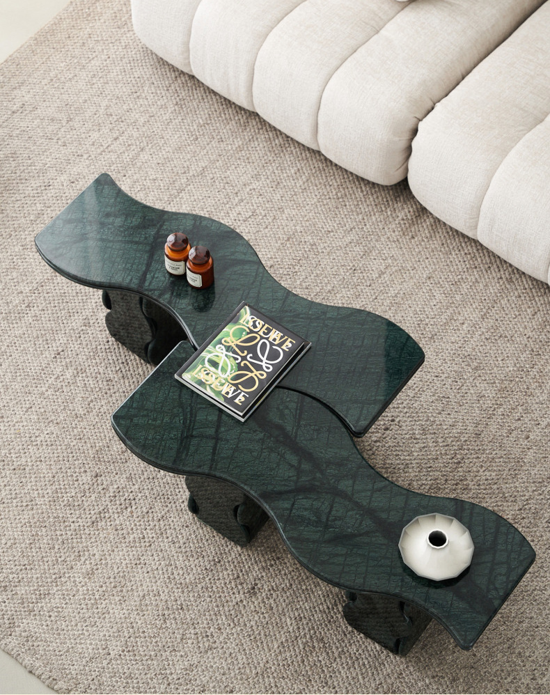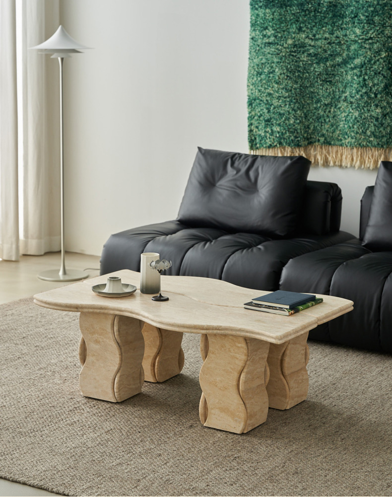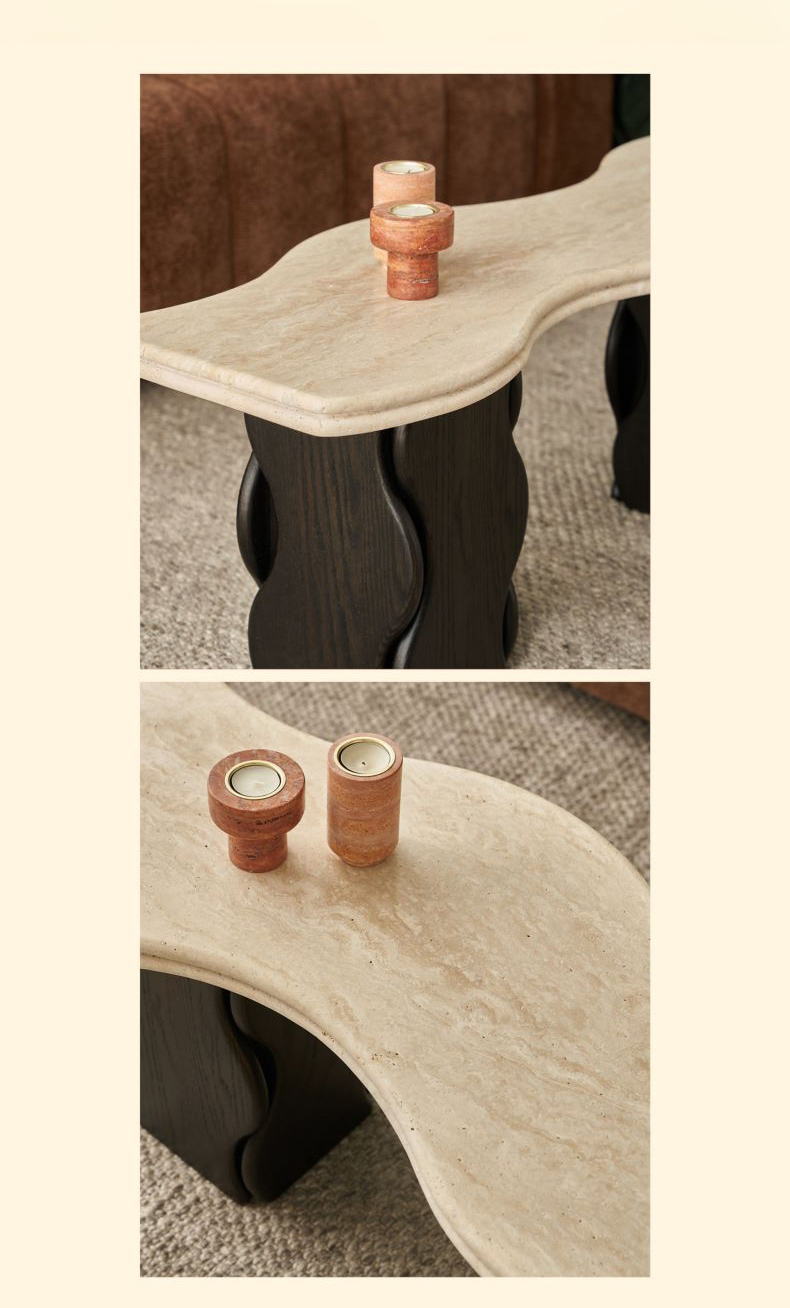 - 【高品質な素材とデザイン】天然大理石とオーク材を使用し、耐久性と美しさを兼ね備えています。脚部と天板には波型のデザインを採用し、立体感を演出。お手入れも簡単で、長くご愛用いただけます。