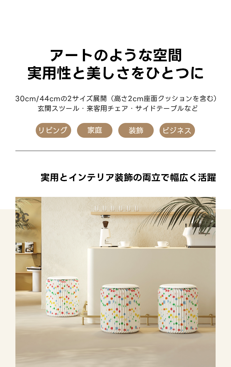 - 【多様な使用シーン】リビングやダイニング、玄関など、様々な場所で活躍するこのスツールは、一人暮らしの方からカップルやファミリーまで幅広くご利用いただけます。シンプルモダンなデザインがどんなインテリアにもマッチします。