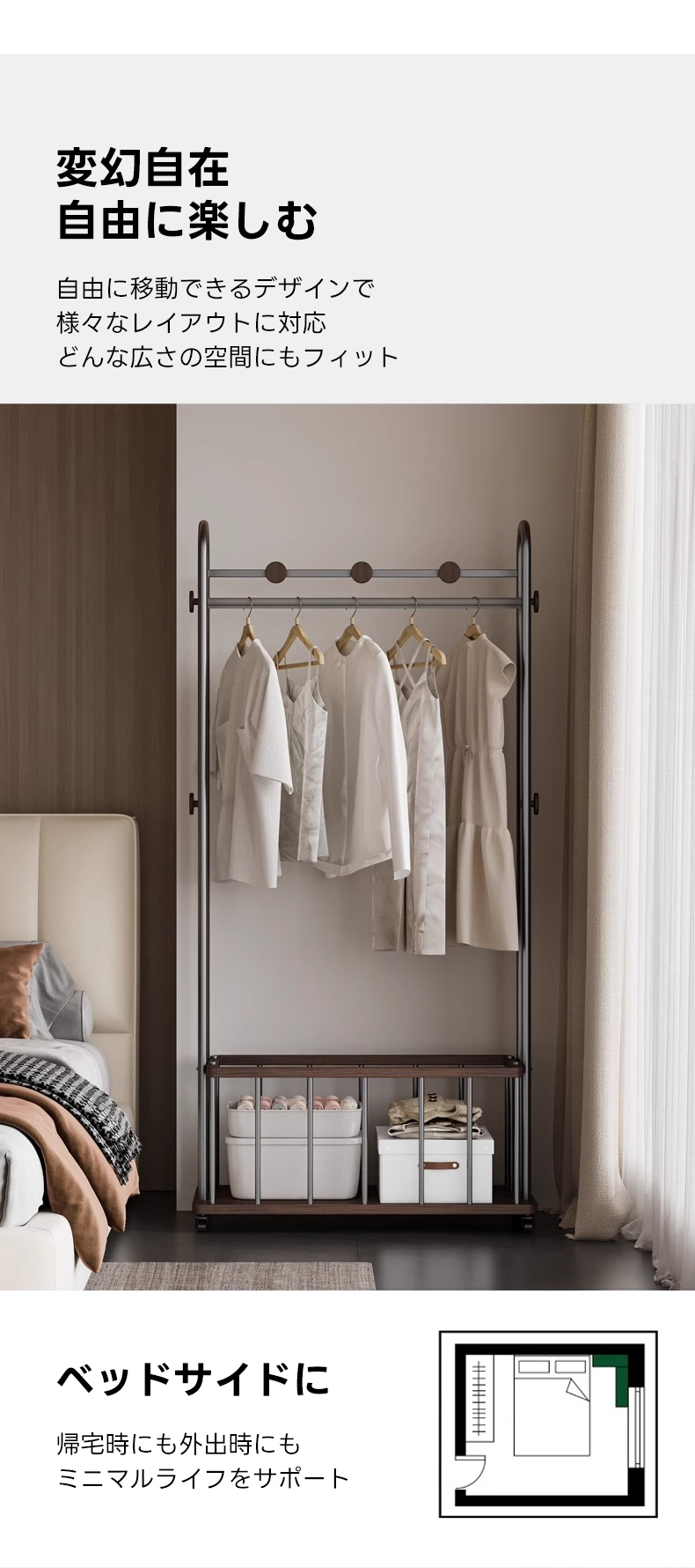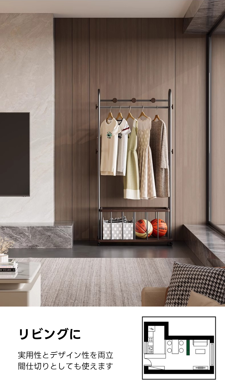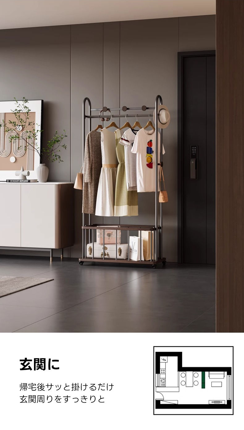- 【高級感あるデザインと優れた耐荷重】ステンレス製のフレームにチタンコーティングを施し、耐久性と滑らかさを両立。最大100kgの耐荷重性能を持ち、重い冬物のコートや大量の洗濯物も安心して収納できます。