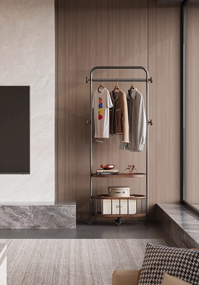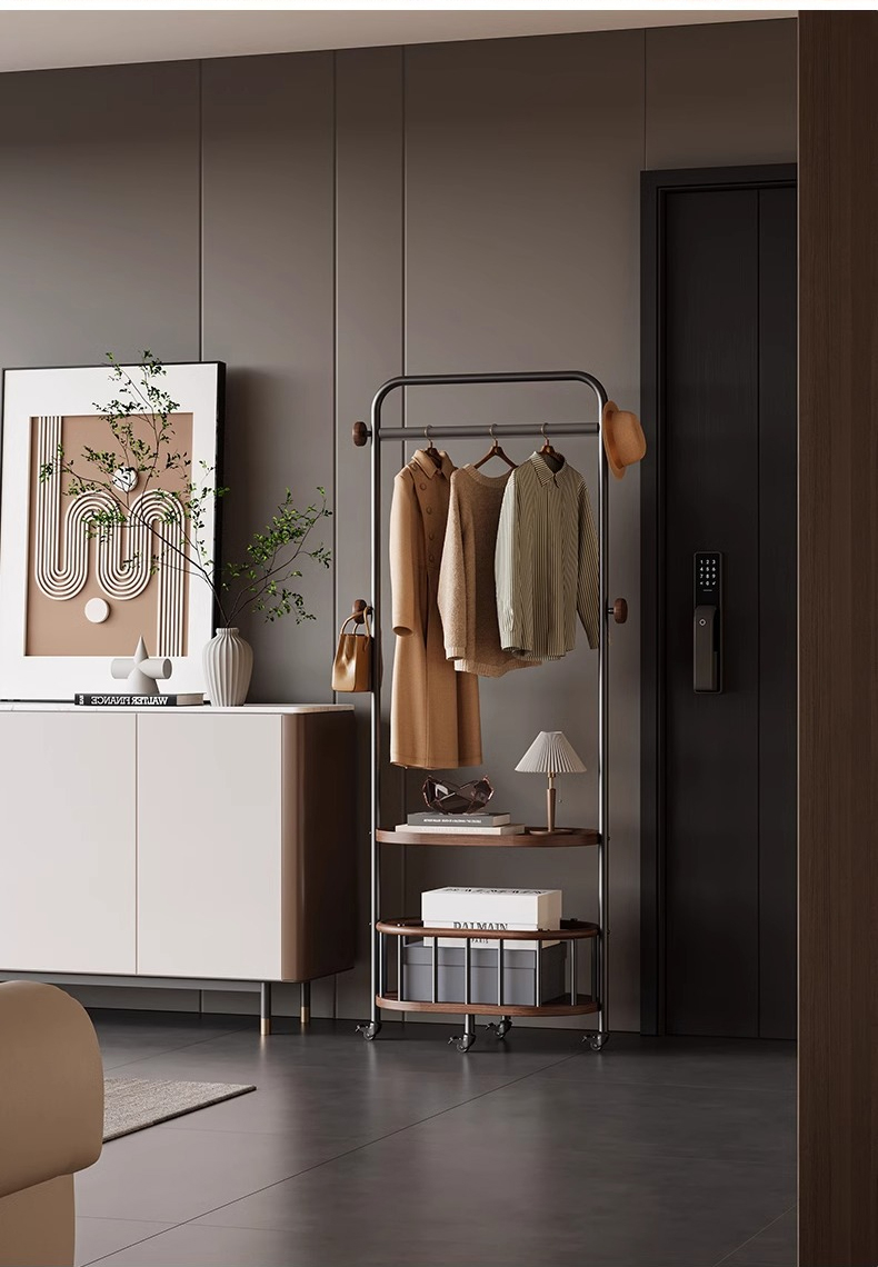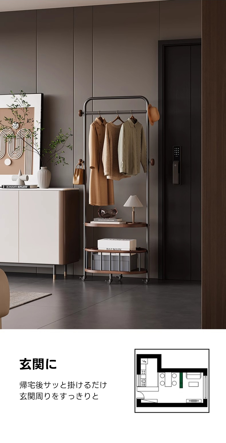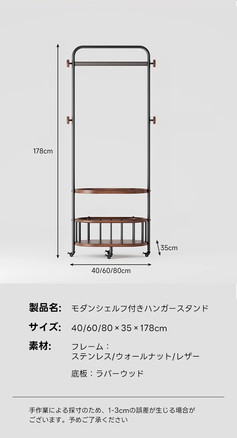 - 【高品質素材と耐久性】ステンレス、ウォールナット、ラバーウッド、レザーを使用し、耐久性と高級感を実現。ステンレス部分にはチタンコーティングが施され、滑らかな質感を提供します。最大50kgの耐荷重性能を持ち、重いコートや洗濯物も安心して収納可能です。