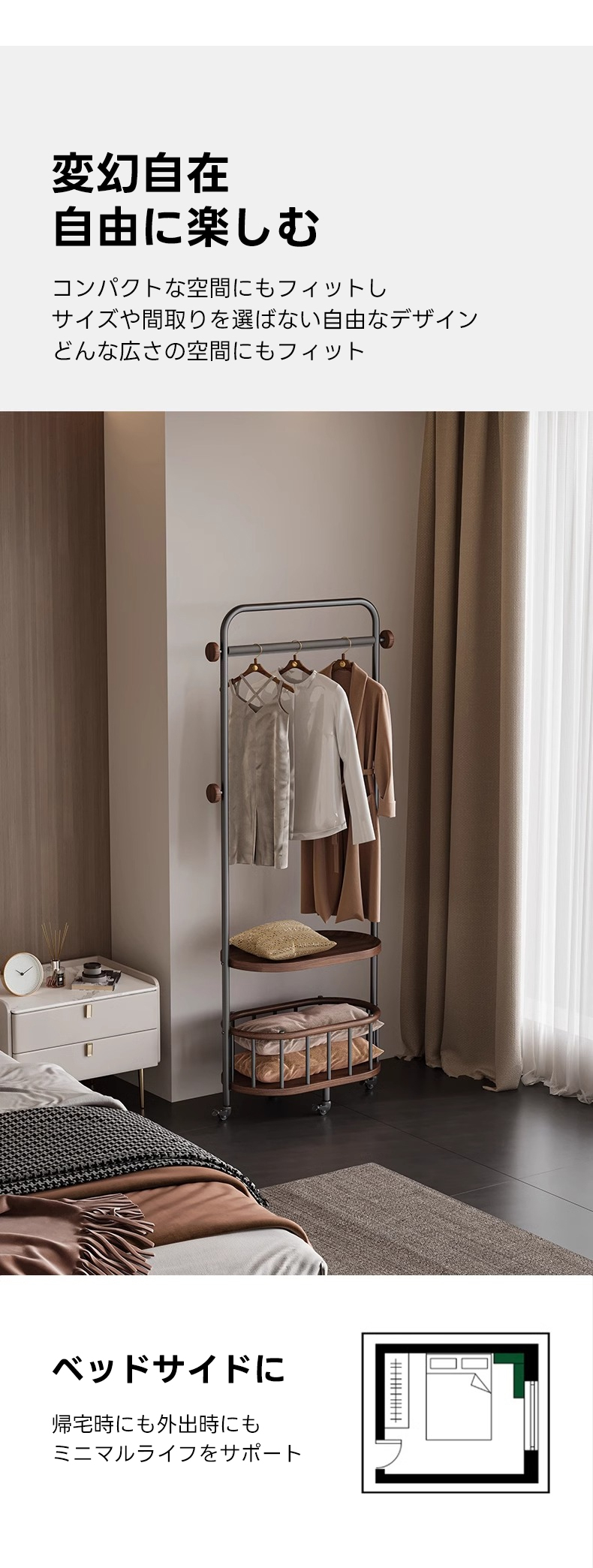- 【幅広い適用性】このハンガースタンドは、カップルやファミリー、一人暮らしの女性に特におすすめです。省スペース設計で、狭い部屋でも場所を取らずに設置可能。引っ越しや模様替えの際にも簡単に移動できるため、どんなライフスタイルにも柔軟に対応します。