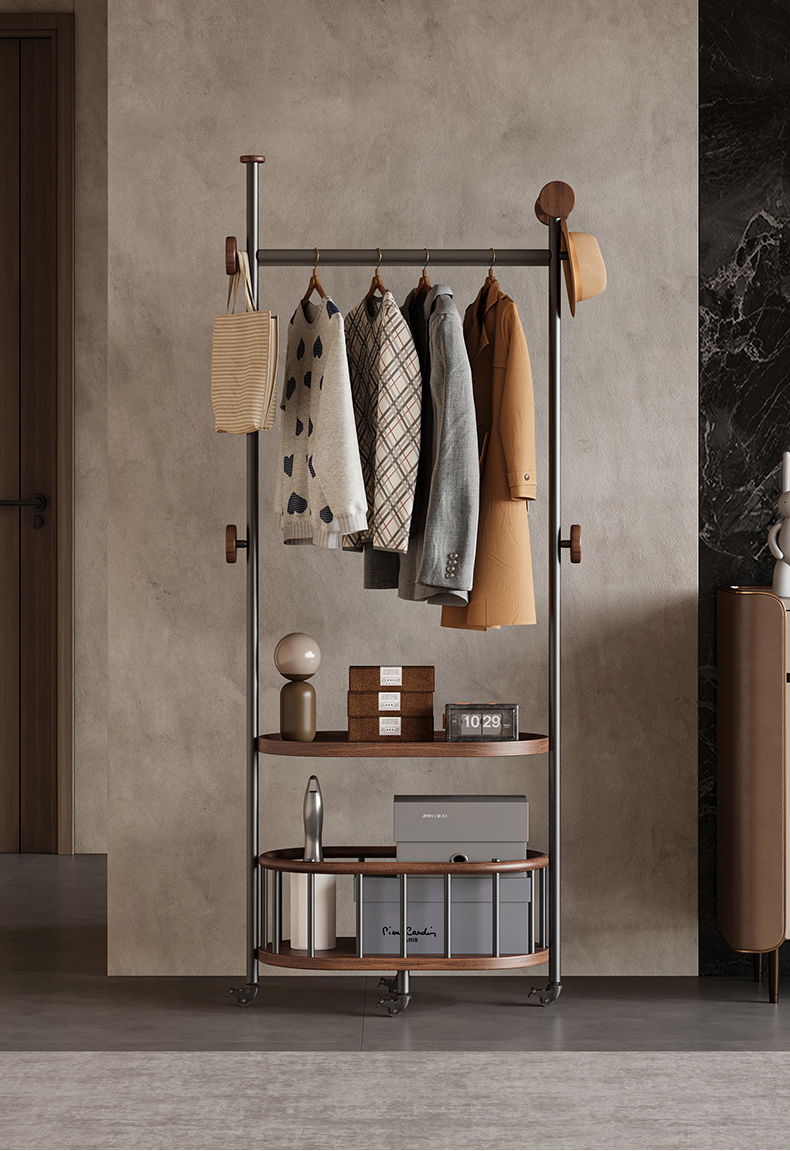 - 【スタイリッシュなデザインと機能性】ヴィンテージロフトラックは、スタイリッシュで機能的なデザインが特徴です。ダークグレーの金属フレームとウォールナットのフックが高級感を演出し、どんなインテリアにもマッチします。