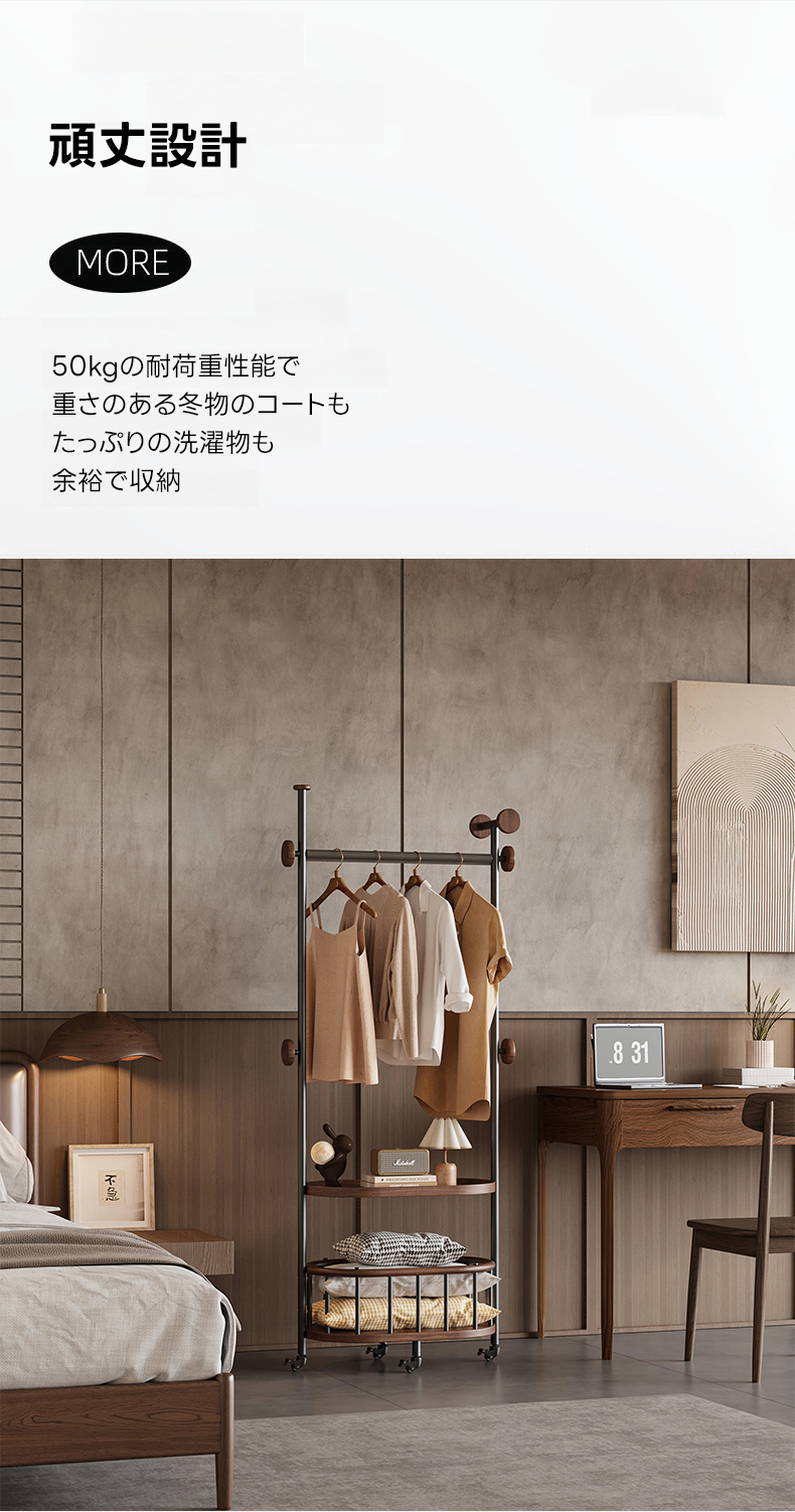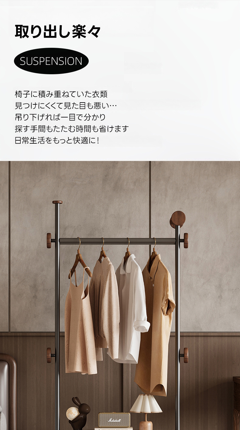 - 【幅広い適用性】このハンガーラックは、一人暮らしからファミリーまで、寝室やリビング、玄関など様々な場所で活躍します。コンパクトなデザインで、どんな広さの空間にもフィットします。