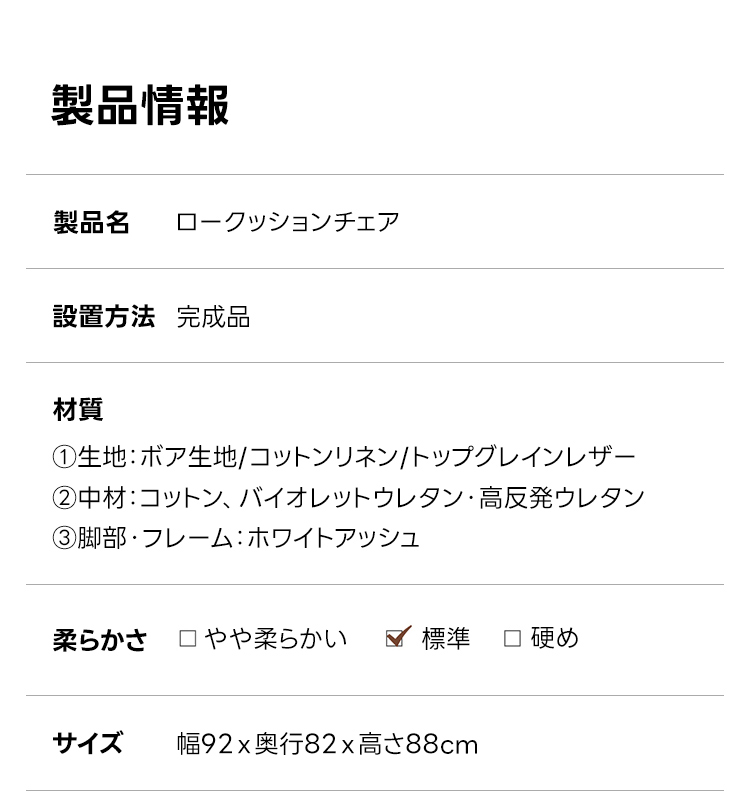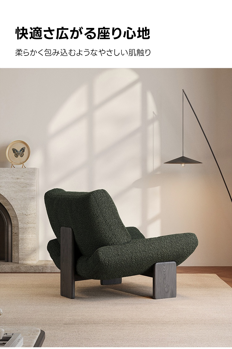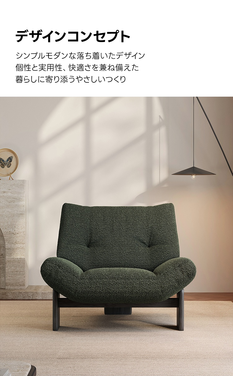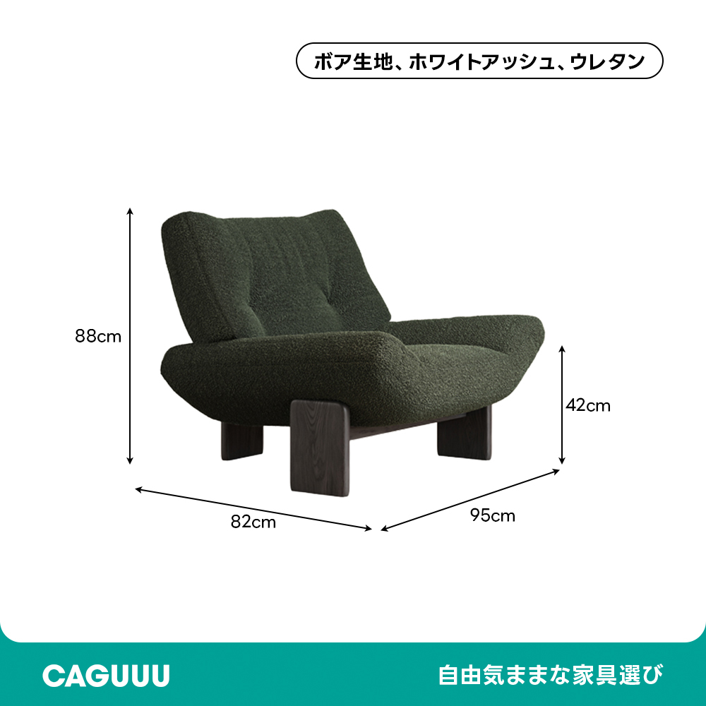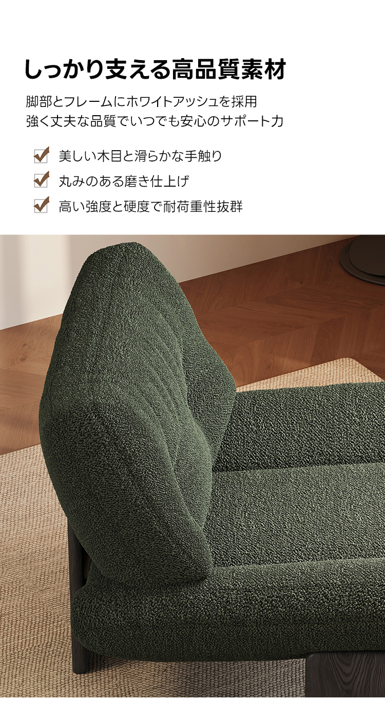 - 【高品質な素材とデザイン】肌に優しいコットンリネンやボア生地、トップグレインレザーを使用し、美しい木目のホワイトアッシュを採用した脚部が高級感を演出します。
