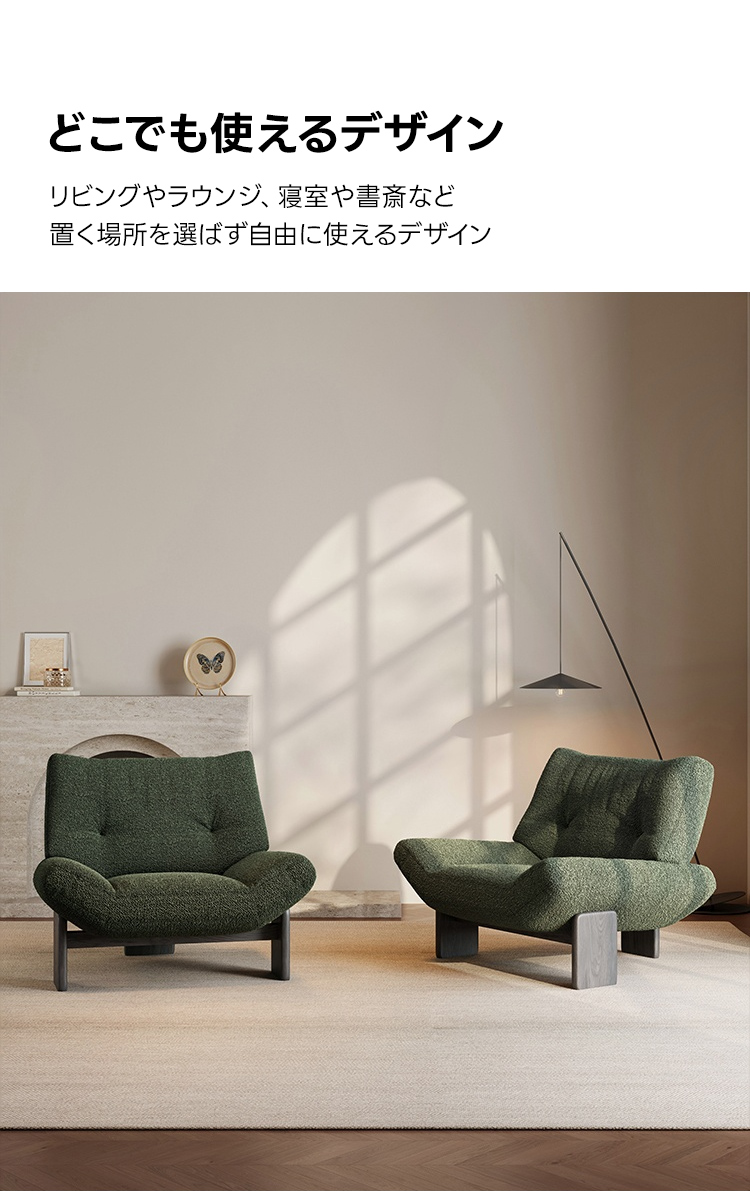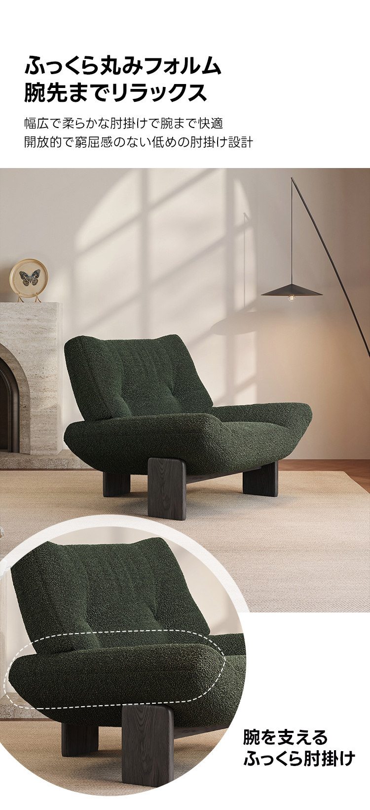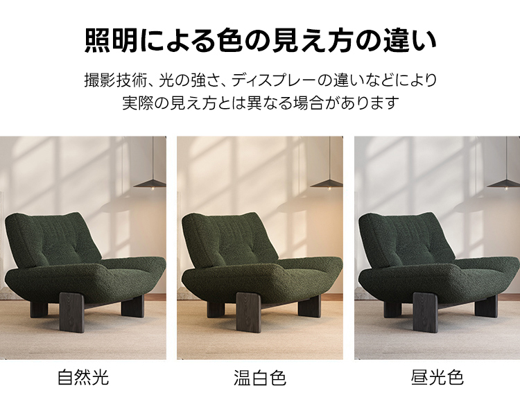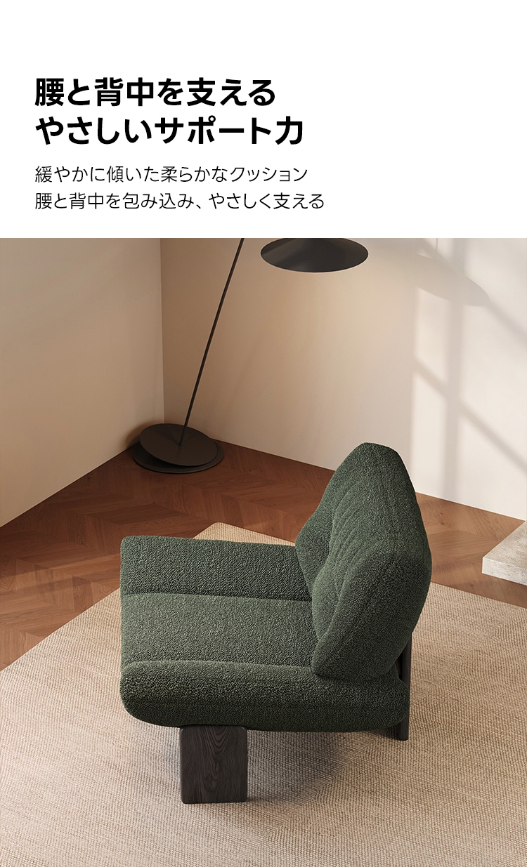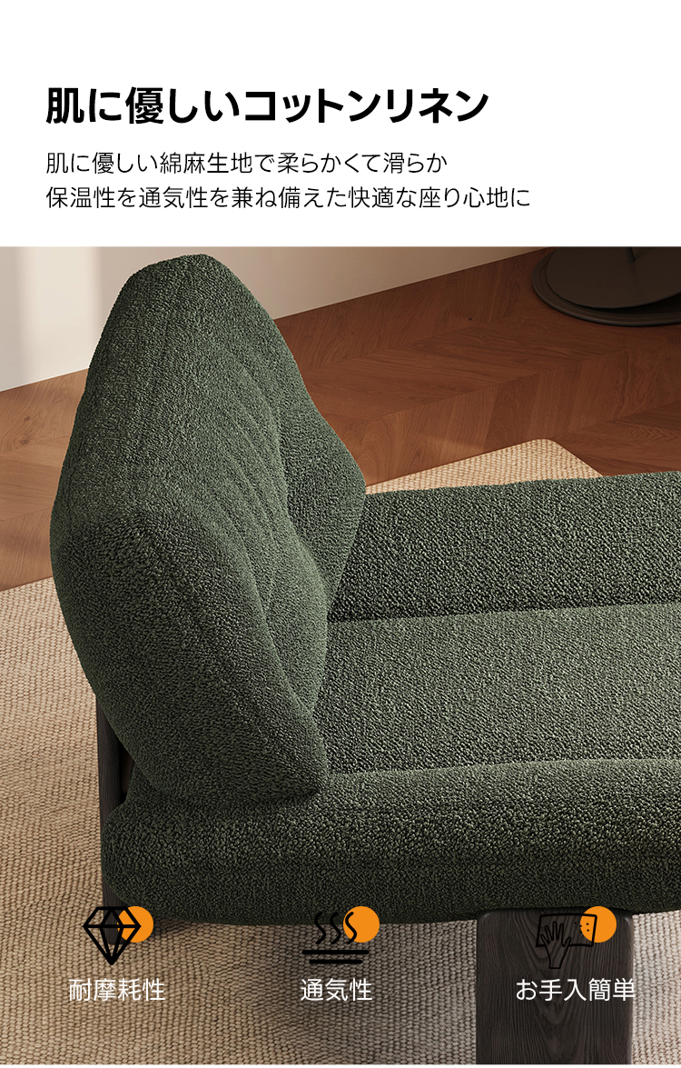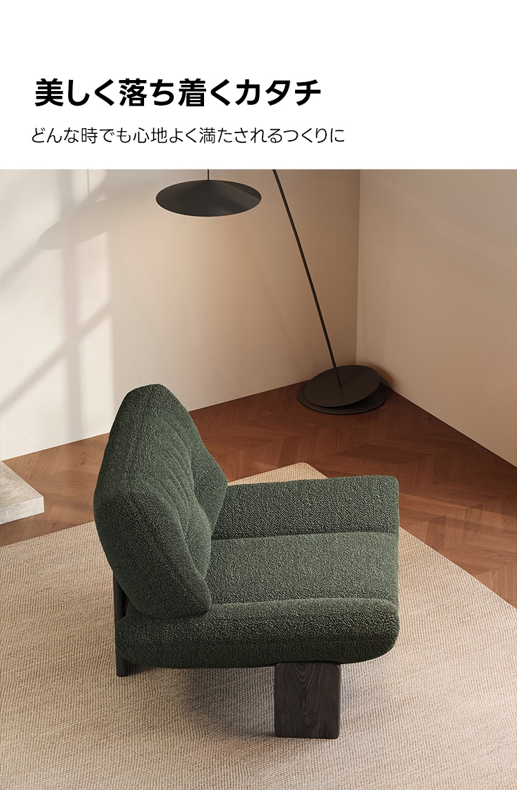 - 【高品質な素材とデザイン】肌に優しいコットンリネンやボア生地、トップグレインレザーを使用し、美しい木目のホワイトアッシュを採用した脚部が高級感を演出します。