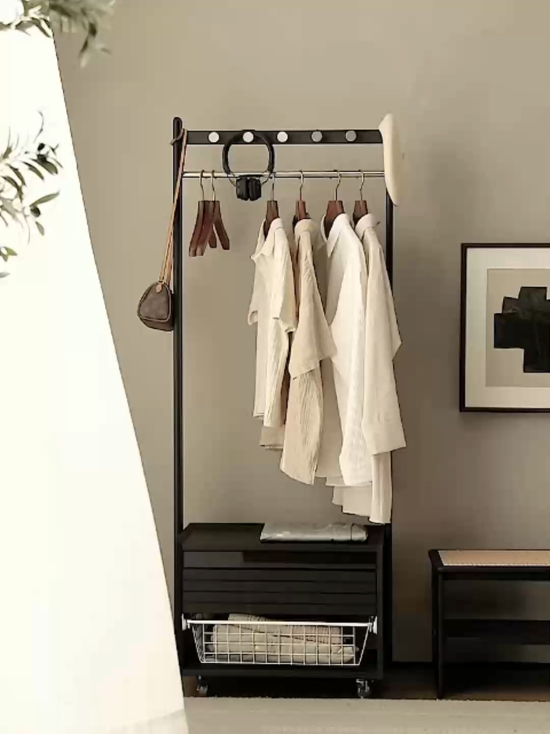 - 【優れた収納機能】Woody Auraチェスト付き可動ハンガーラックは、45アイテムを掛けられるベーシック版と65アイテムを掛けられるアップグレード版を用意。バスケット収納(22L)と引き出し収納(45L)で、多様な収納ニーズに対応します。