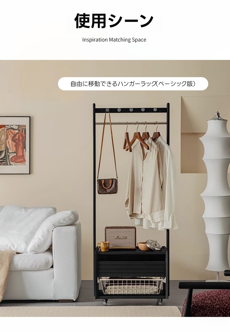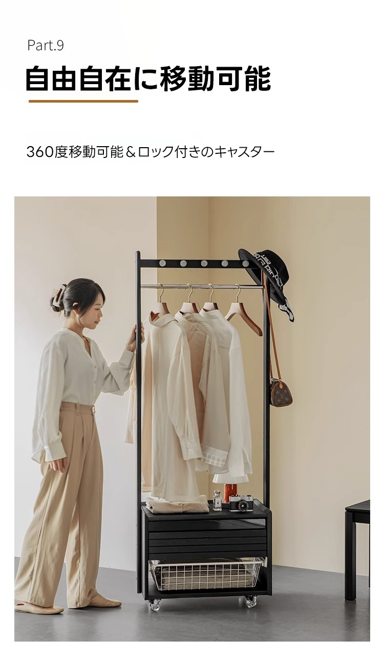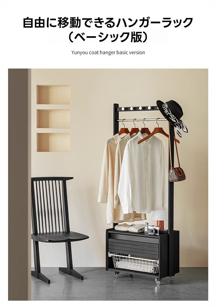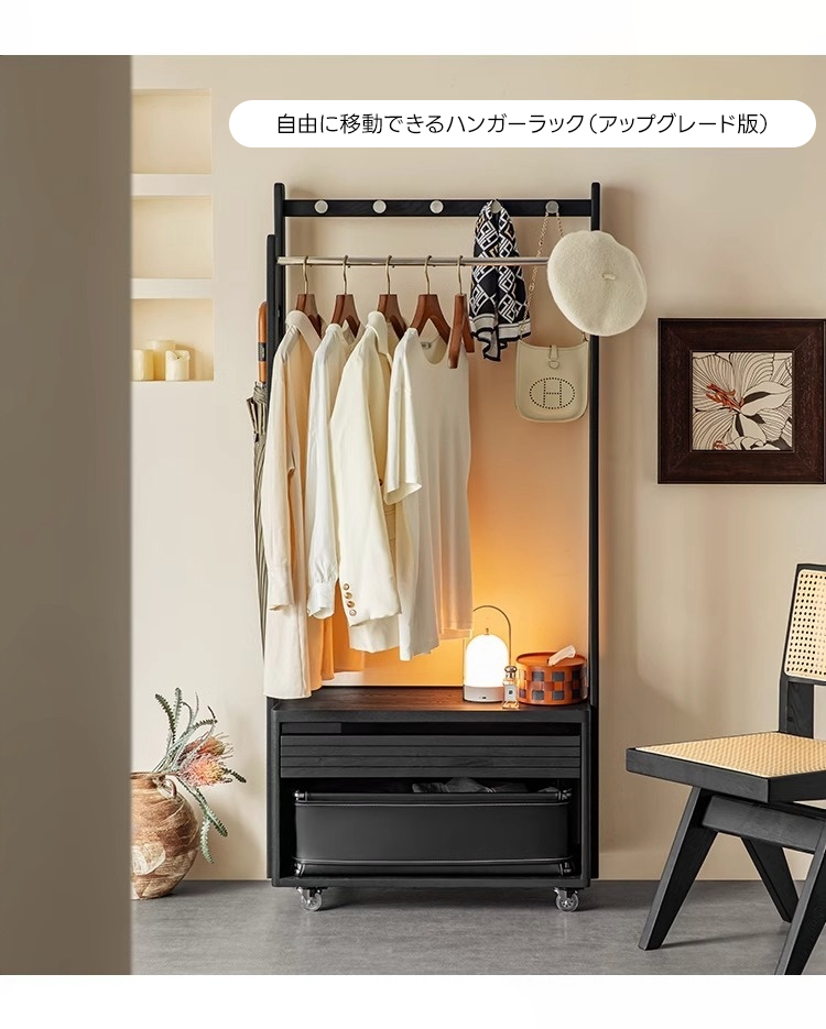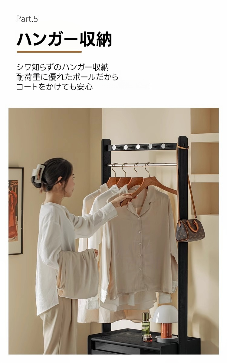 - 【多機能収納ハンガーラック】このハンガーラックは、北米産ホワイトアッシュ材を使用し、シンプルモダンなデザインでどんなインテリアにもマッチします。360度回転可能なキャスター付きで、部屋のどこにでも簡単に移動可能です。