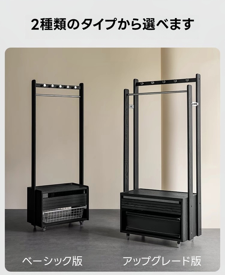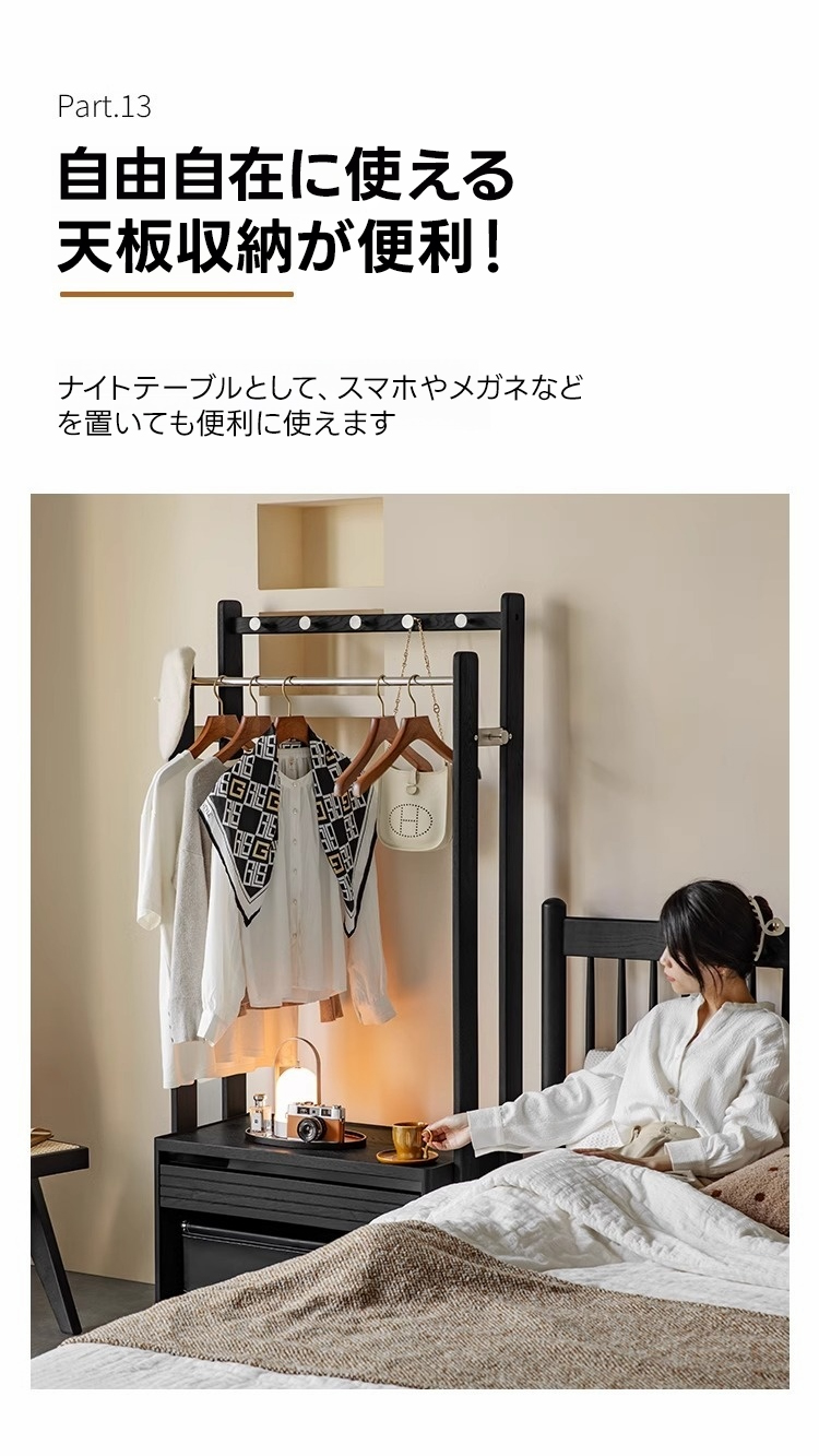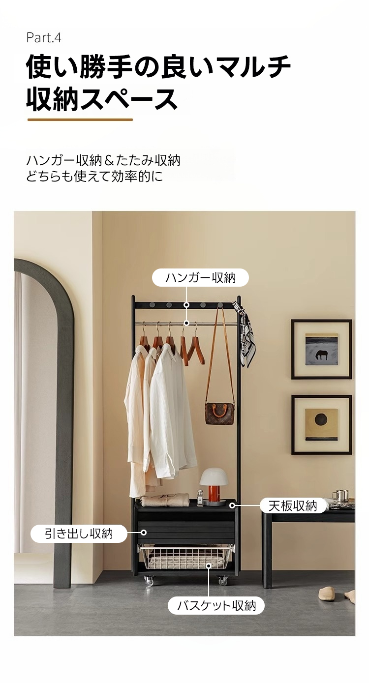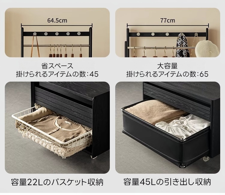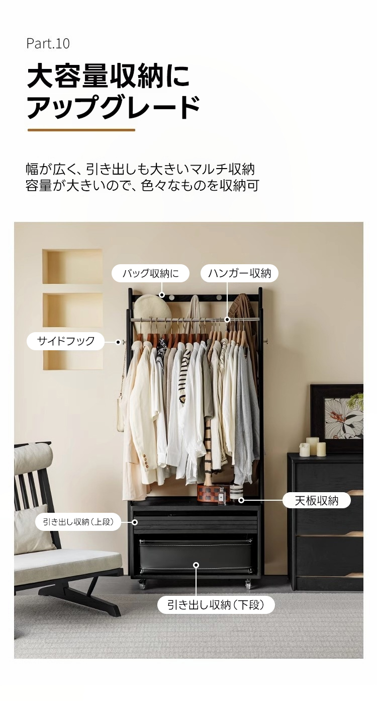 - 【多機能収納ハンガーラック】このハンガーラックは、北米産ホワイトアッシュ材を使用し、シンプルモダンなデザインでどんなインテリアにもマッチします。360度回転可能なキャスター付きで、部屋のどこにでも簡単に移動可能です。