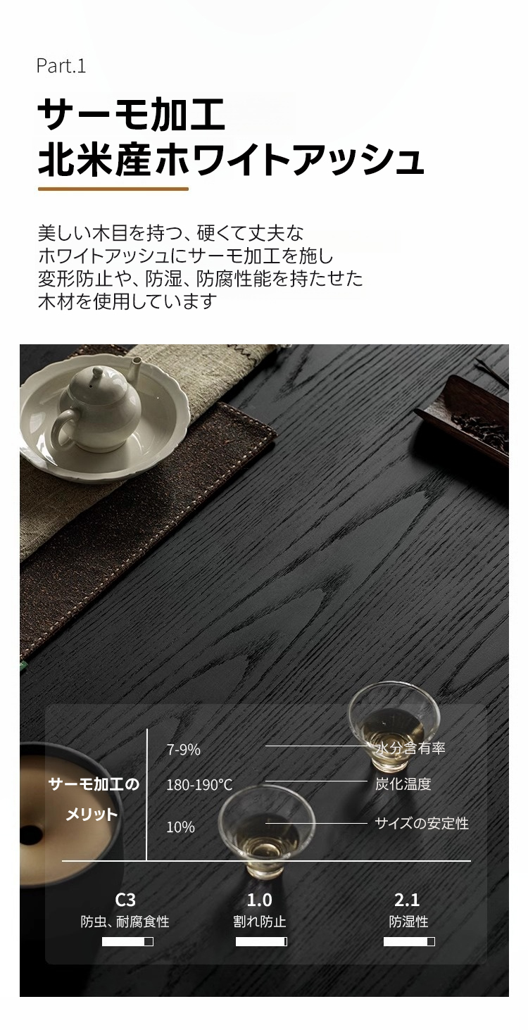 - 【高品質な素材とデザイン】ホワイトアッシュ材は美しい木目と耐久性が特徴で、サーモ加工により防湿、防腐性能が高められています。引き出し収納(45L)とバスケット収納(22L)を備え、多様なアイテムを効率的に整理できます。
