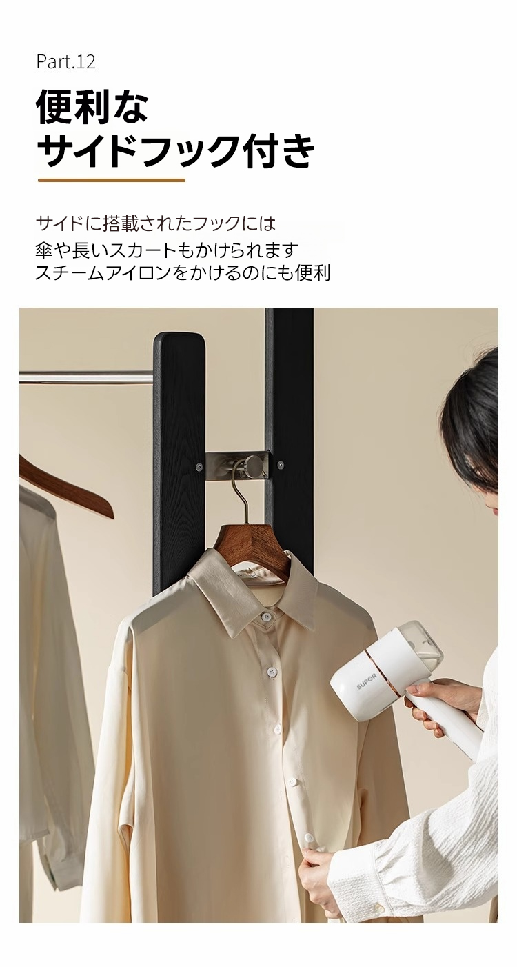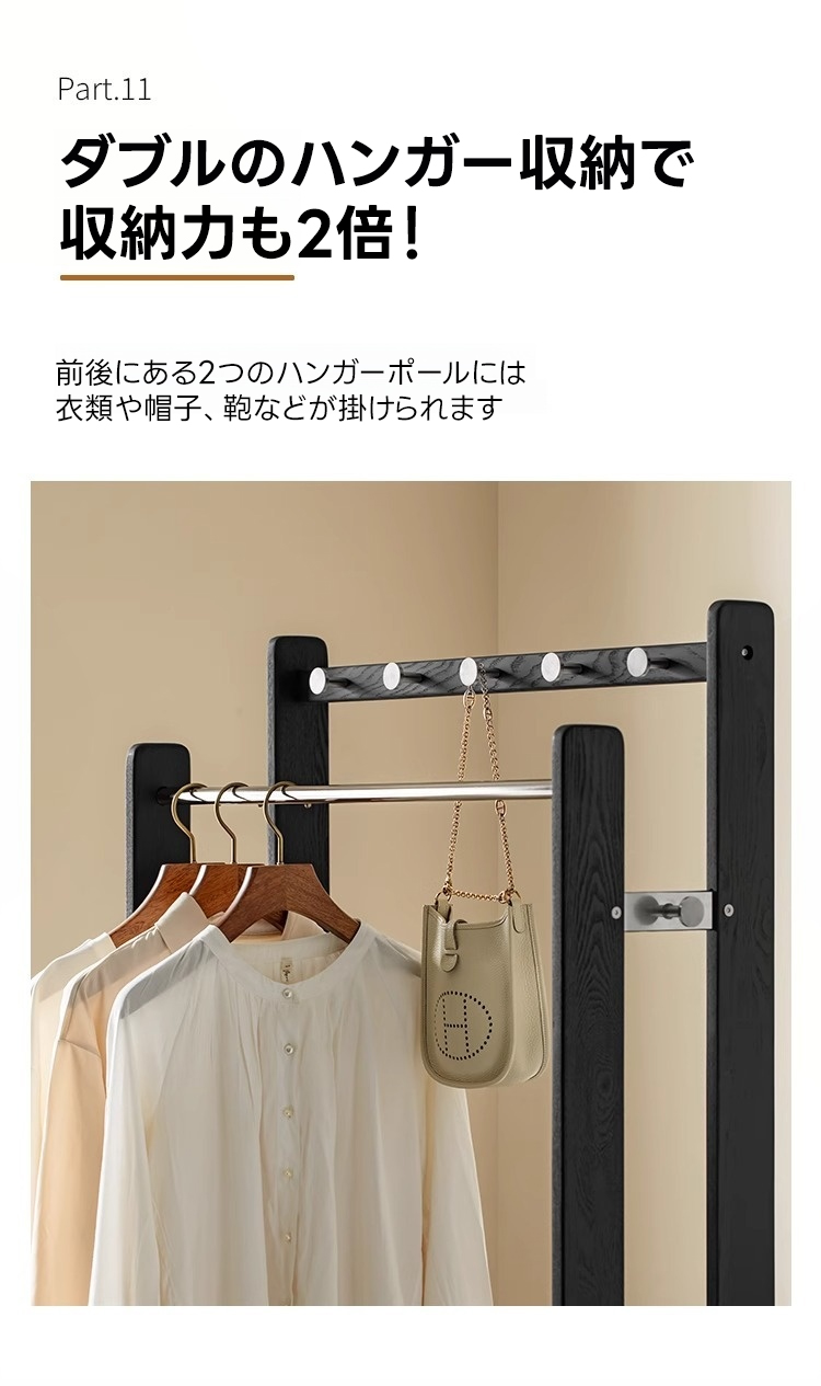 - 【便利な使用体験】サイドフック付きで、バッグや帽子、長いスカートも掛けられます。組立品で、自分で簡単に組み立てられる設計です。引越しや模様替えにも対応しやすく、生活をより便利にします。