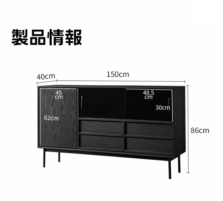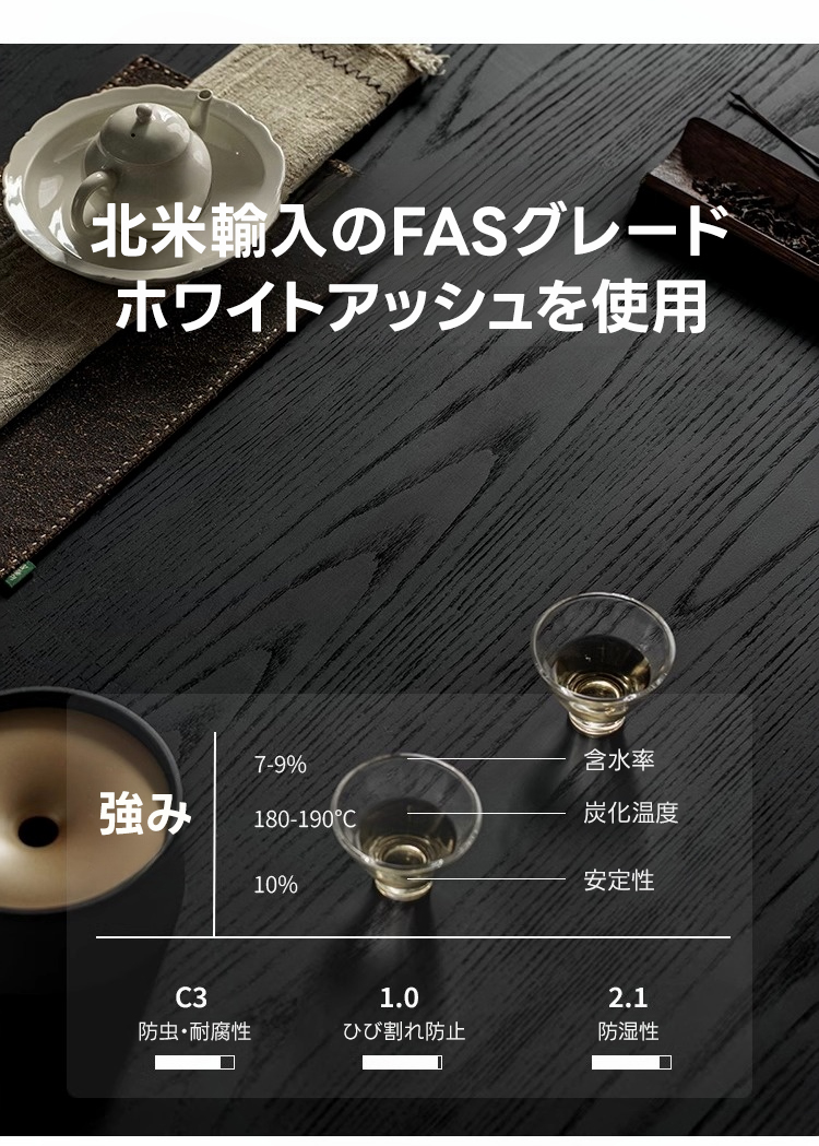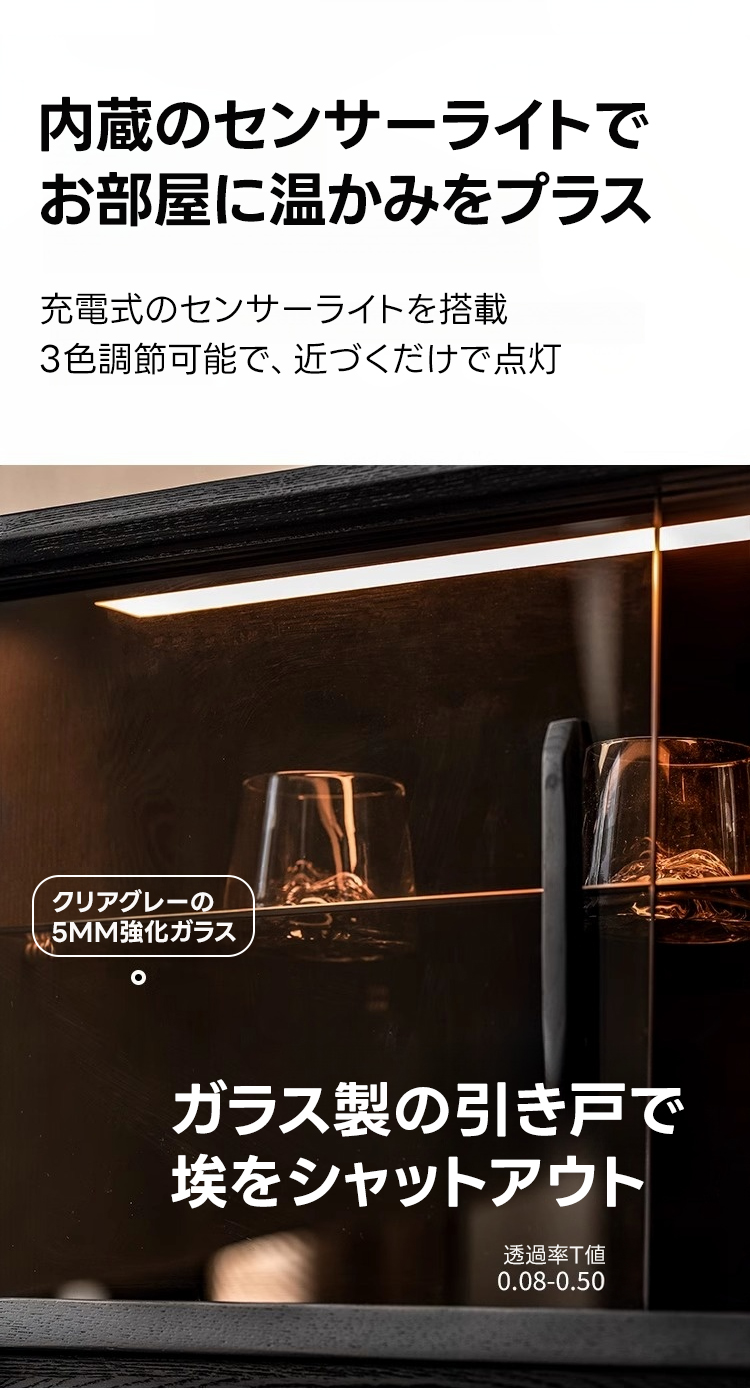 - 【高級素材とデザイン】FASグレードのホワイトアッシュ材を使用し、耐久性と美しさを兼ね備えています。ブラックのシンプルなデザインは、クリアグレーの5mm強化ガラスを使用した引き戸がスタイリッシュな印象を与えます。