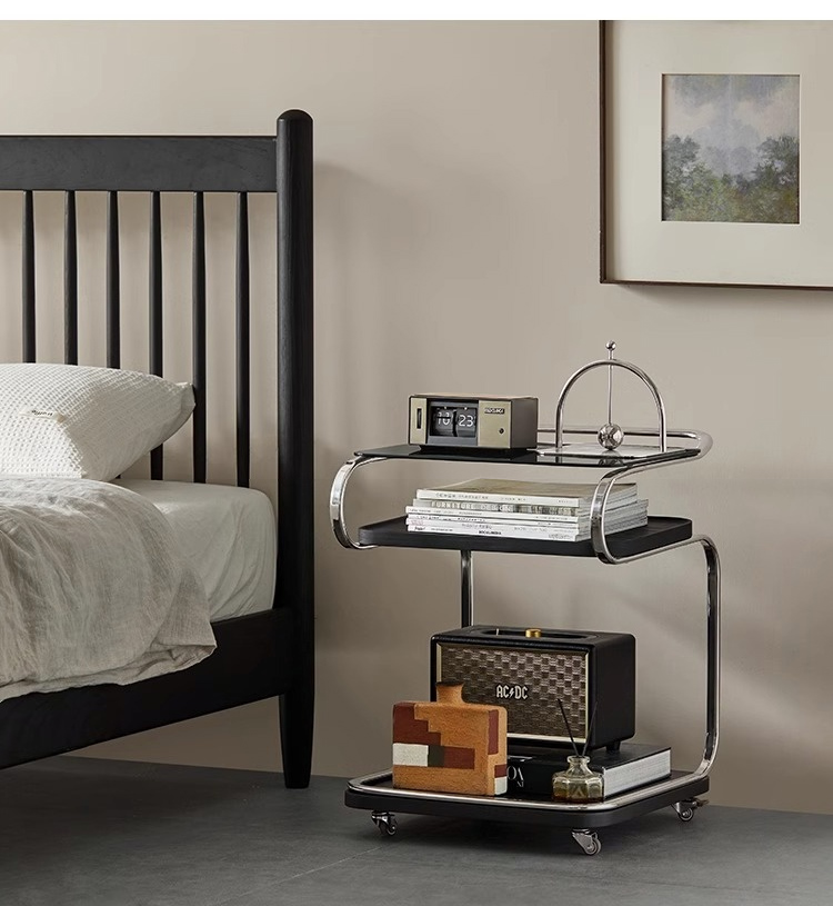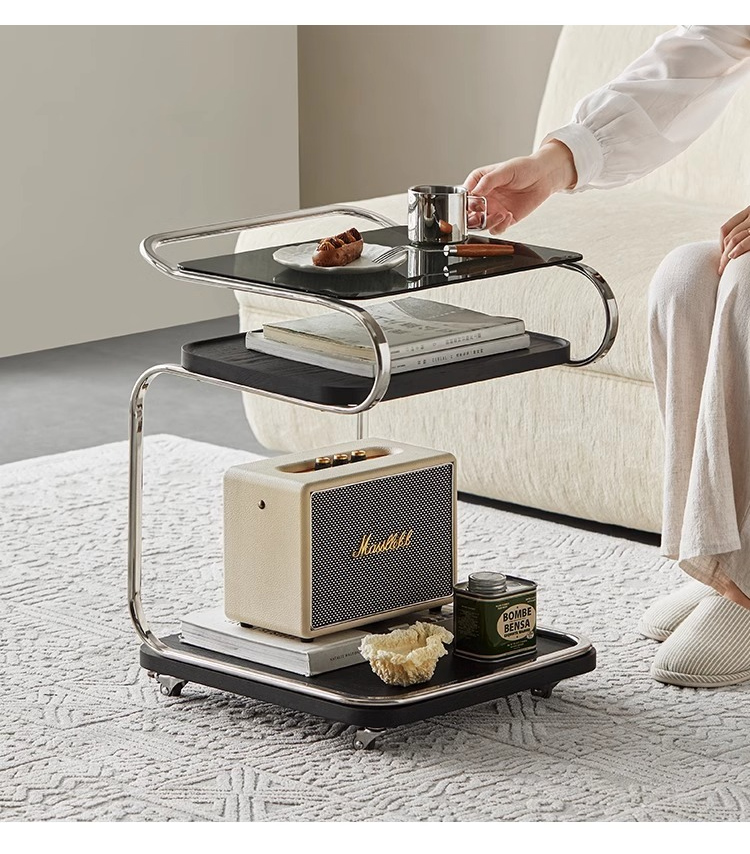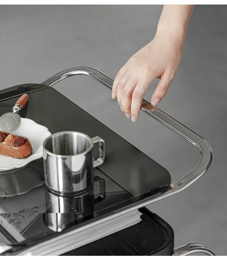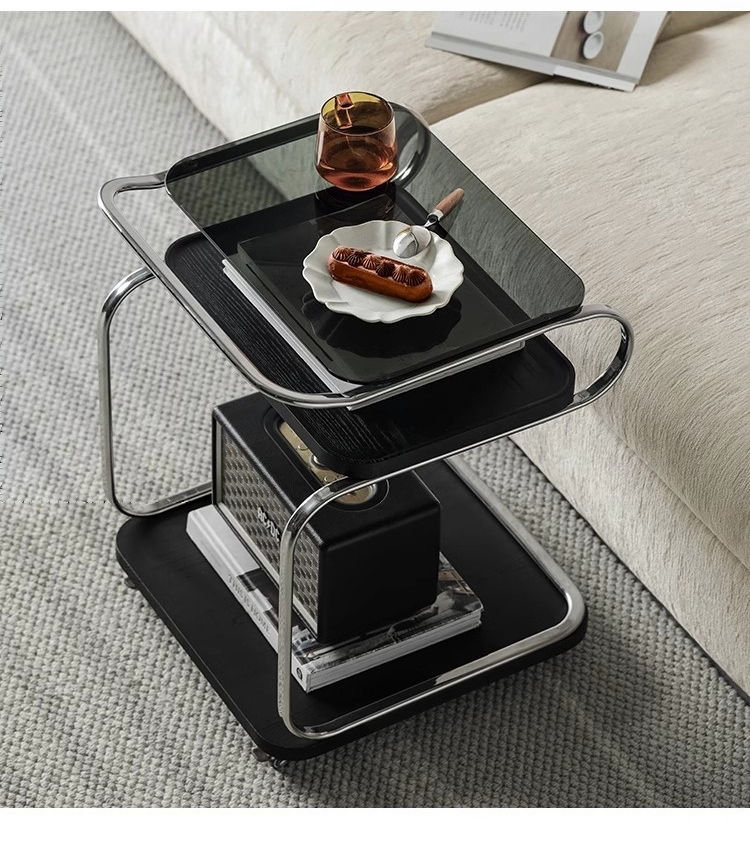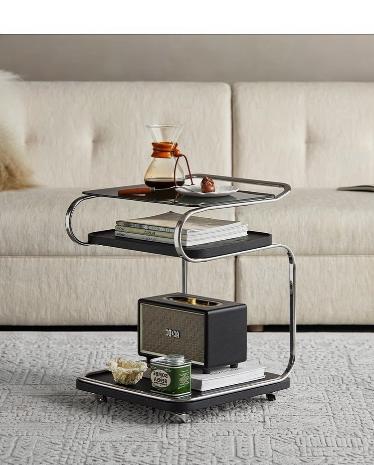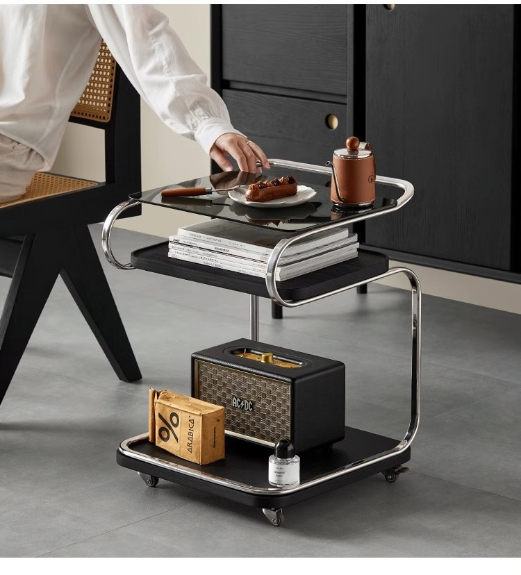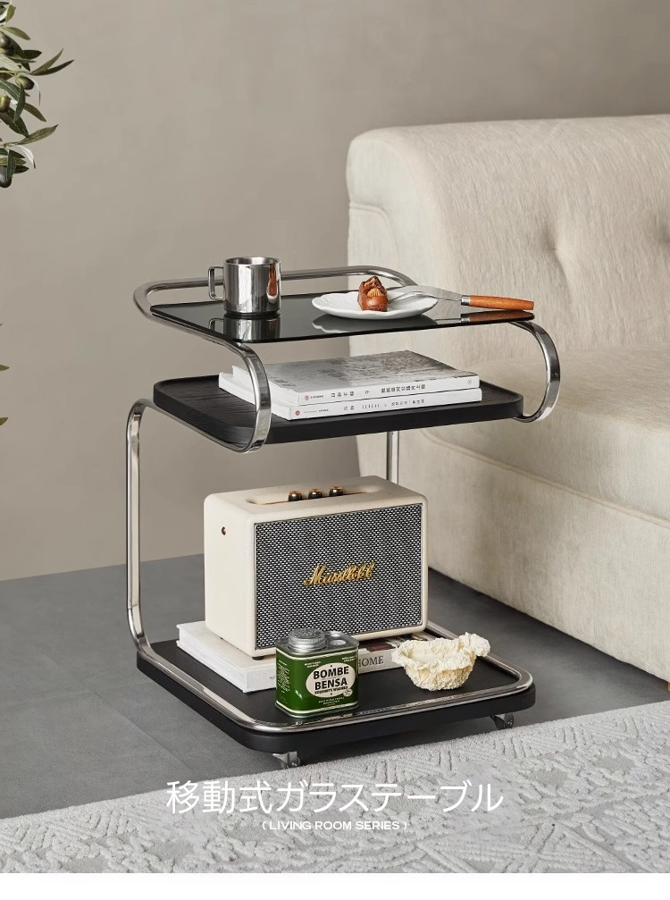 - 【多機能な移動式ガラステーブル】このテーブルはキャスター付きで移動が簡単。リビングやキッチン、ベッドサイドでの使用に最適です。360度回転可能な静音キャスターを備え、どの場所でもスムーズに移動できます。